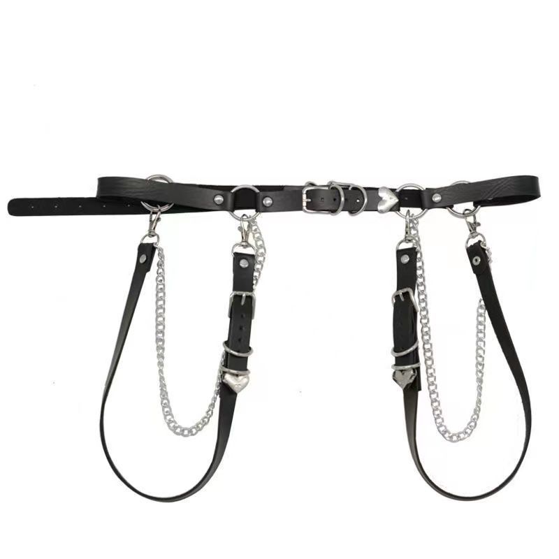 Cinturón de cuero estilo punk con cadena para la cintura, estilo transfronterizo europeo y americano, con diseño de baile callejero, joyería, accesorios de tendencia con personalidad |