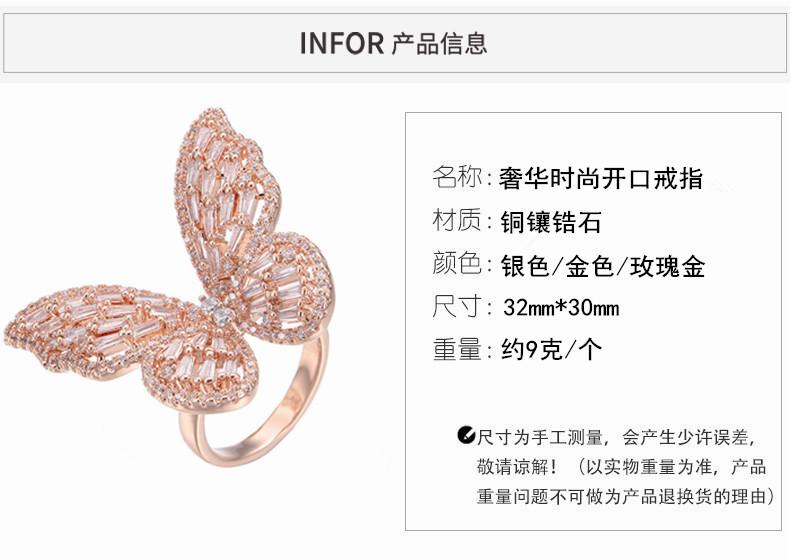 Elegante Moda Creativo Anillo Abierto de Mariposa Hueca Personalizado Moderno Zircón Tridimensional Ajustable Joyería para Mujer