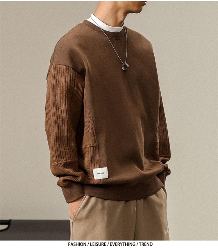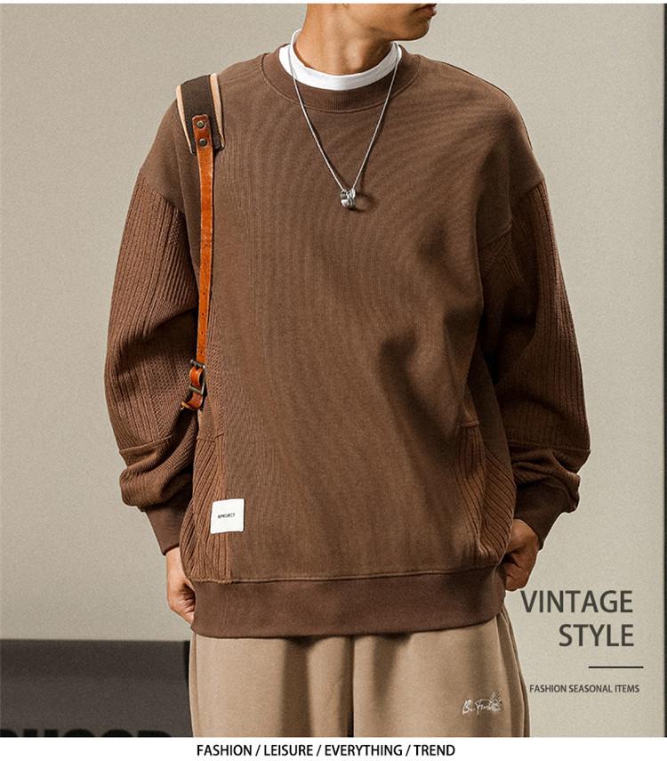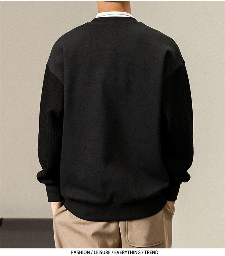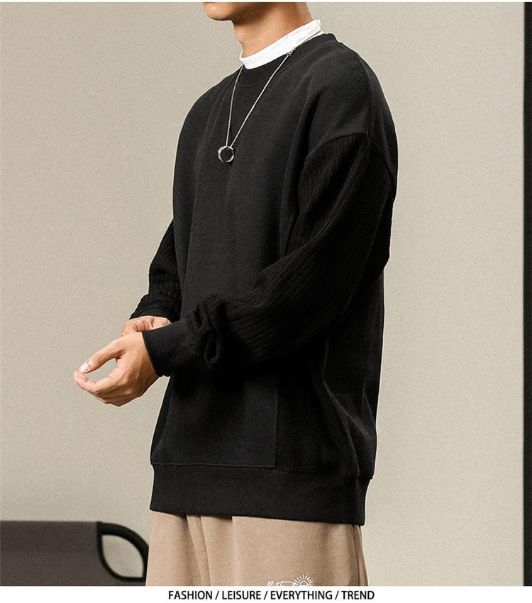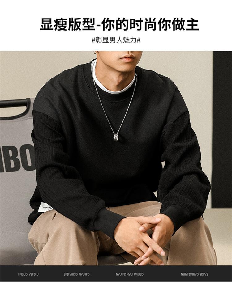 Compra Suéter de cuello redondo negro pesado de estilo americano nuevo de otoño para hombre, abrigo informal holgado de talla grande, marca de moda al por mayor en Joom.pro
