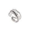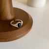 Anillo Oval Negro para Mujer, Moda Retro Geométrico Multicapa Irregular Plateado en Plata S925 Anillo Abierto, Anillo para Dedo Índice
