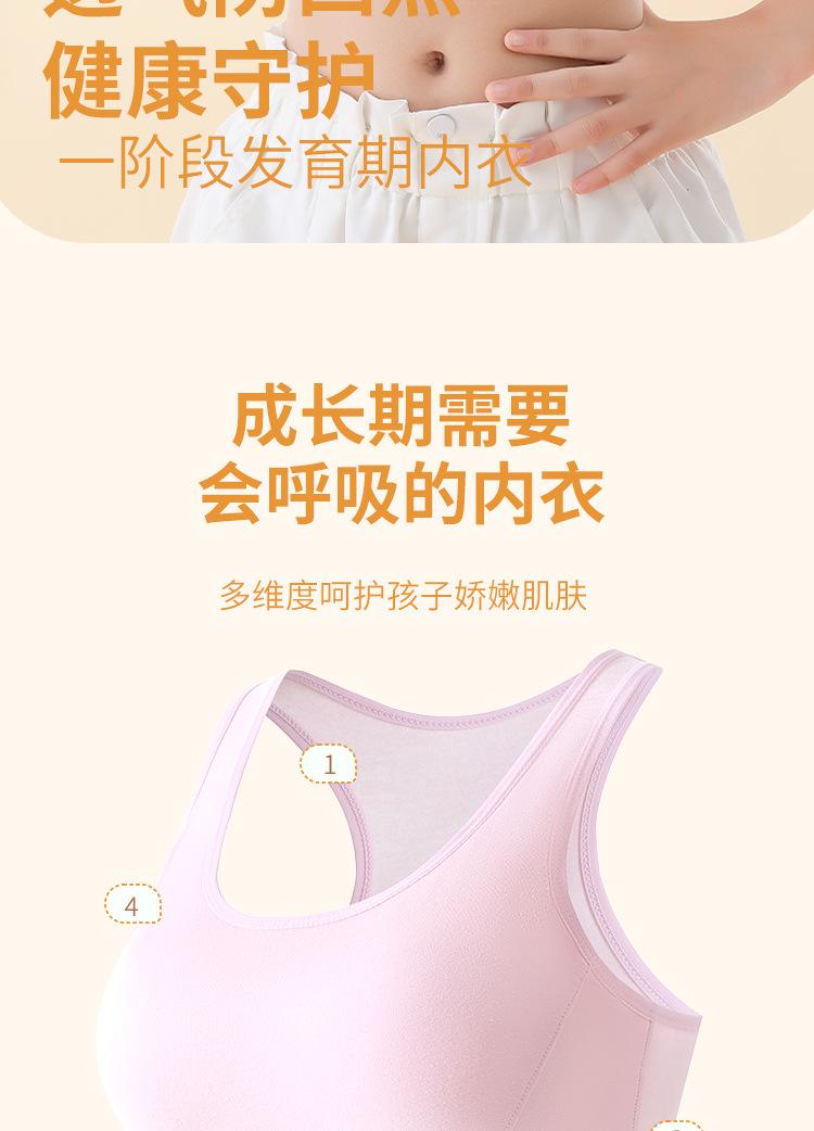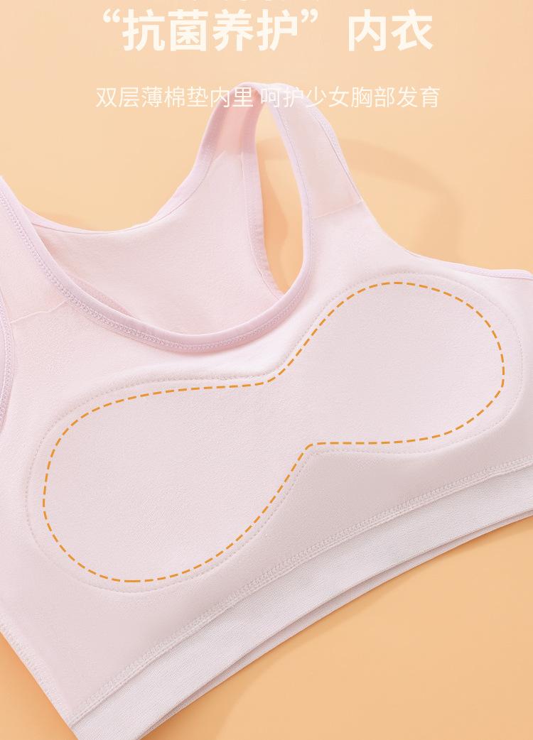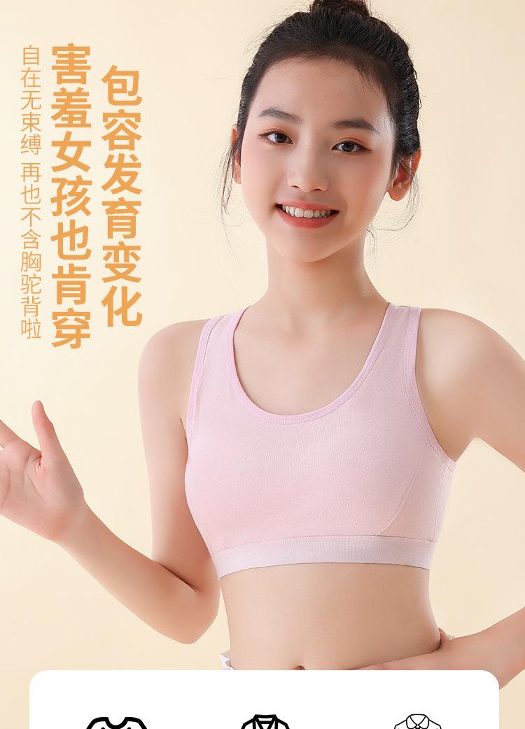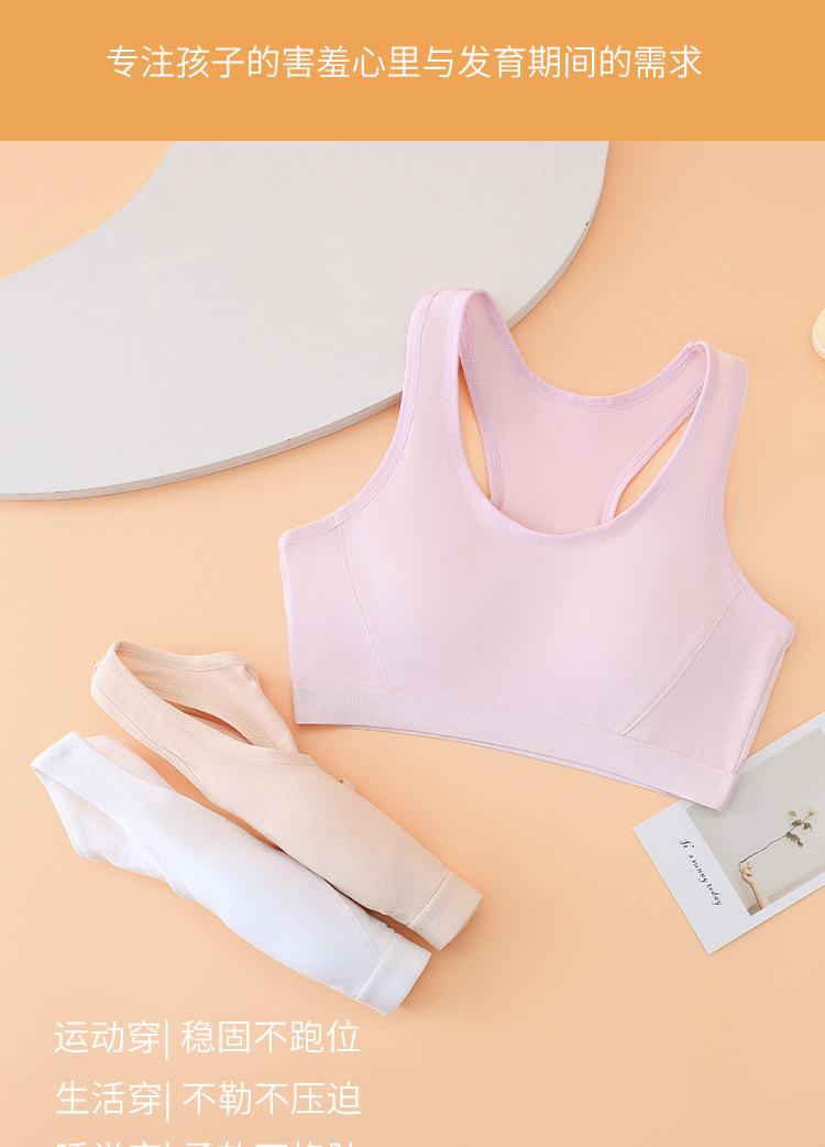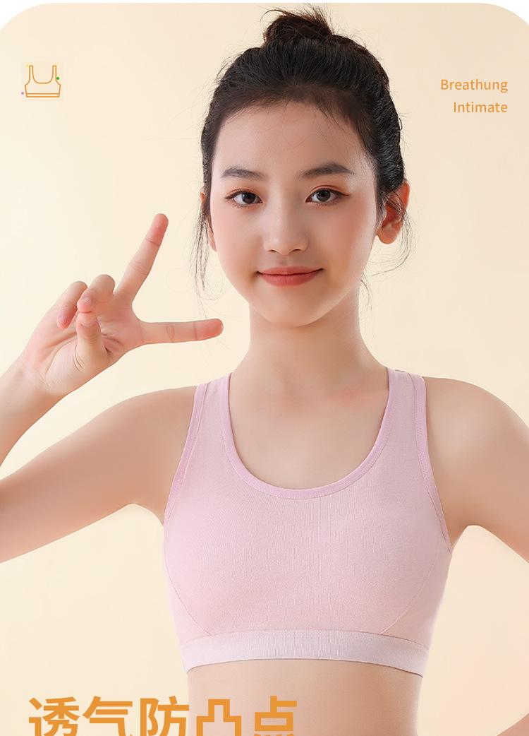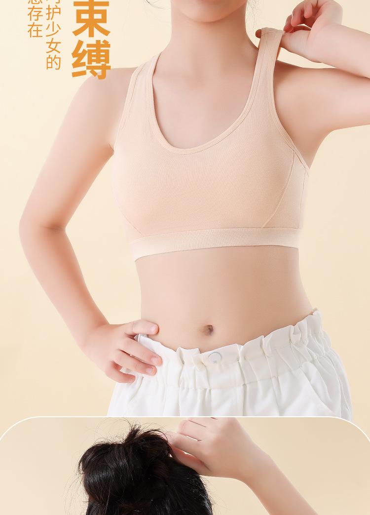 Ropa Interior de Desarrollo para Niñas Algodón Puro Transpirable Sin Marcas Sujetador para Niñas Copa Fija Estudiante Chaleco Deportivo Tipo I