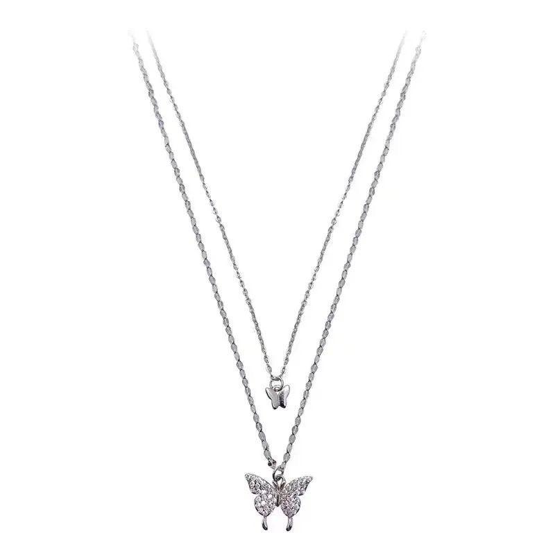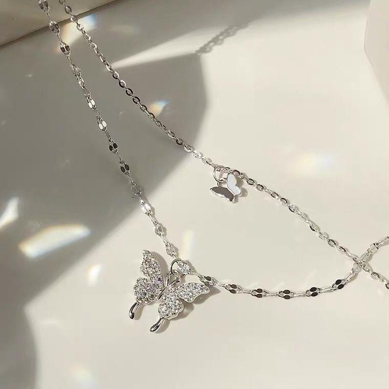 Collar de mariposa de doble capa con diamantes brillantes ~ Nuevo collar de moda de cuatro estaciones 2021 con diseño de nicho de Corea del Sur y cadena de clavícula de viento frío