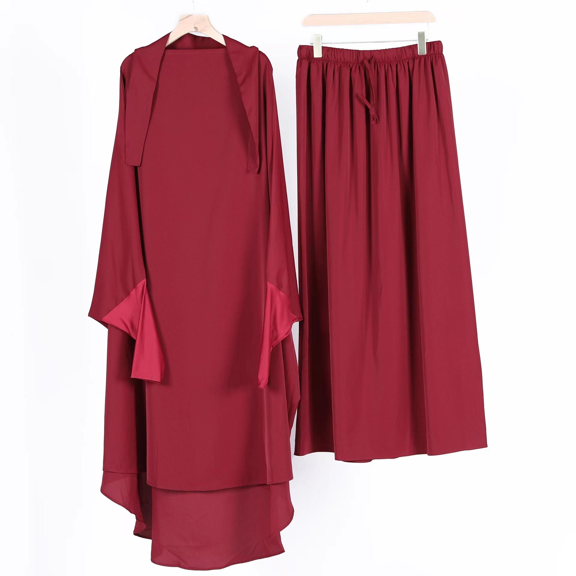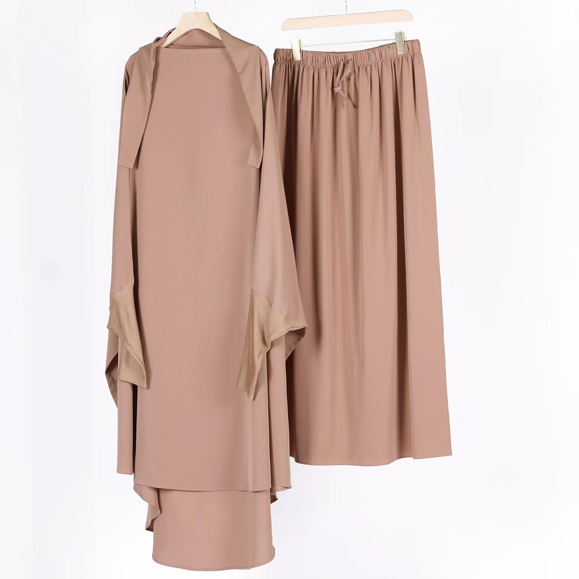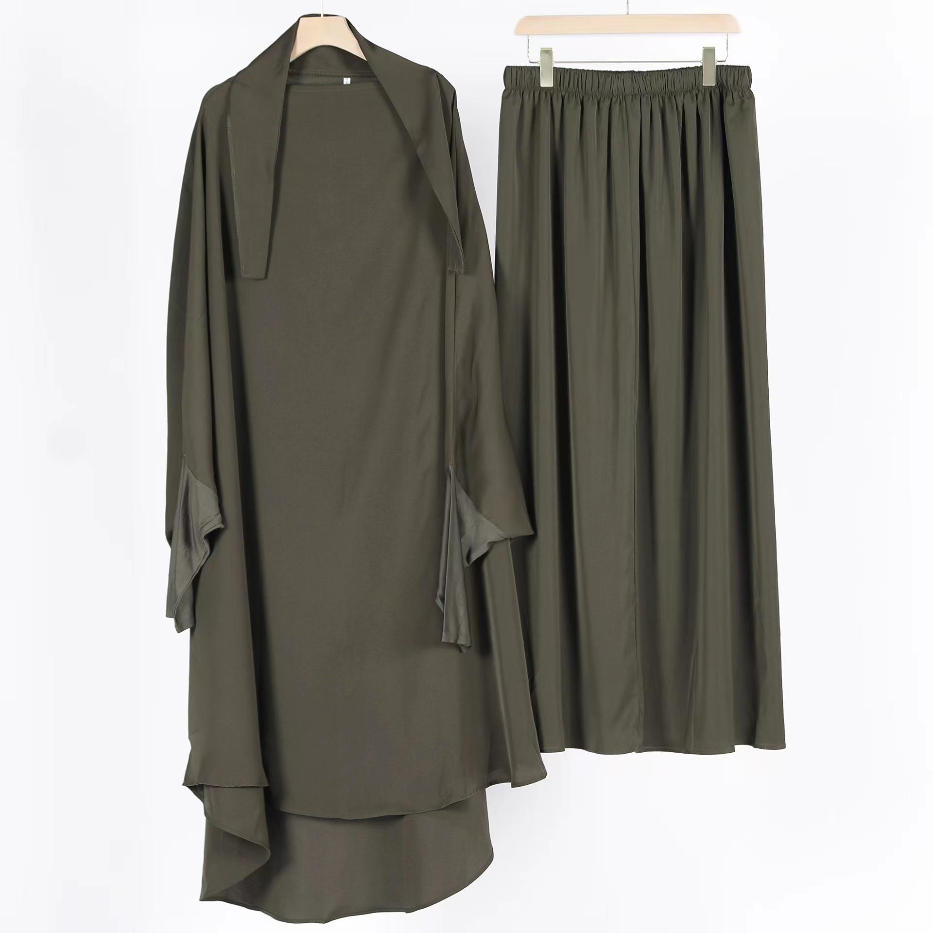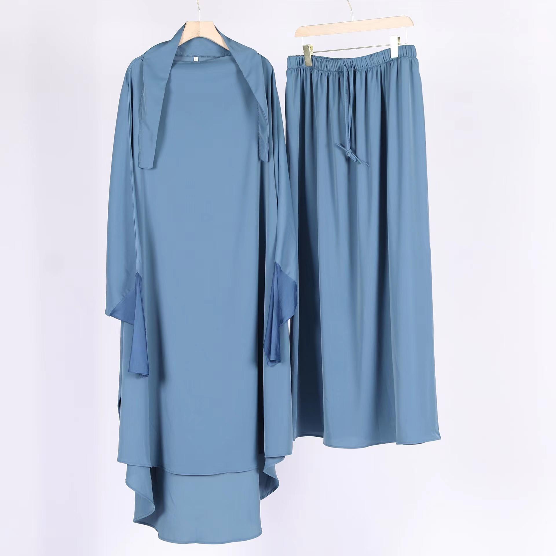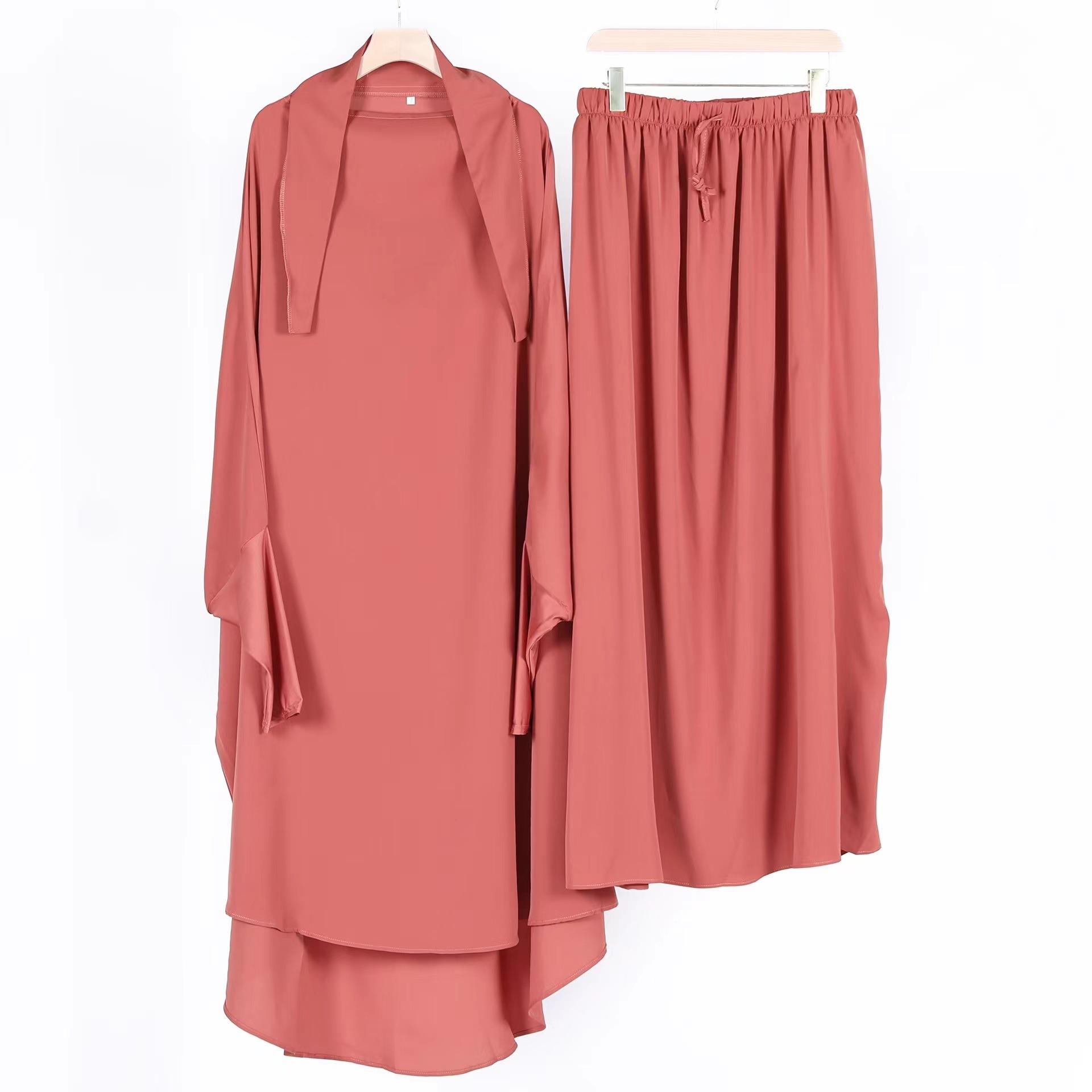 Ropa de mujer transfronteriza Medio Oriente Turquía Dubái color sólido manga larga vuelo amplio color sólido cinturón traje pañuelo vestido