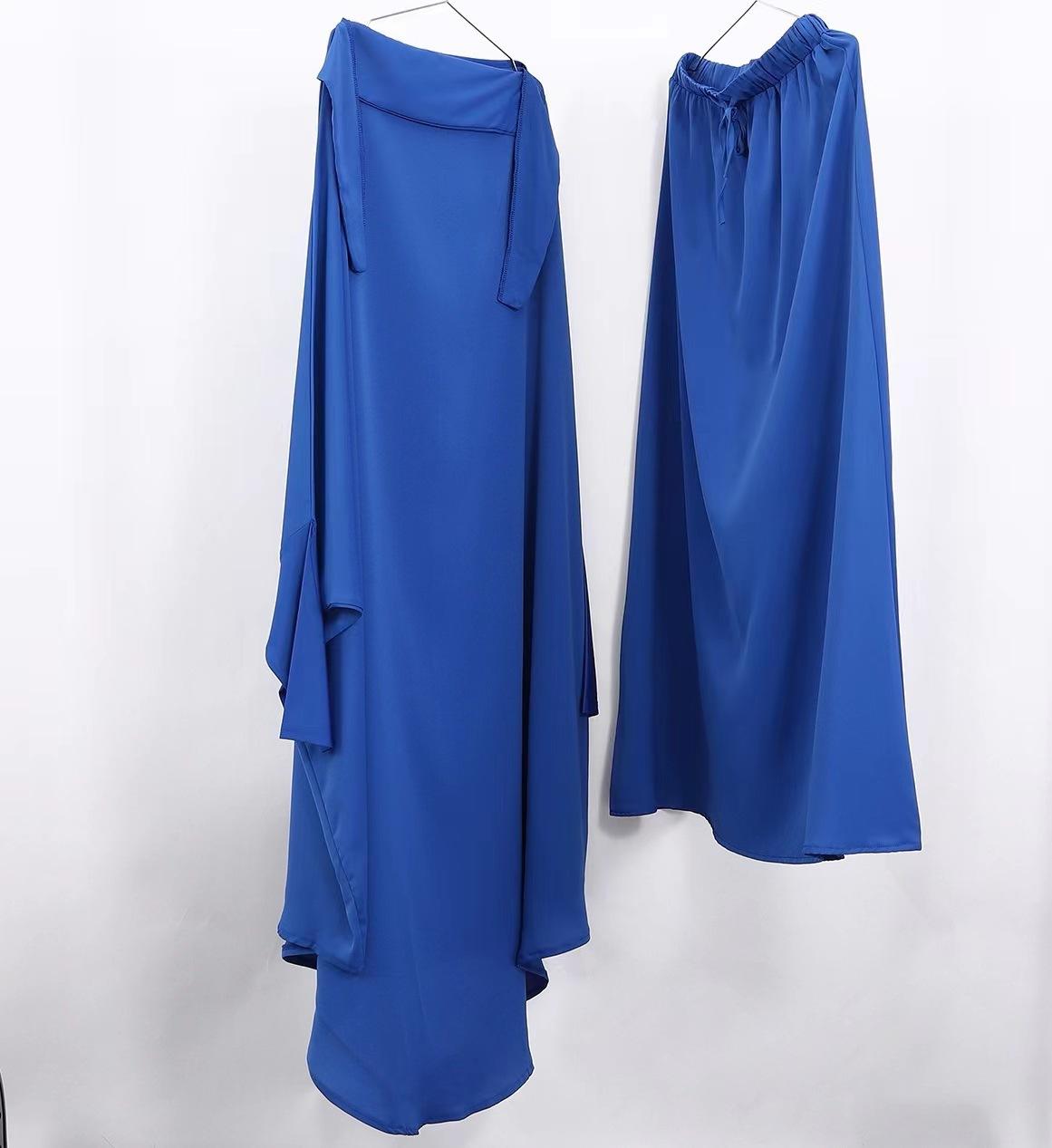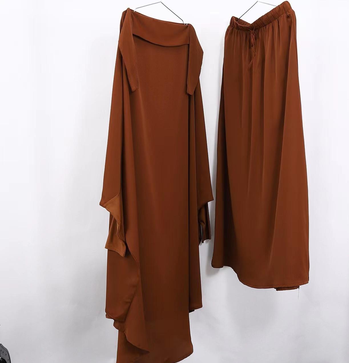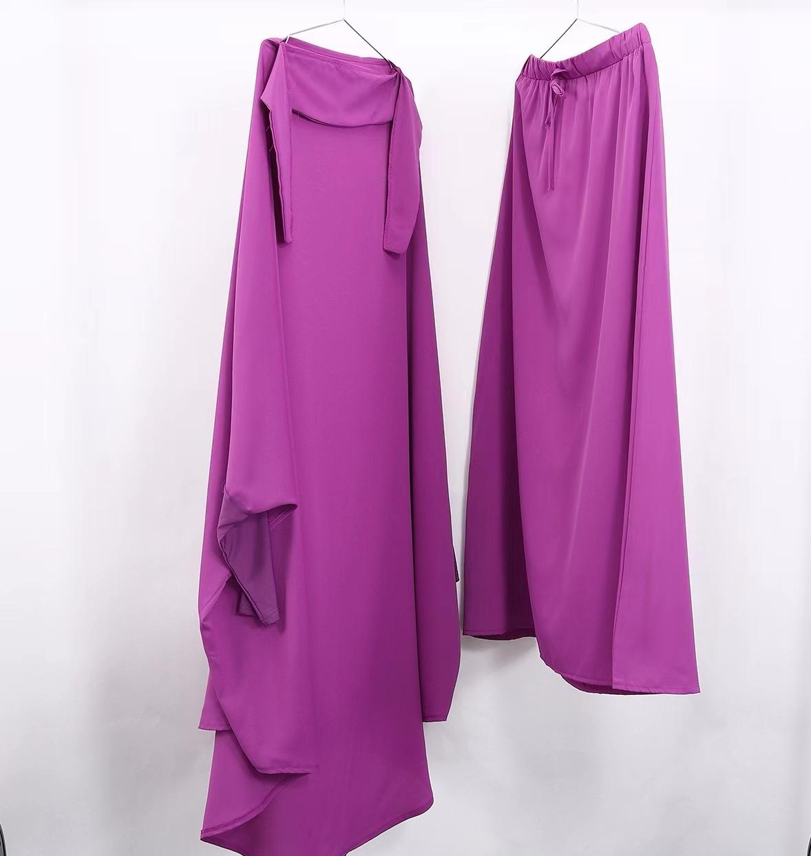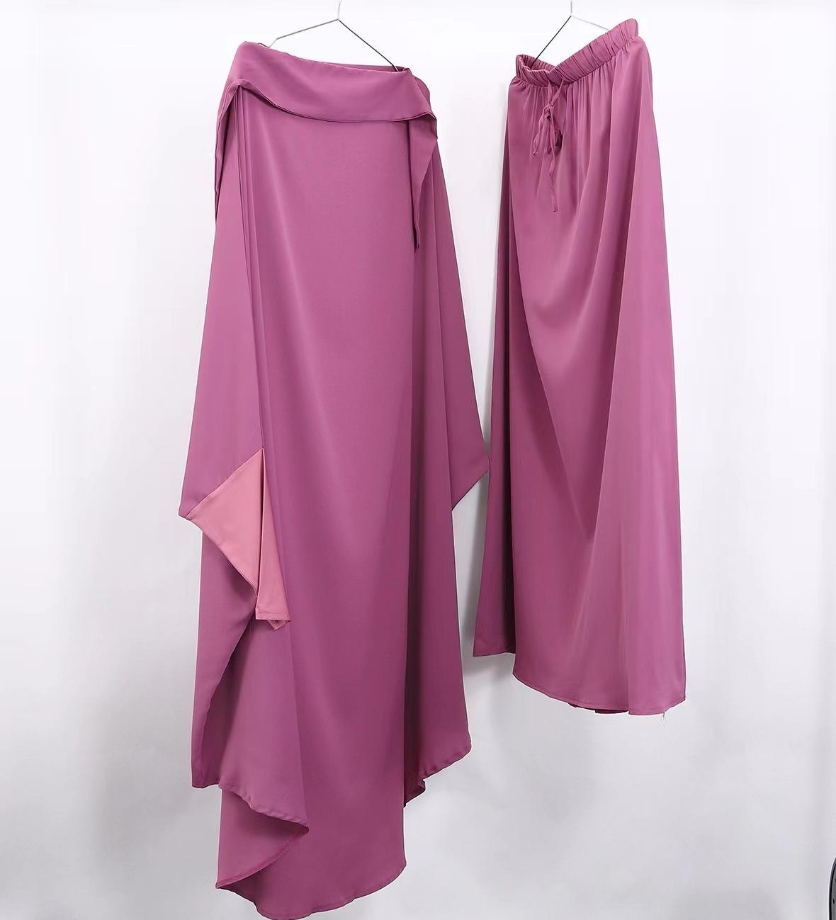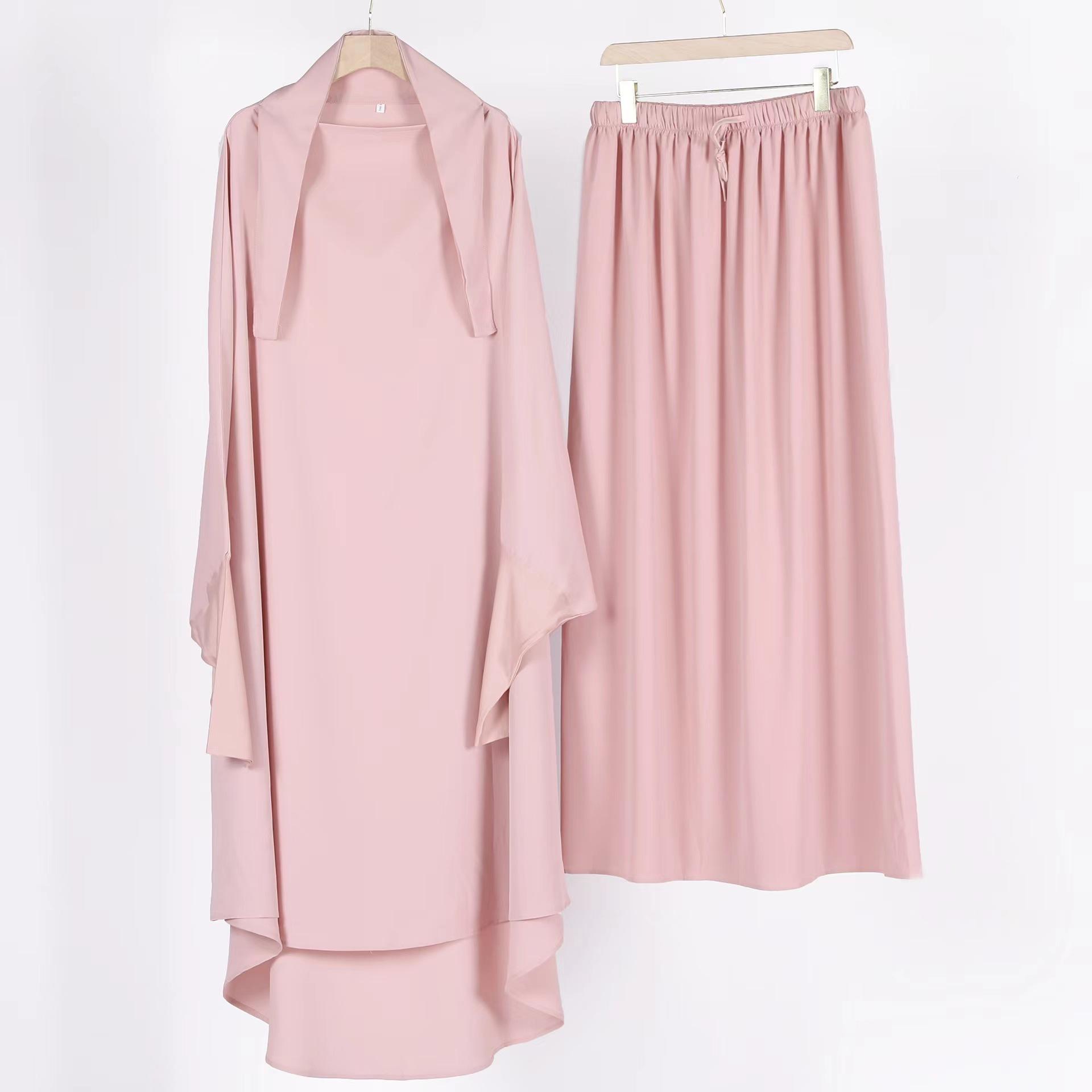 Ropa de mujer transfronteriza Medio Oriente Turquía Dubái color sólido manga larga vuelo amplio color sólido cinturón traje pañuelo vestido