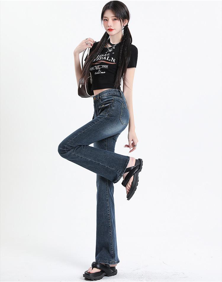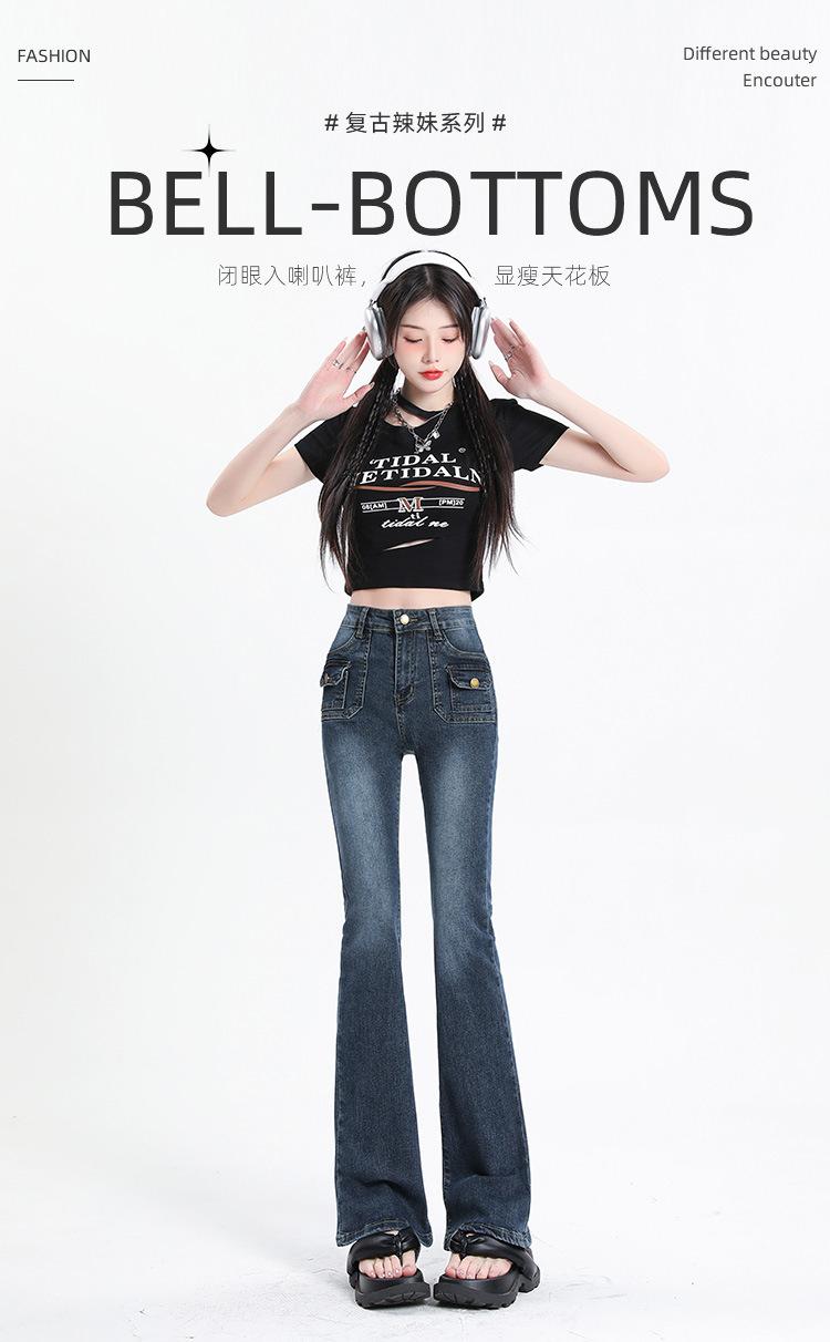 Jeans Acampanados Retro Americanos para Mujer, Cintura Alta, Adelgazantes, Nuevo Estilo Primavera y Otoño 2024, Pantalones para Cuerpo en Forma de Pera