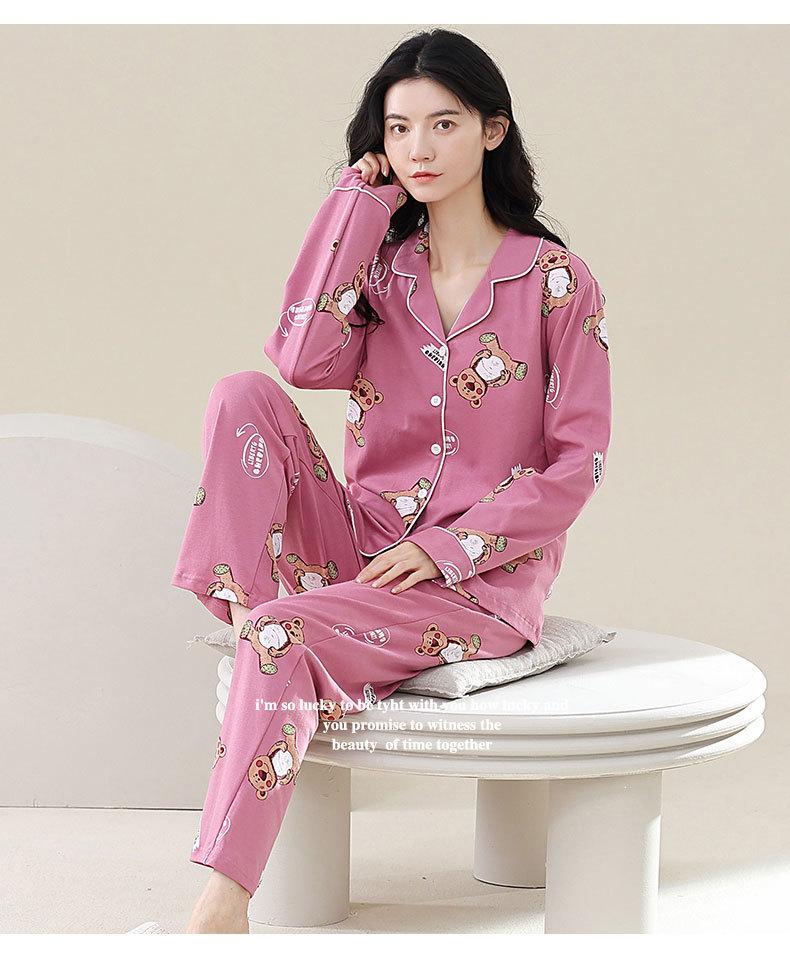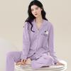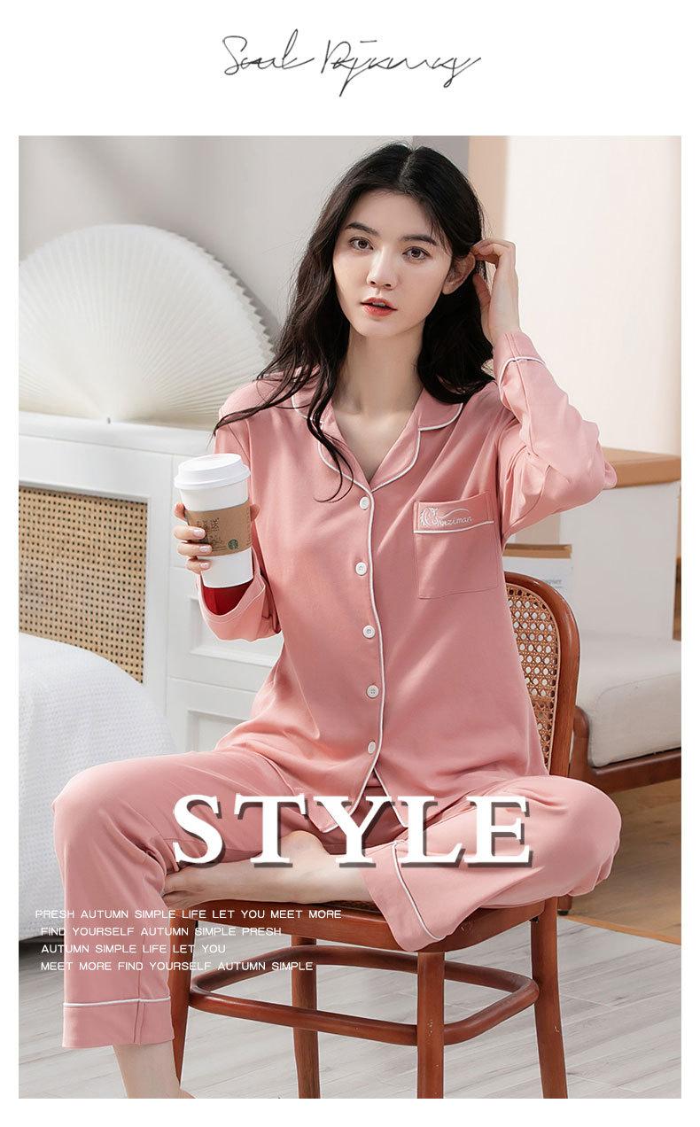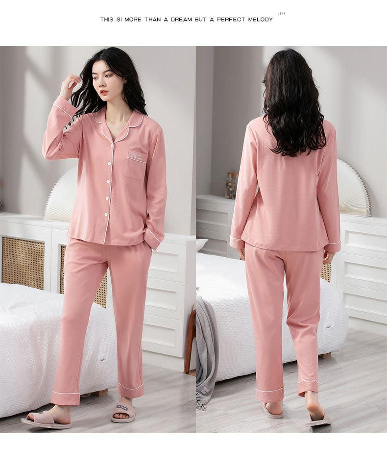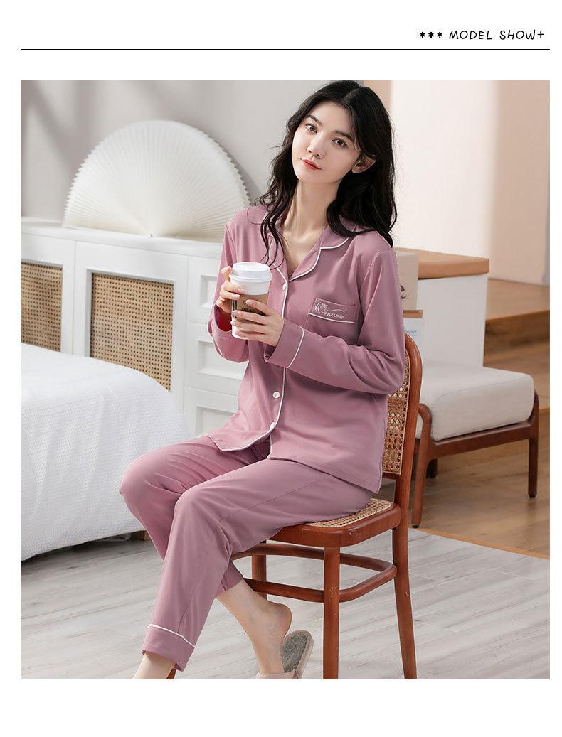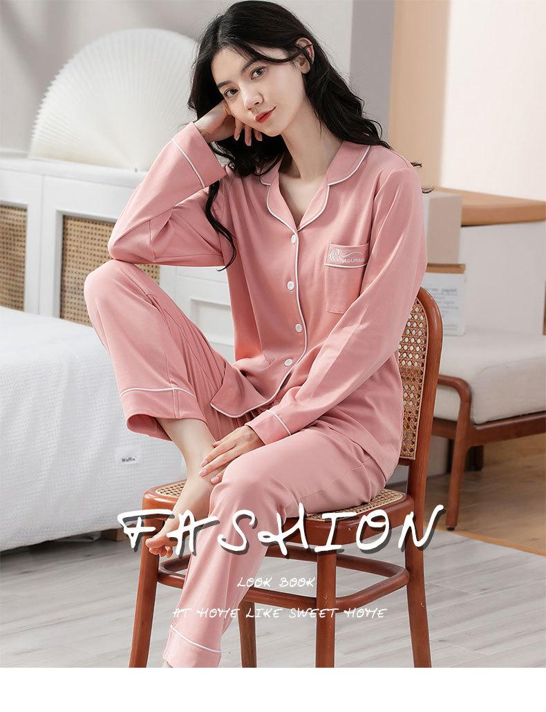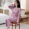 Pijamas de talla grande para mujer, de algodón, para primavera y otoño, nuevos pantalones de manga larga, cárdigan informal de color liso, ropa de abrigo, traje para el hogar