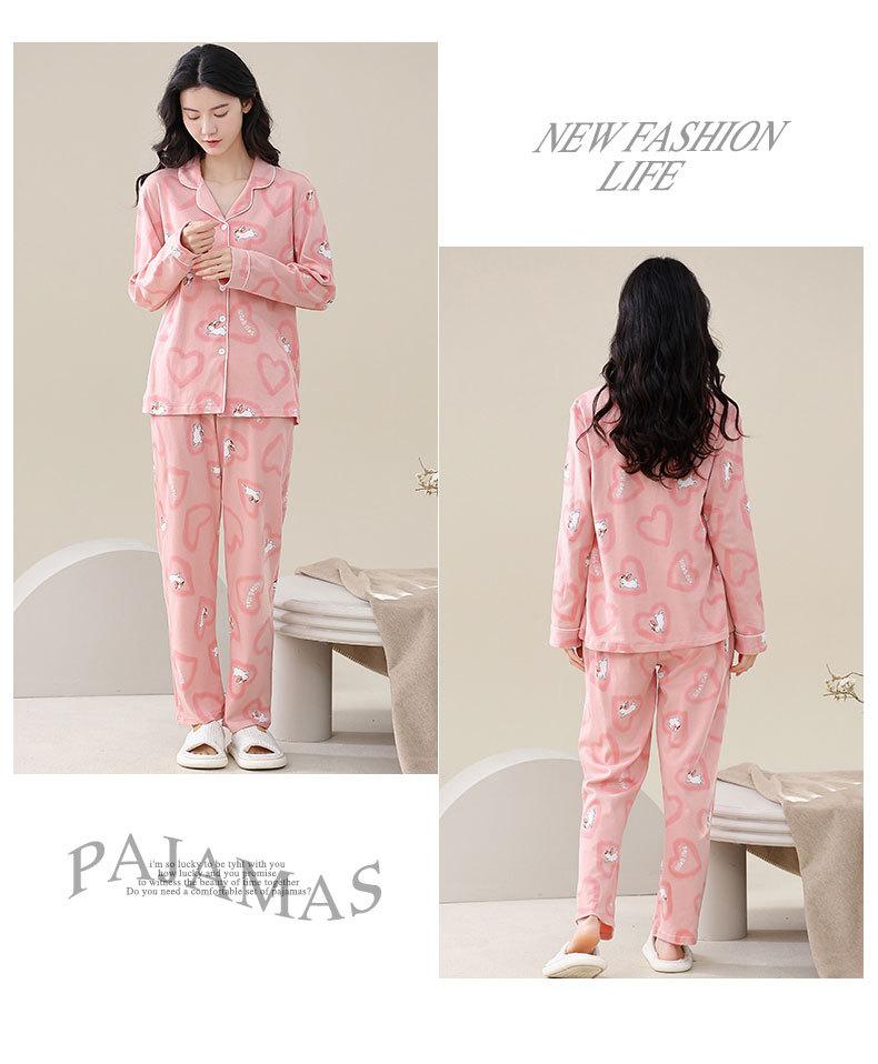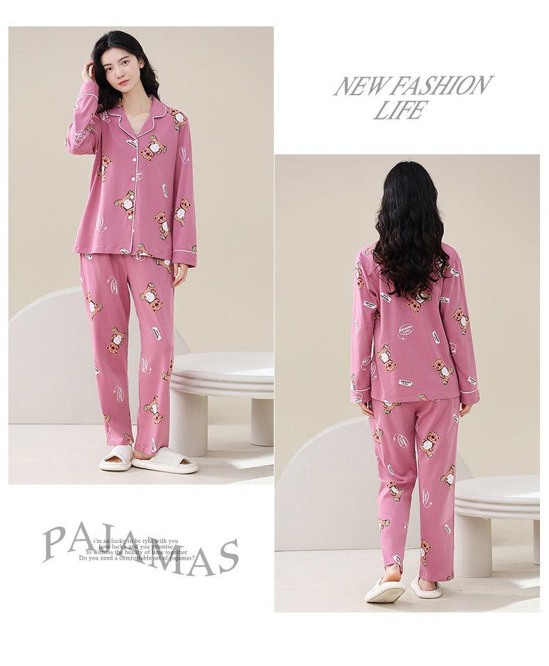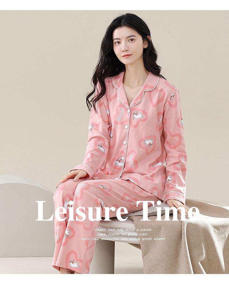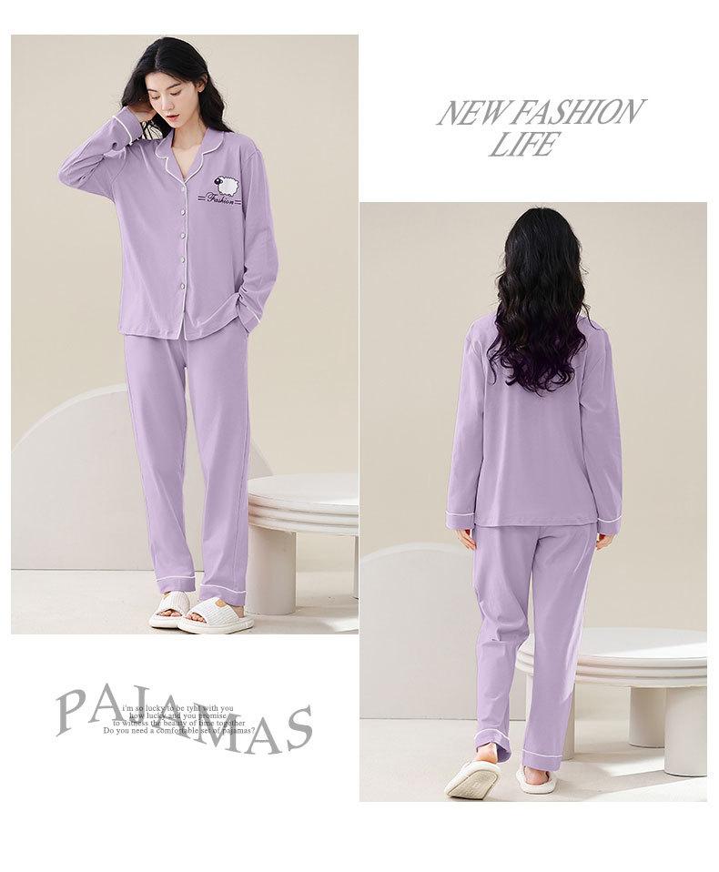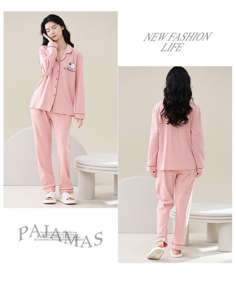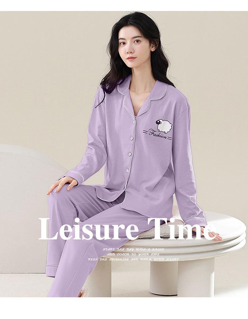 Pijamas de talla grande para mujer, de algodón, para primavera y otoño, nuevos pantalones de manga larga, cárdigan informal de color liso, ropa de abrigo, traje para el hogar