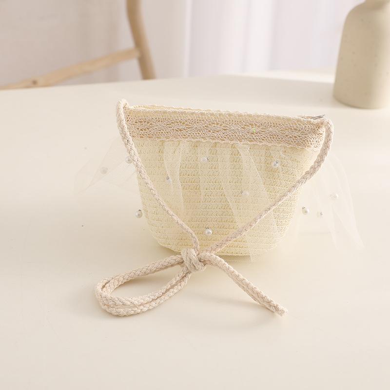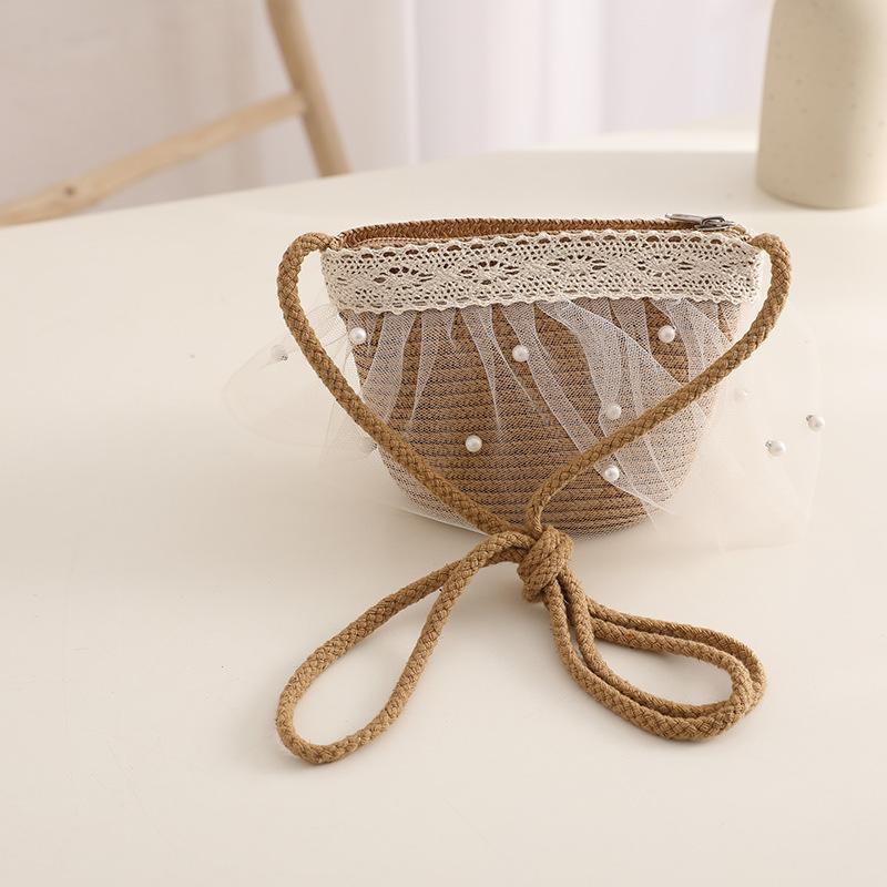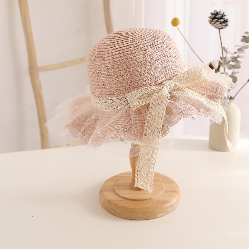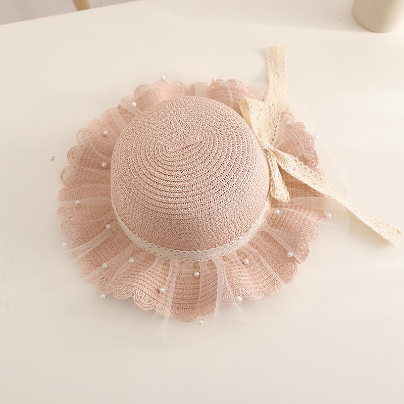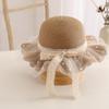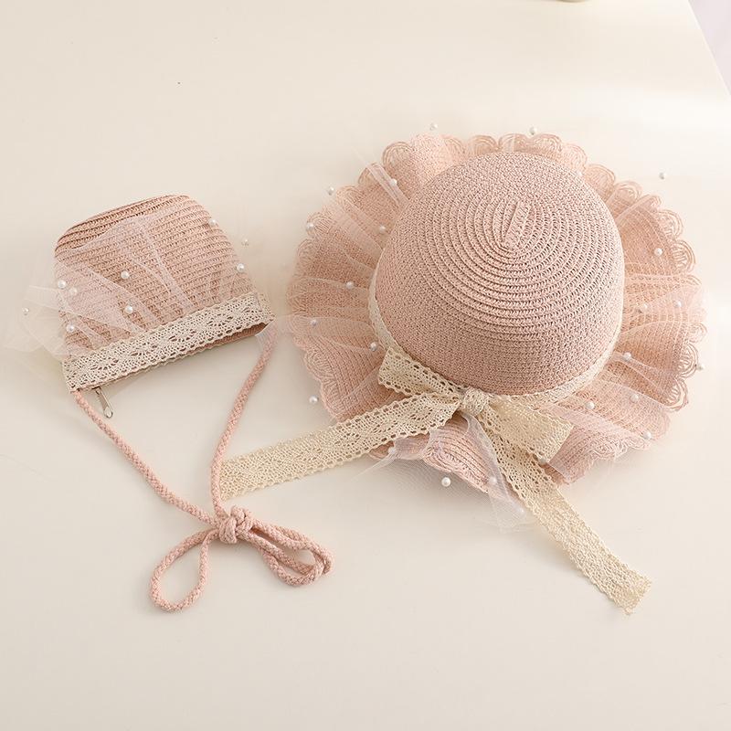 Sombrero de Paja Infantil de Ala Ondulada Pequeño y Fresco Verano Viaje para Niña Combinable Sombrero de Playa Sombrero para el Sol Set de Sombrero y Bolso
