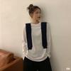 Camiseta Blanca 2025 de Manga Larga para Estudiante, Estilo K Suelta de Cuello Redondo Versátil de Color Puro Primavera y Otoño Camiseta Básica Ins