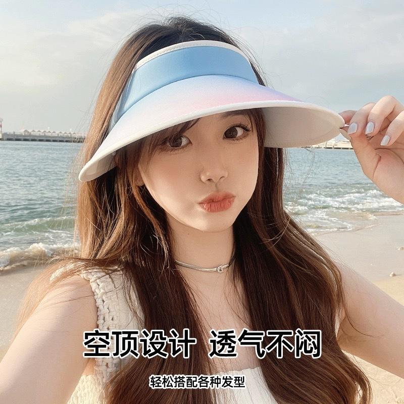 Sombrero de Protección Solar con Degradado de Color para Mujer, Sombrero de Copa Vacía para Viaje de Verano al Aire Libre, Sombrero de Sol Anti-UV Pequeño que Favorece el Rostro