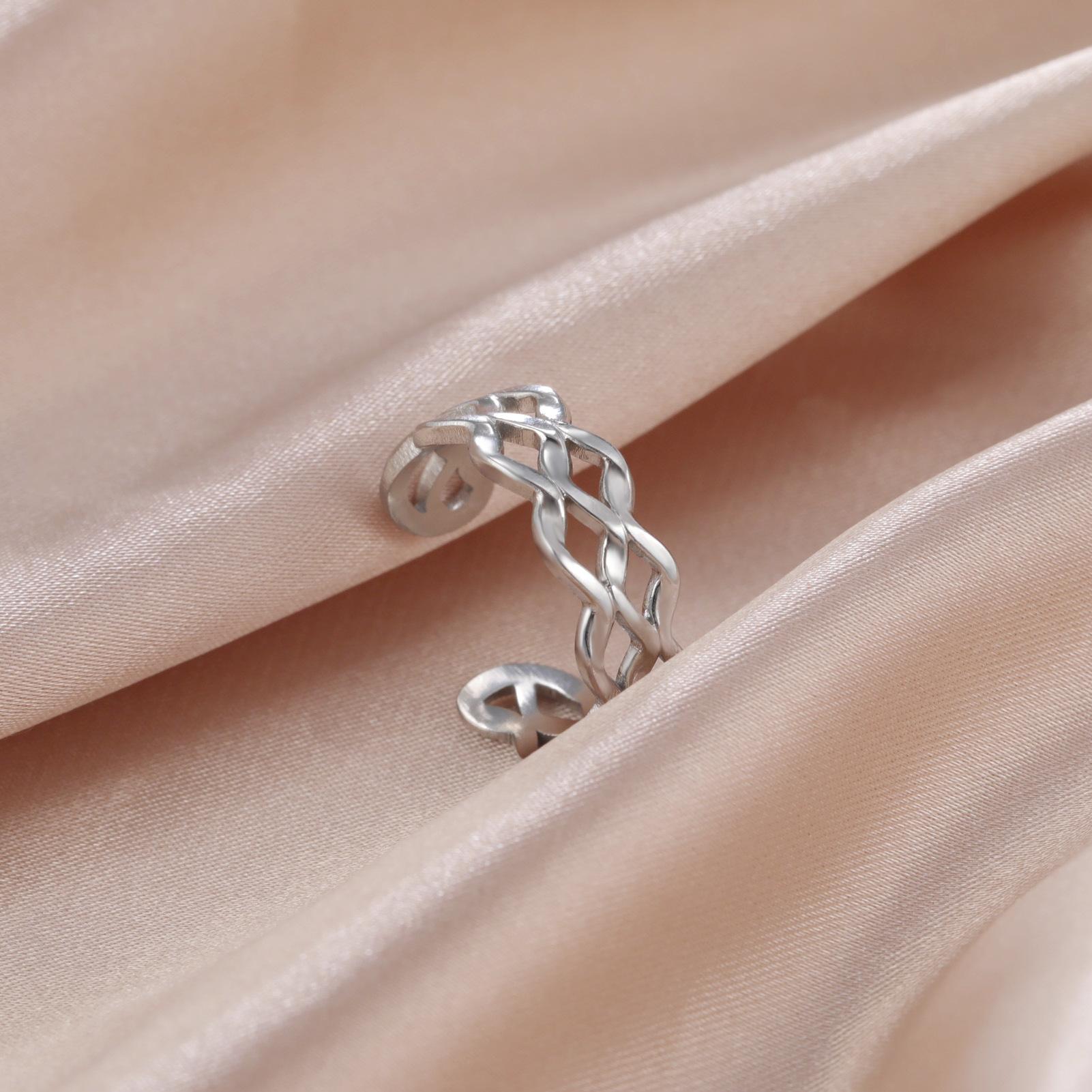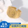 Anillo abierto de acero de titanio transfronterizo de estilo europeo y americano, anillo de cadena geométrica ajustable simple para mujer, anillo de acero inoxidable al por mayor