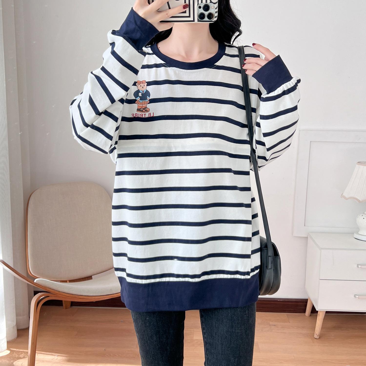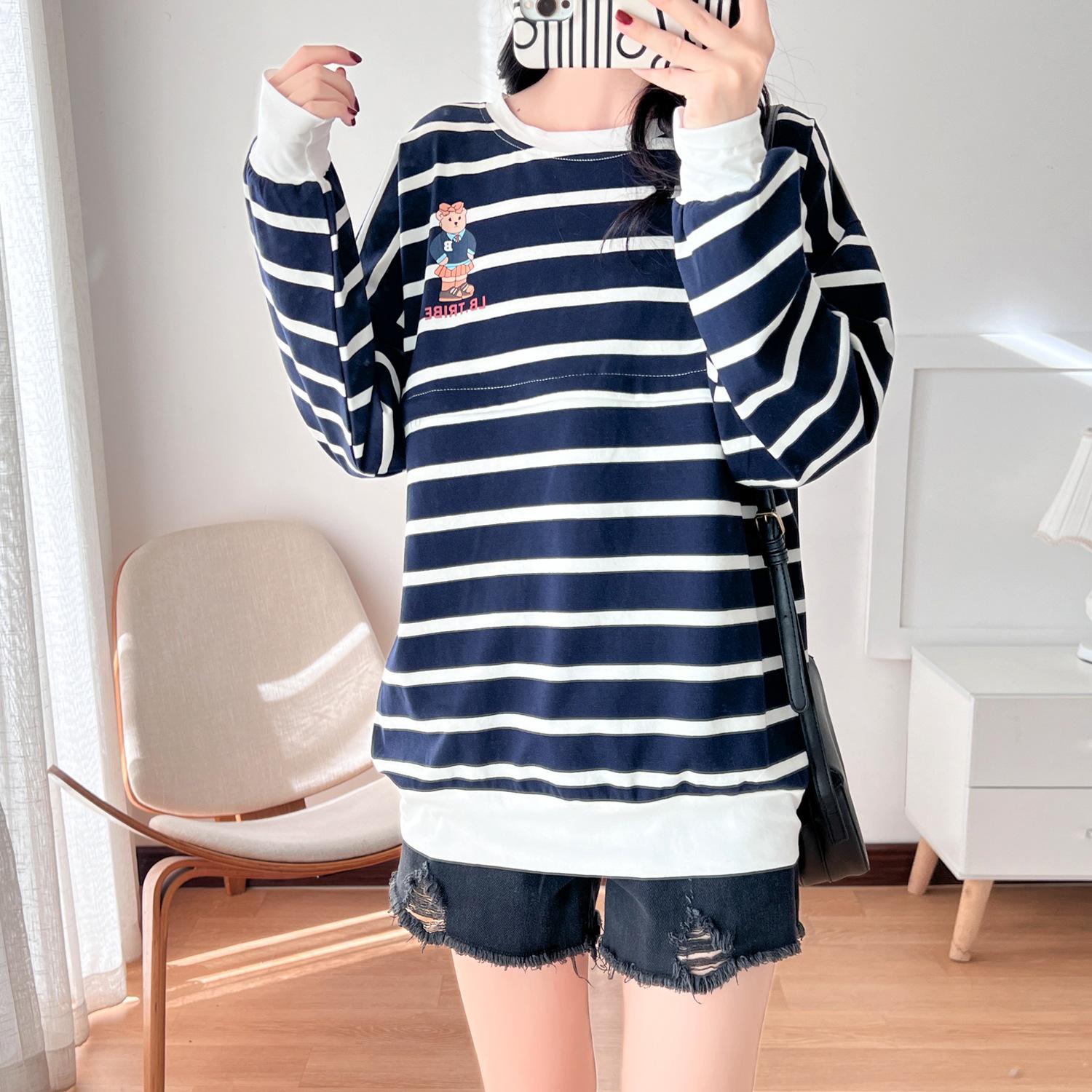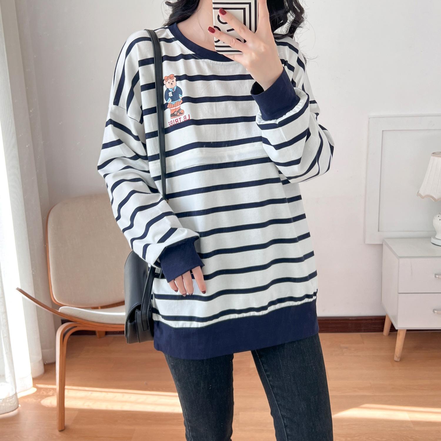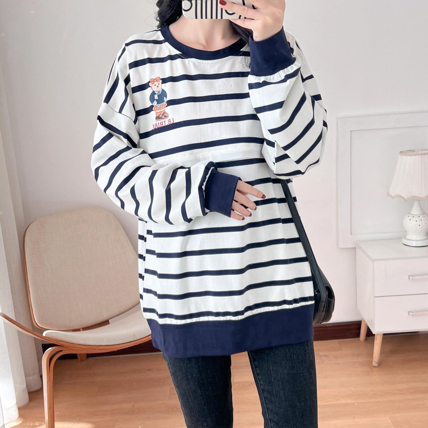 Ropa de mujer embarazada de algodón puro, ropa de lactancia, camiseta de manga larga para salir, moda de mamá larga y sexy, chaqueta de lactancia posparto de primavera y otoño