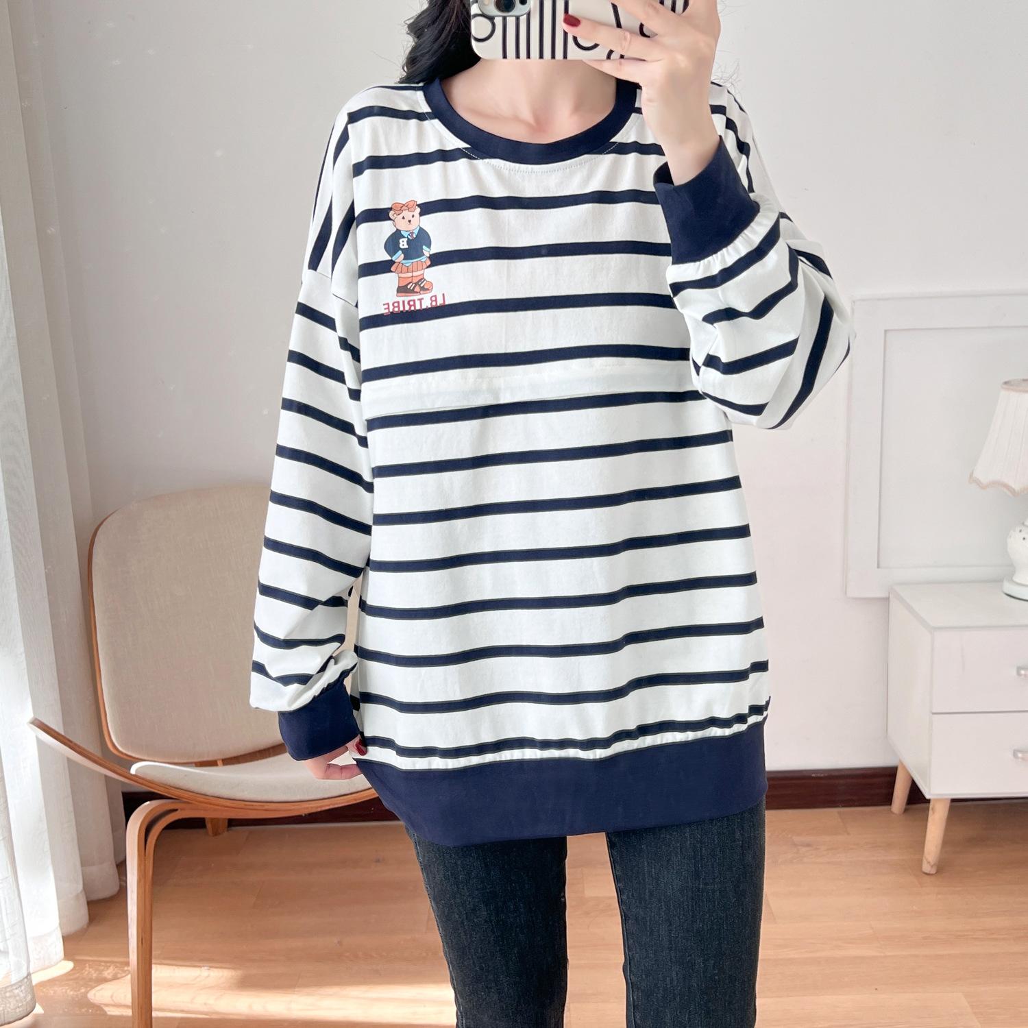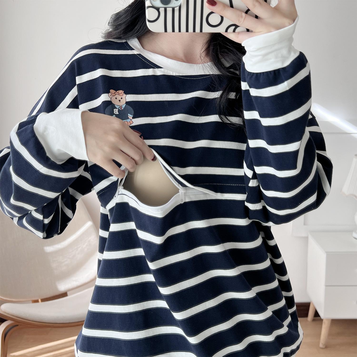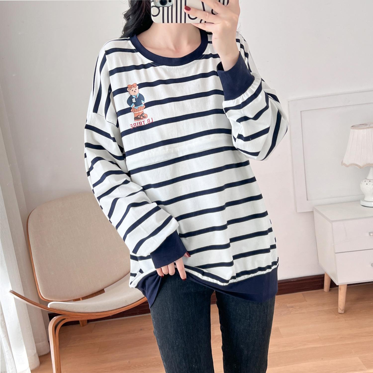 Ropa de mujer embarazada de algodón puro, ropa de lactancia, camiseta de manga larga para salir, moda de mamá larga y sexy, chaqueta de lactancia posparto de primavera y otoño
