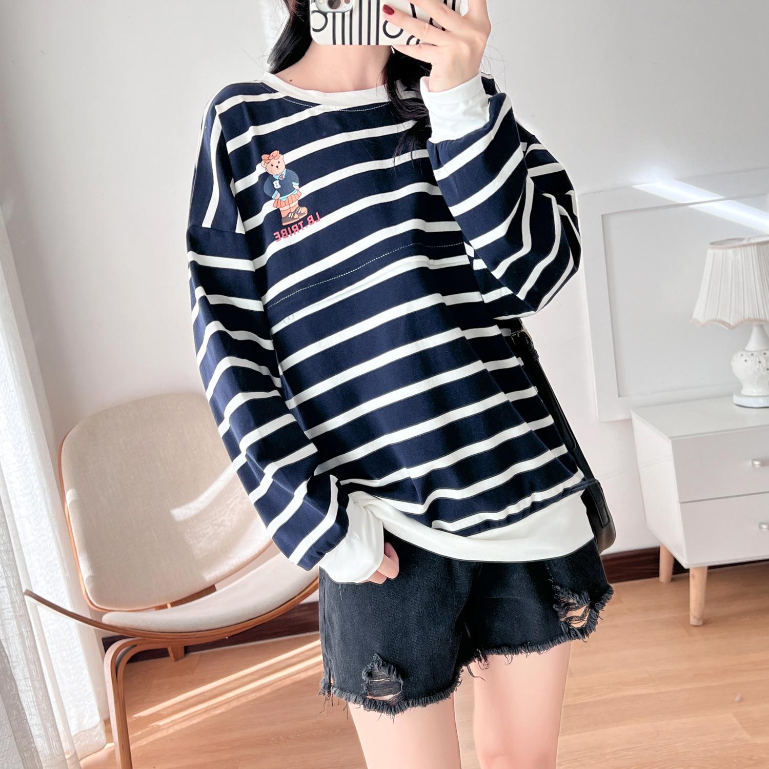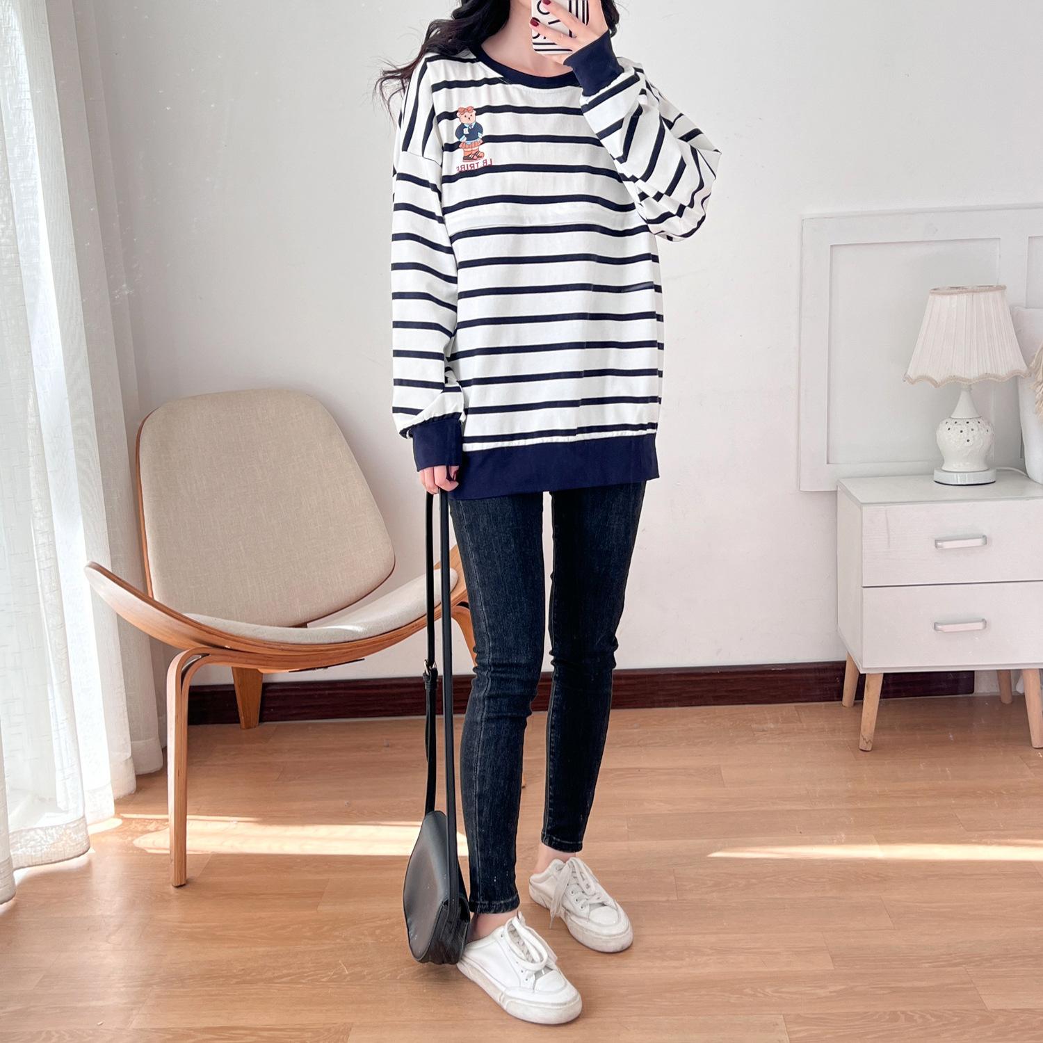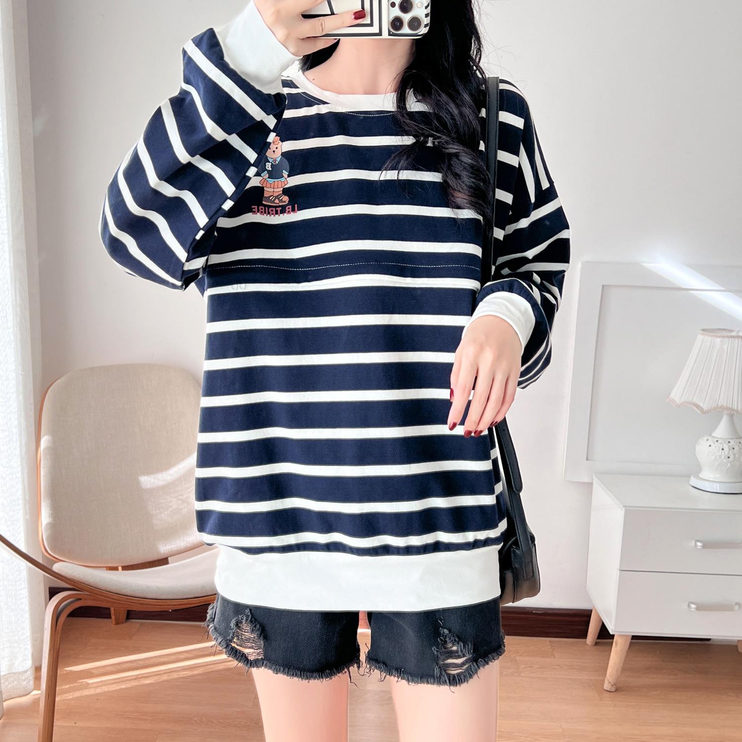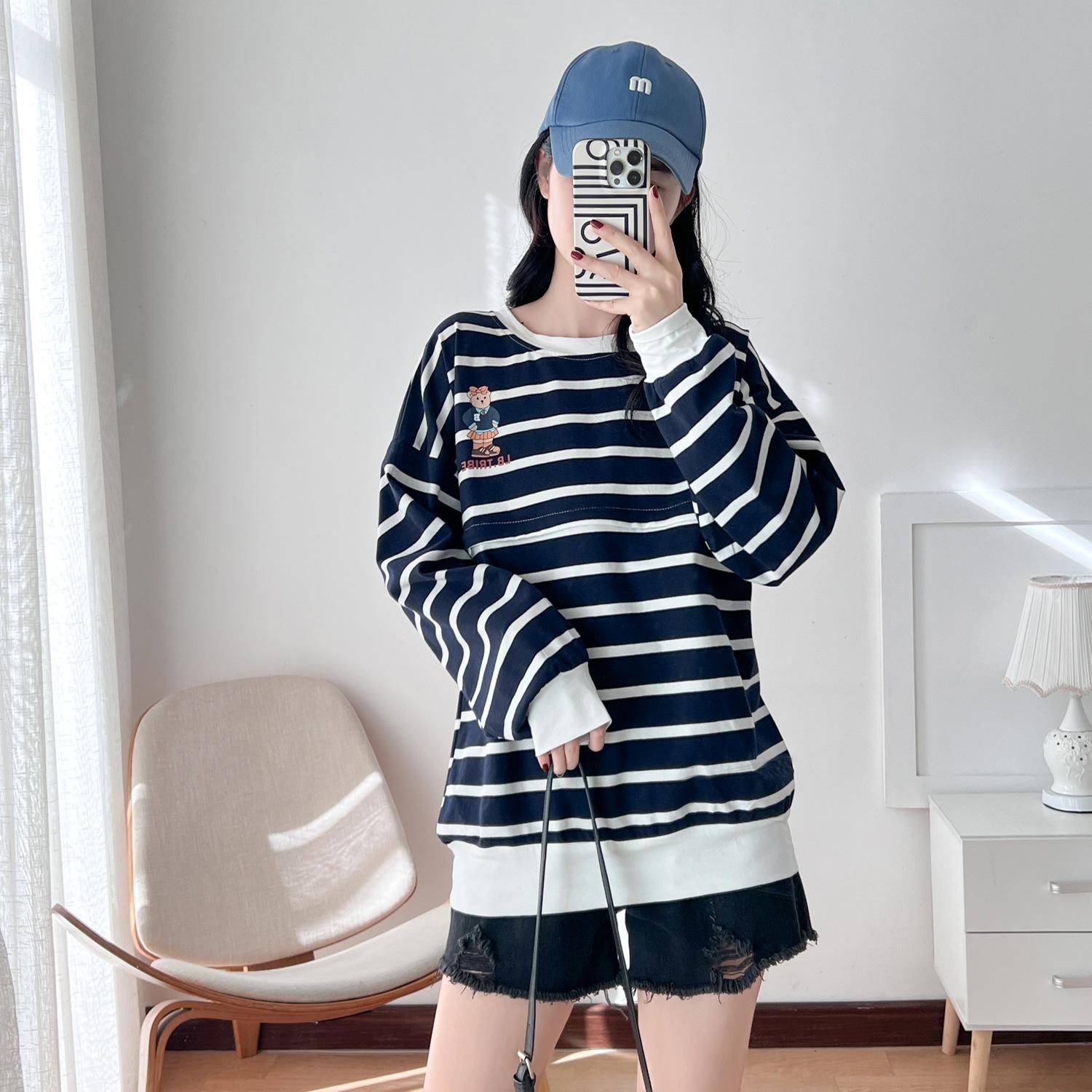 Ropa de mujer embarazada de algodón puro, ropa de lactancia, camiseta de manga larga para salir, moda de mamá larga y sexy, chaqueta de lactancia posparto de primavera y otoño