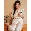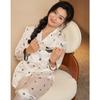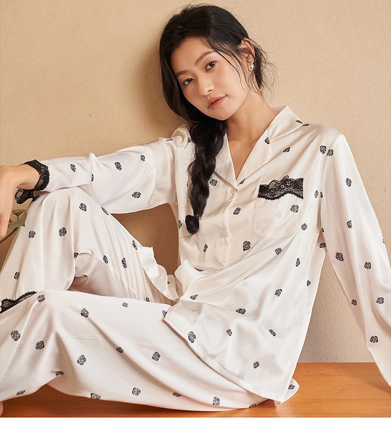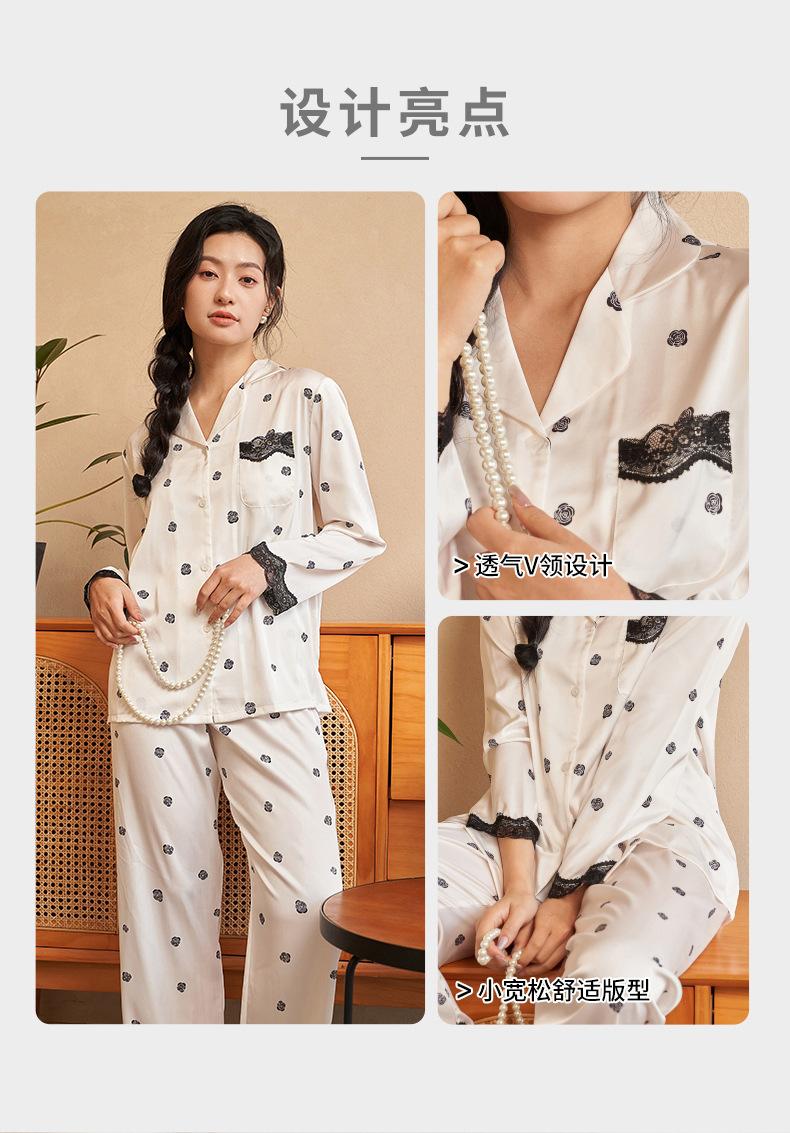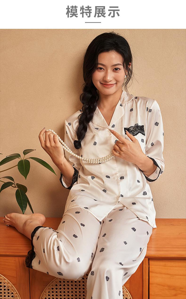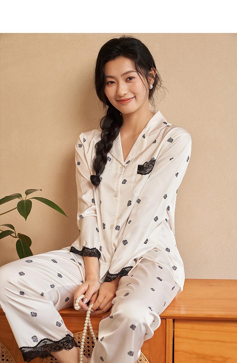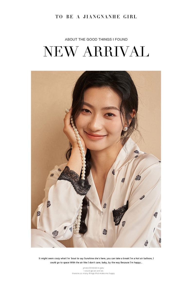 Jiangnan he 2024 nuevos pijamas de mujer primavera y verano de alta calidad de encaje negro pantalones de manga larga traje de ropa de casa