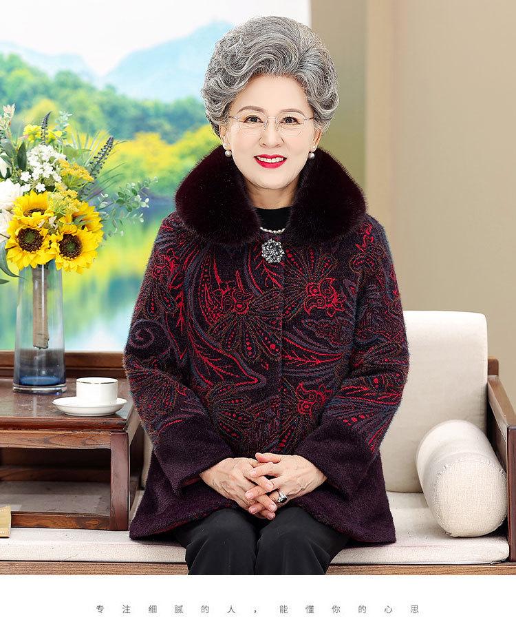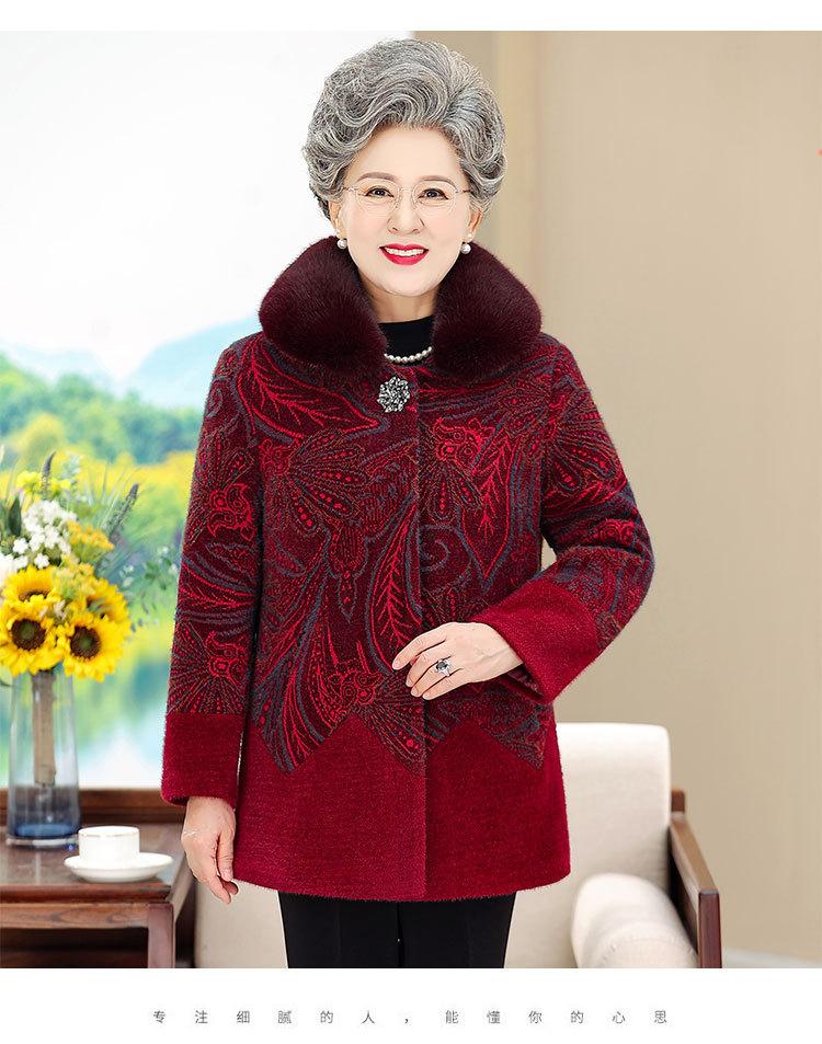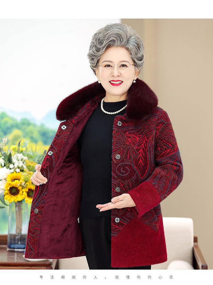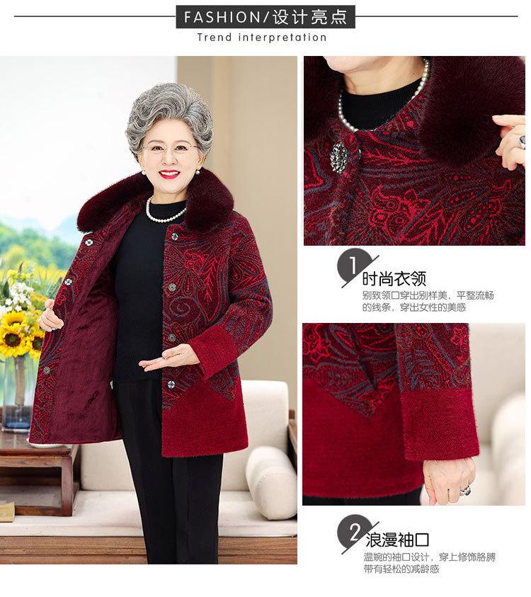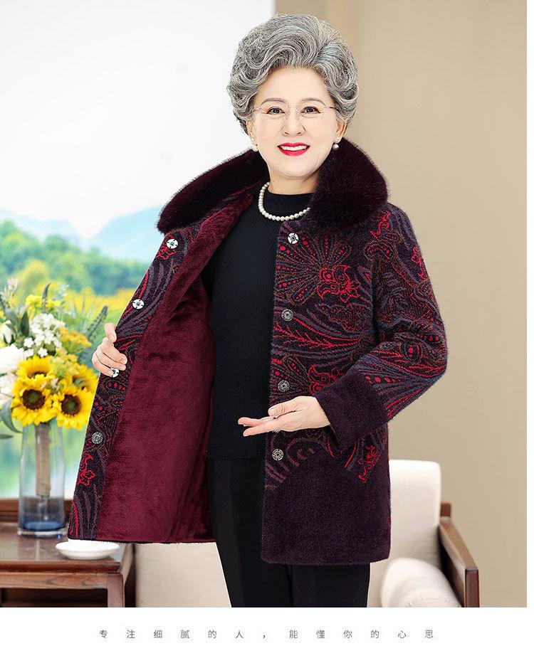 Ropa de mamá abrigo de lana acolchado con forro polar abrigo terciopelo visón sintético invierno Nuevo abrigo para mujeres de mediana edad y ancianas