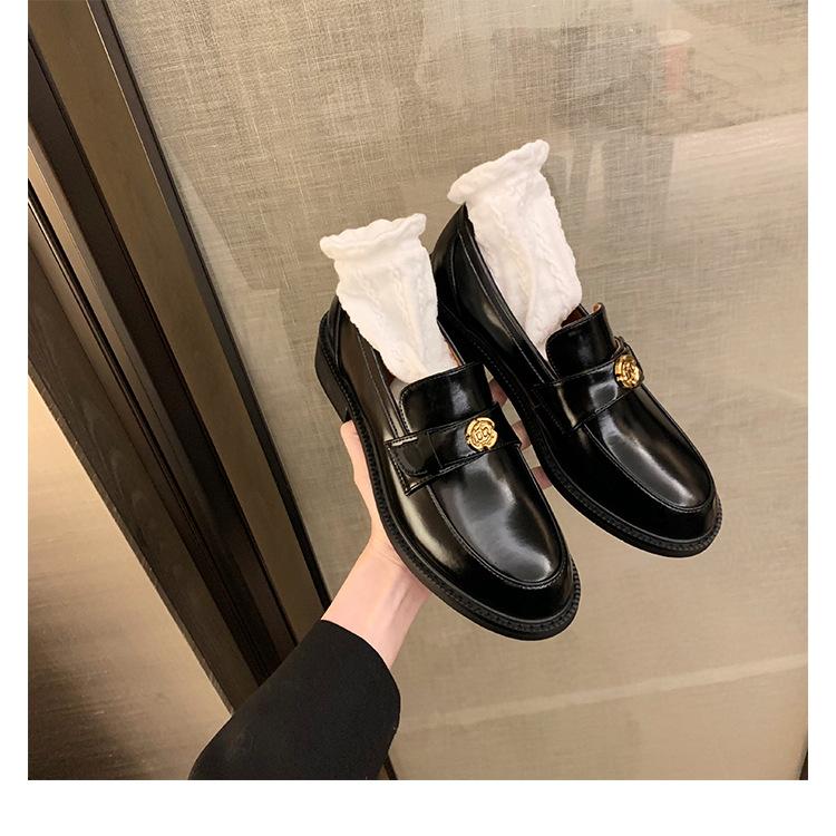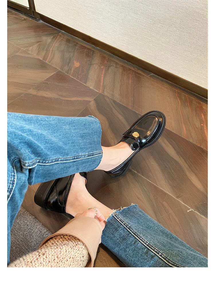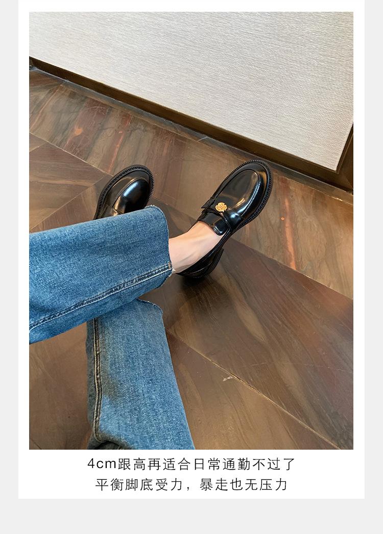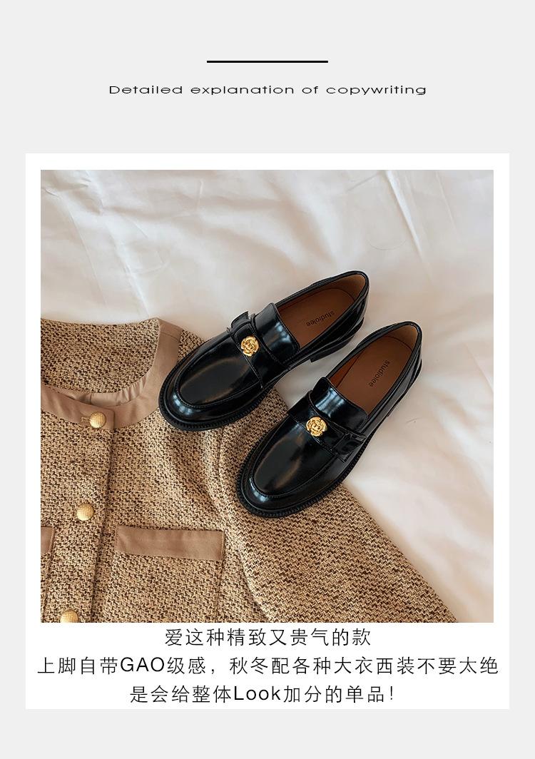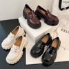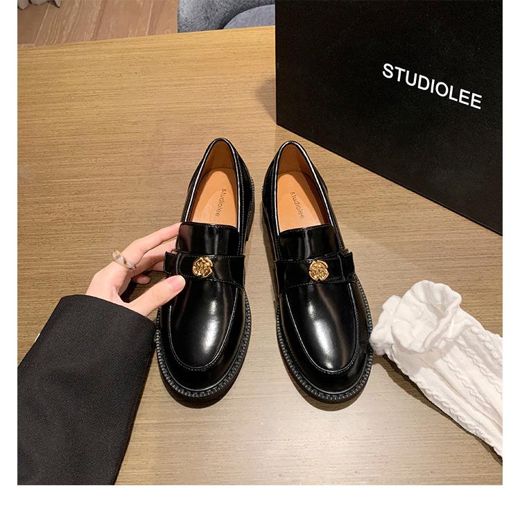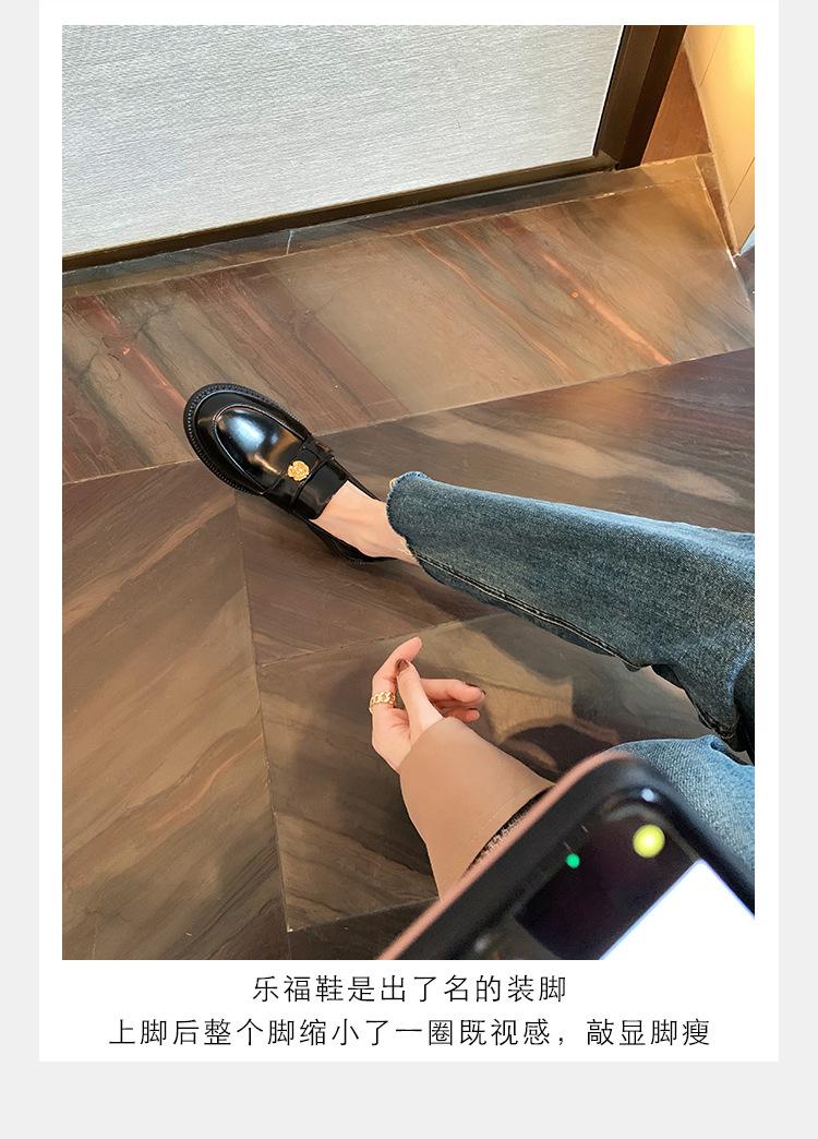 Grape Mom studiolee Primavera y Otoño Nuevos Zapatos de Una Capa de Suela Gruesa Cuero Genuino Slip-on Tacón Grueso Lefu Zapatos de Cuero Pequeños para Mujer