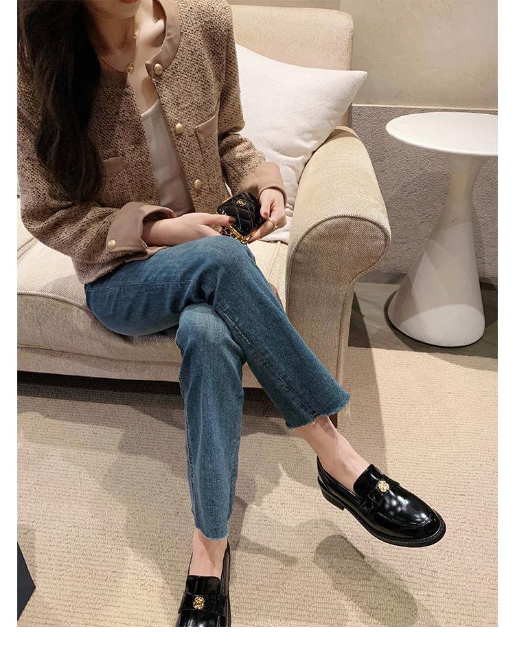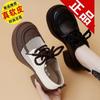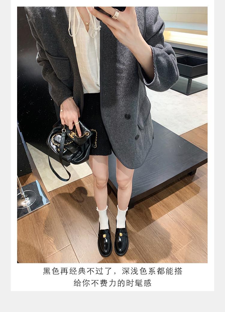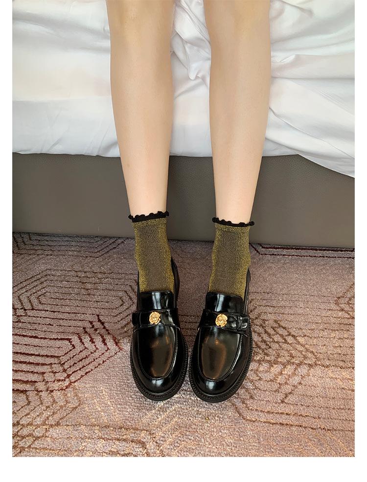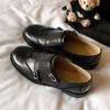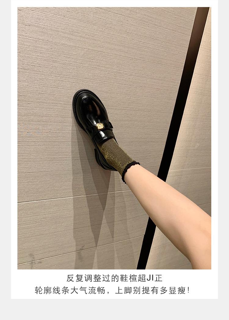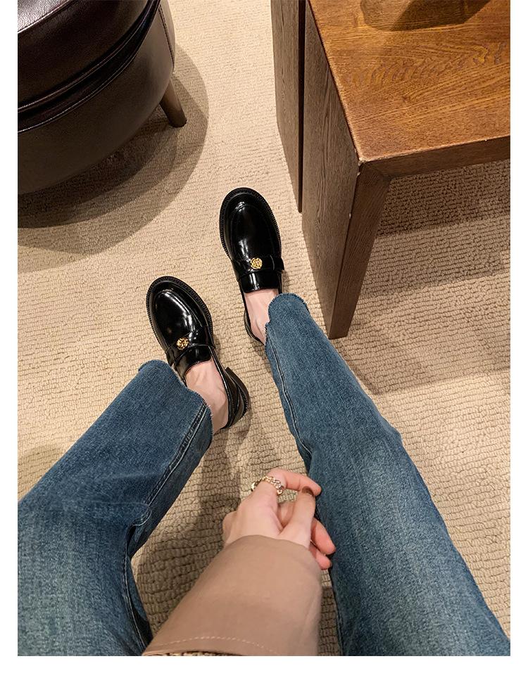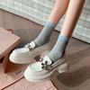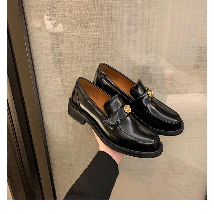 Grape Mom studiolee Primavera y Otoño Nuevos Zapatos de Una Capa de Suela Gruesa Cuero Genuino Slip-on Tacón Grueso Lefu Zapatos de Cuero Pequeños para Mujer