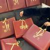 Bolso de mano no tejido del Festival del Bote del Dragón, bolso ecológico, bolso festivo rojo no tejido, bolso de bendición no tejido¥1