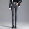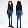 Pantalones vaqueros de cintura alta para mujer, primavera 2025, nuevos, de cuatro botonadura, ajustados, adelgazantes, de color azul oscuro, leggings ajustados.