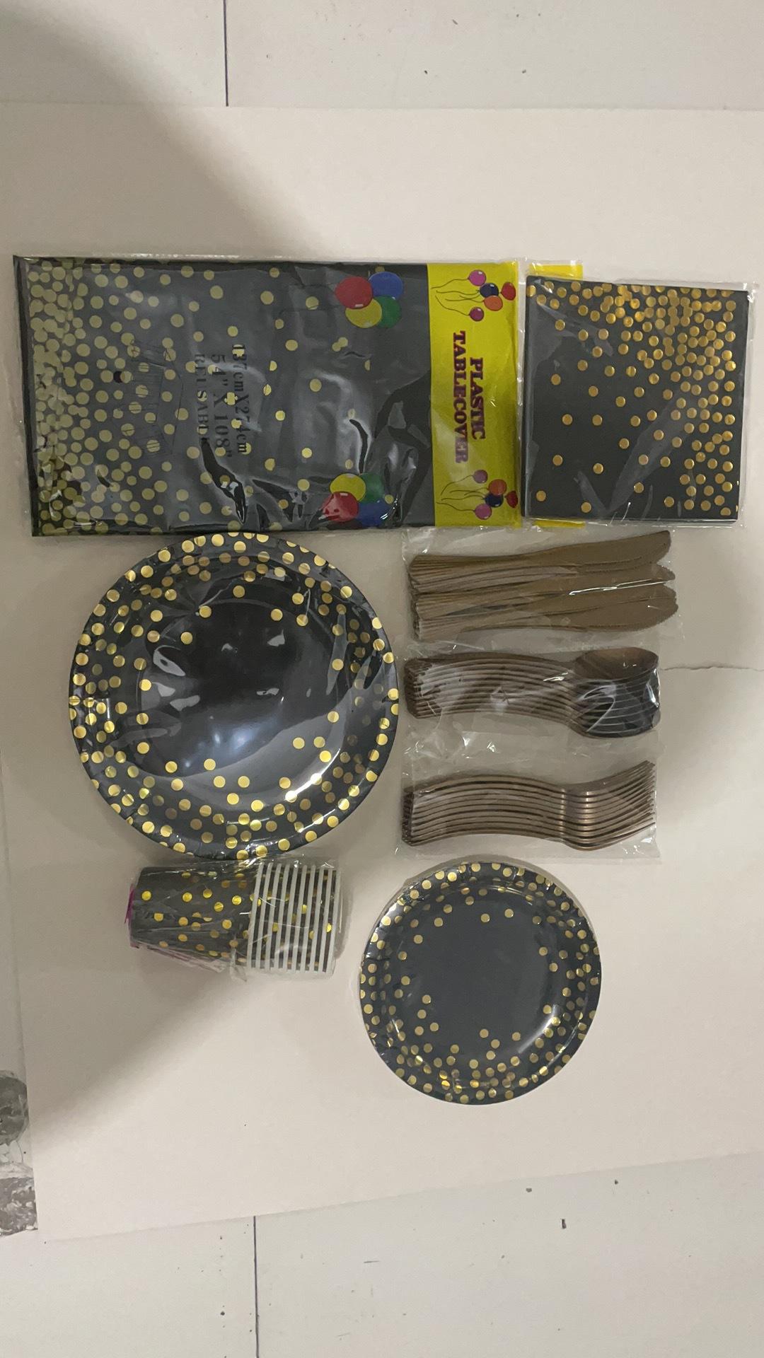 Vaso de papel 10 Toalla de papel 10 Plato de 7 pulgadas 10 Plato de 9 pulgadas 10 Cuchillo, tenedor y cuchara 10 cada uno