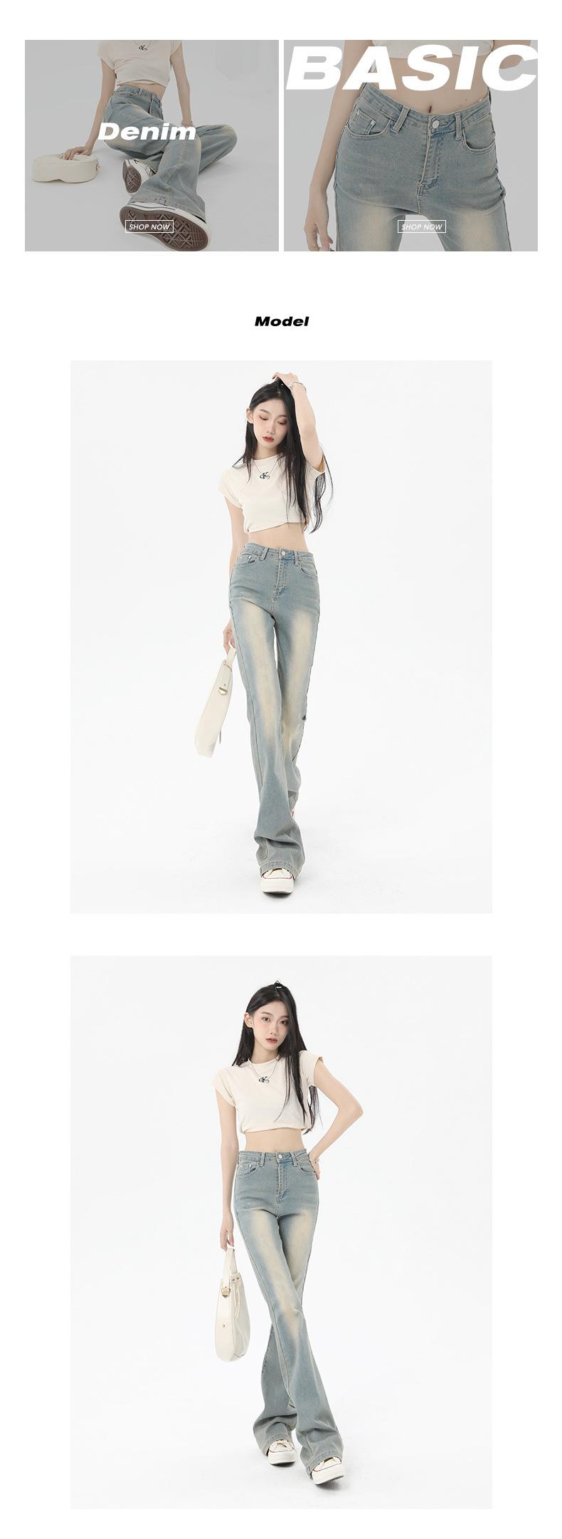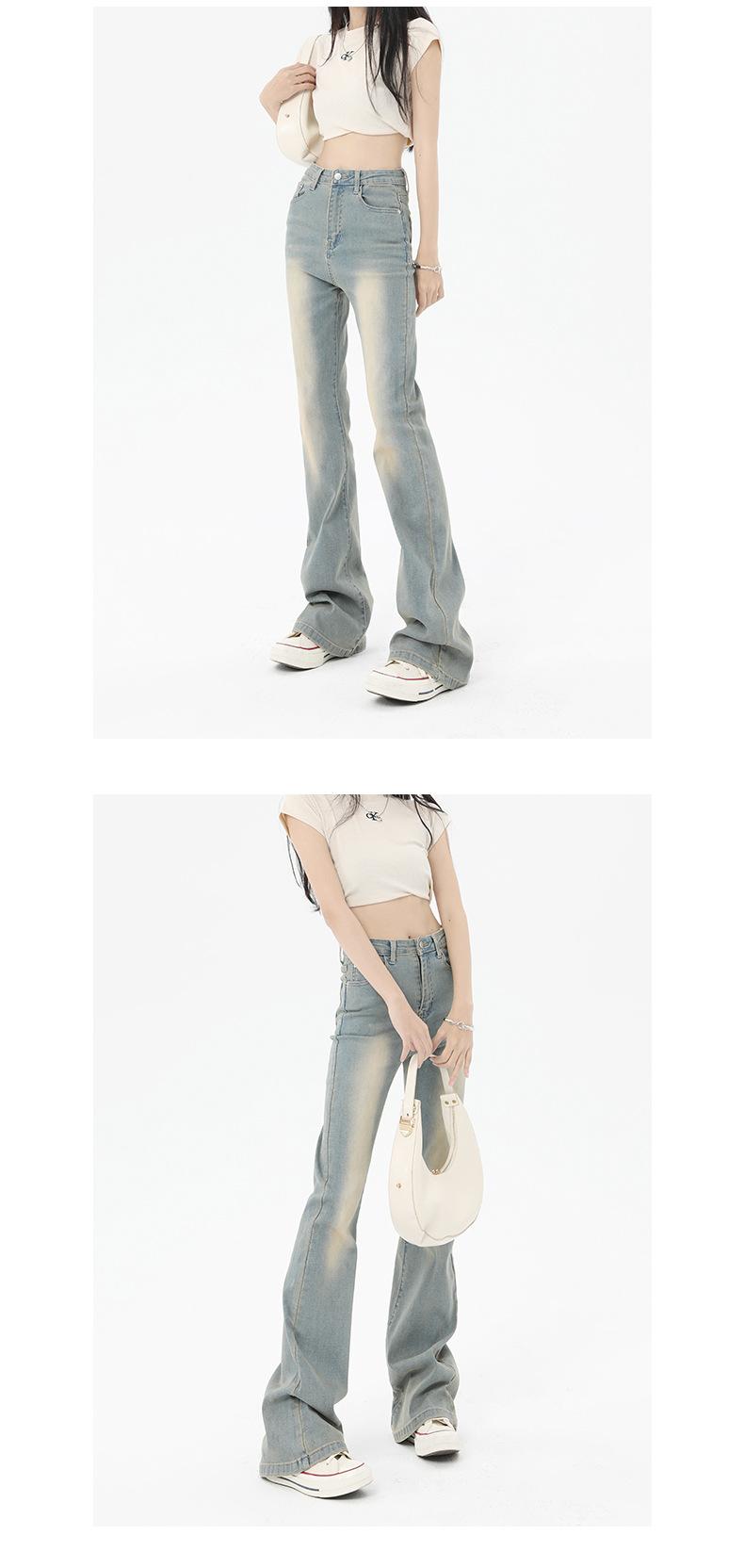 Vaqueros acampanados elásticos de estilo americano, estilo retro, adelgazantes, de color azul claro, de corte entallado, de pierna larga, de principios de otoño para mujer