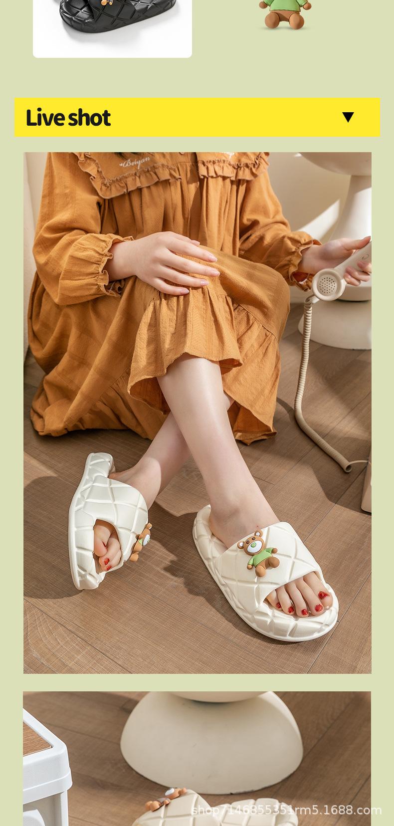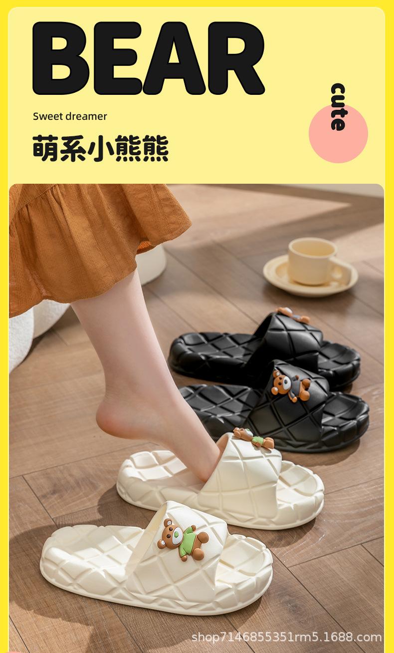Sandalias y pantuflas de verano para damas, caricatura de oso lindo, suela gruesa, para uso exterior, sentido de la mierda, Eva antideslizante, para casa, silenciosas, venta al por mayor