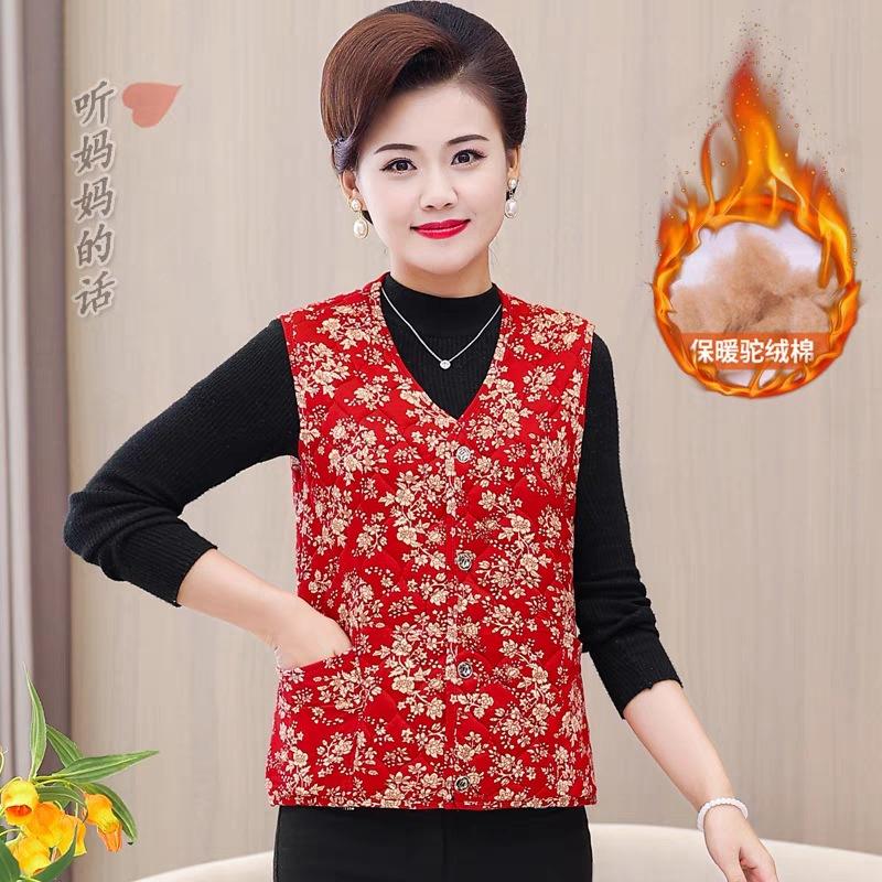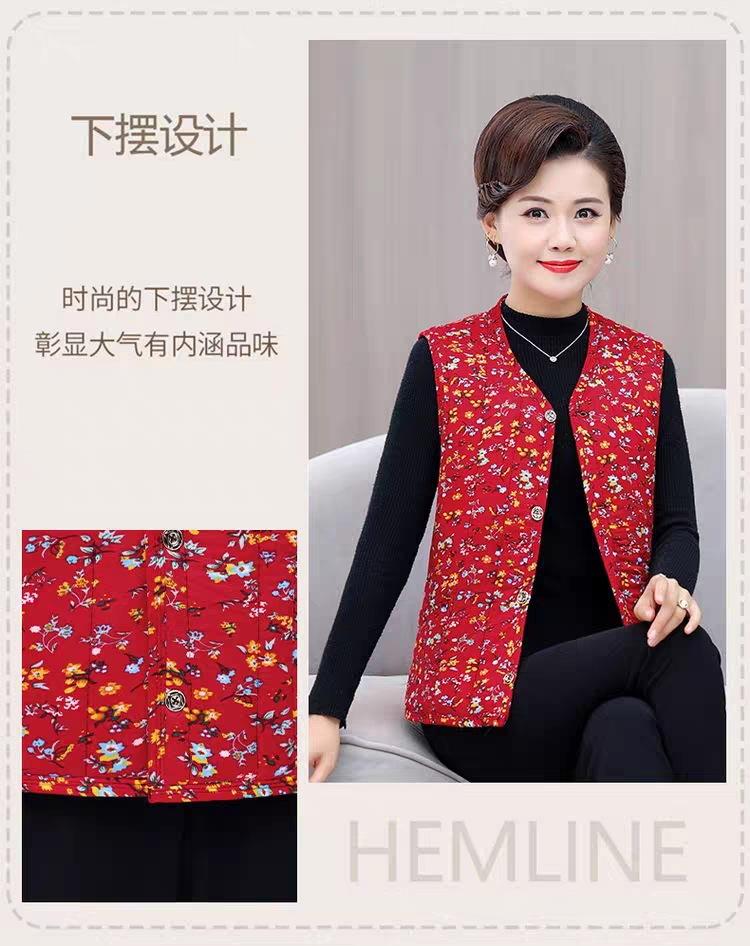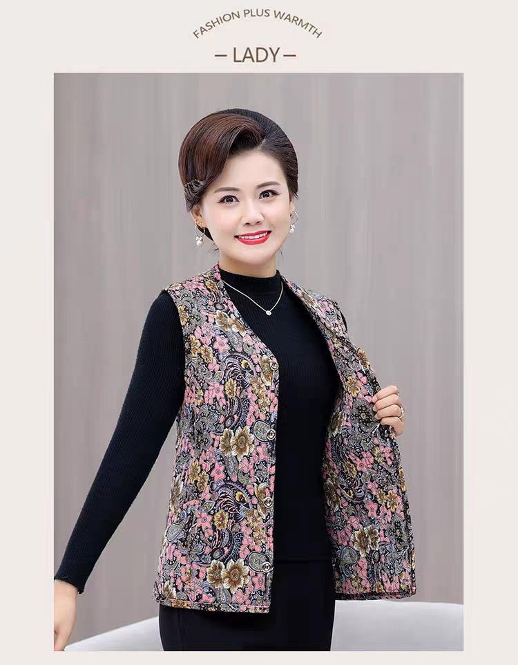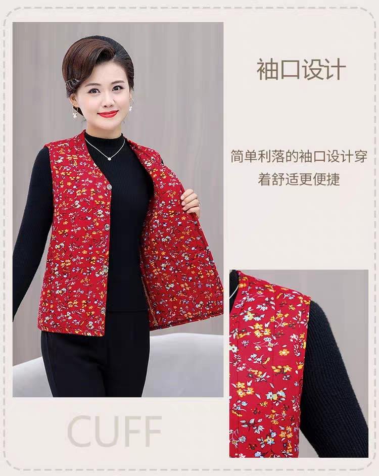 Chaleco de algodón camel de doble cara con flores para mujer, chaleco de algodón acolchado cálido, moda delgada, chaqueta china
