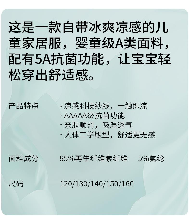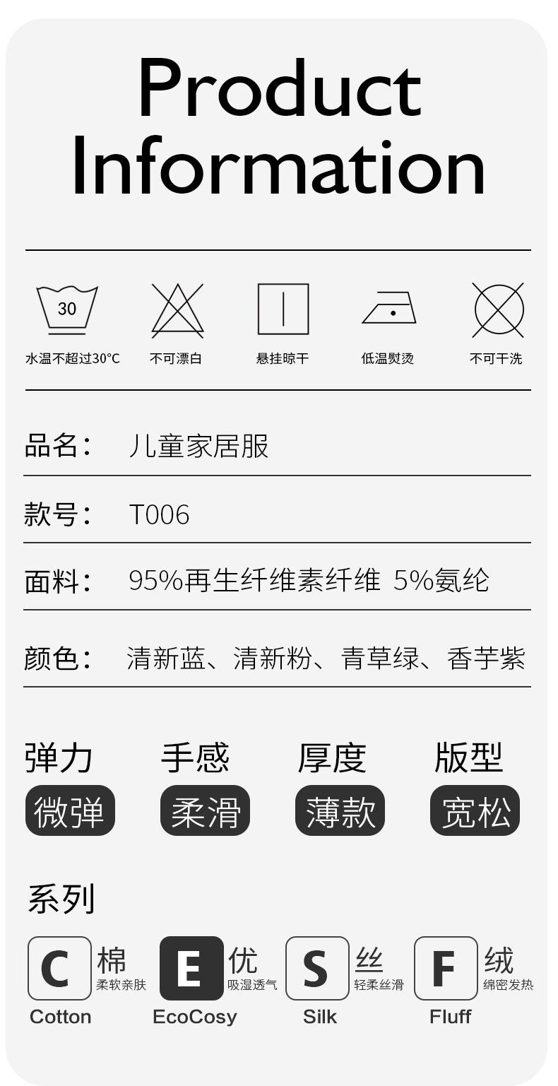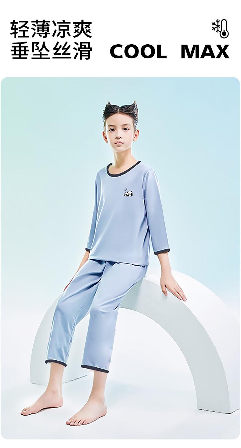 Pijama ligero para niños, Ropa de casa suelta de verano de seda ecológica, Se puede usar en exteriores, Traje Ice-Sense, Ropa de casa para niños