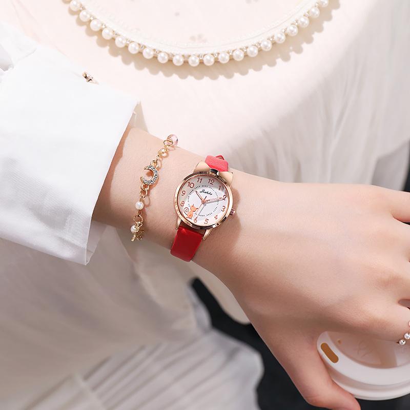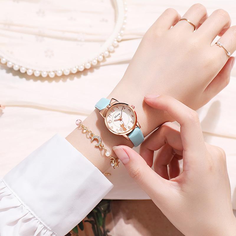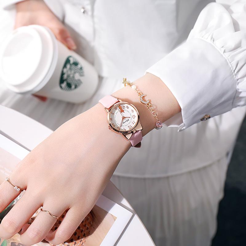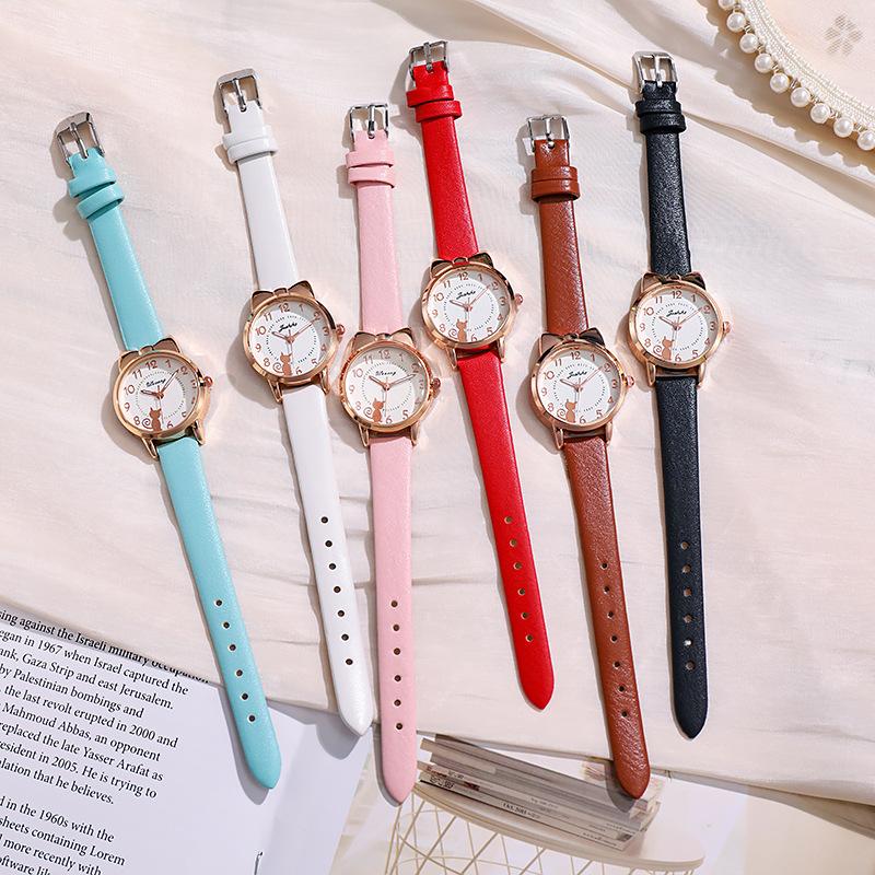 Reloj electrónico de cuarzo con puntero para niños, resistente al agua, con diseño de gato de siete puntas para niñas de primaria, ideal para niñas de primaria.