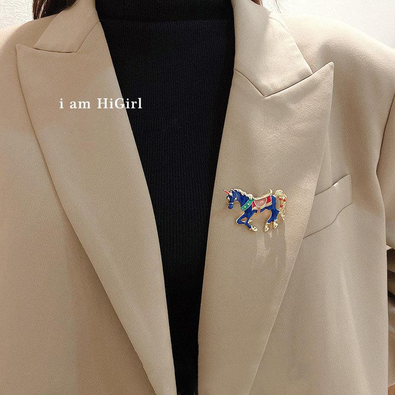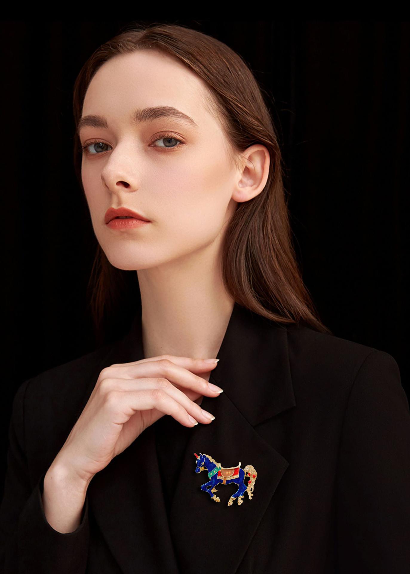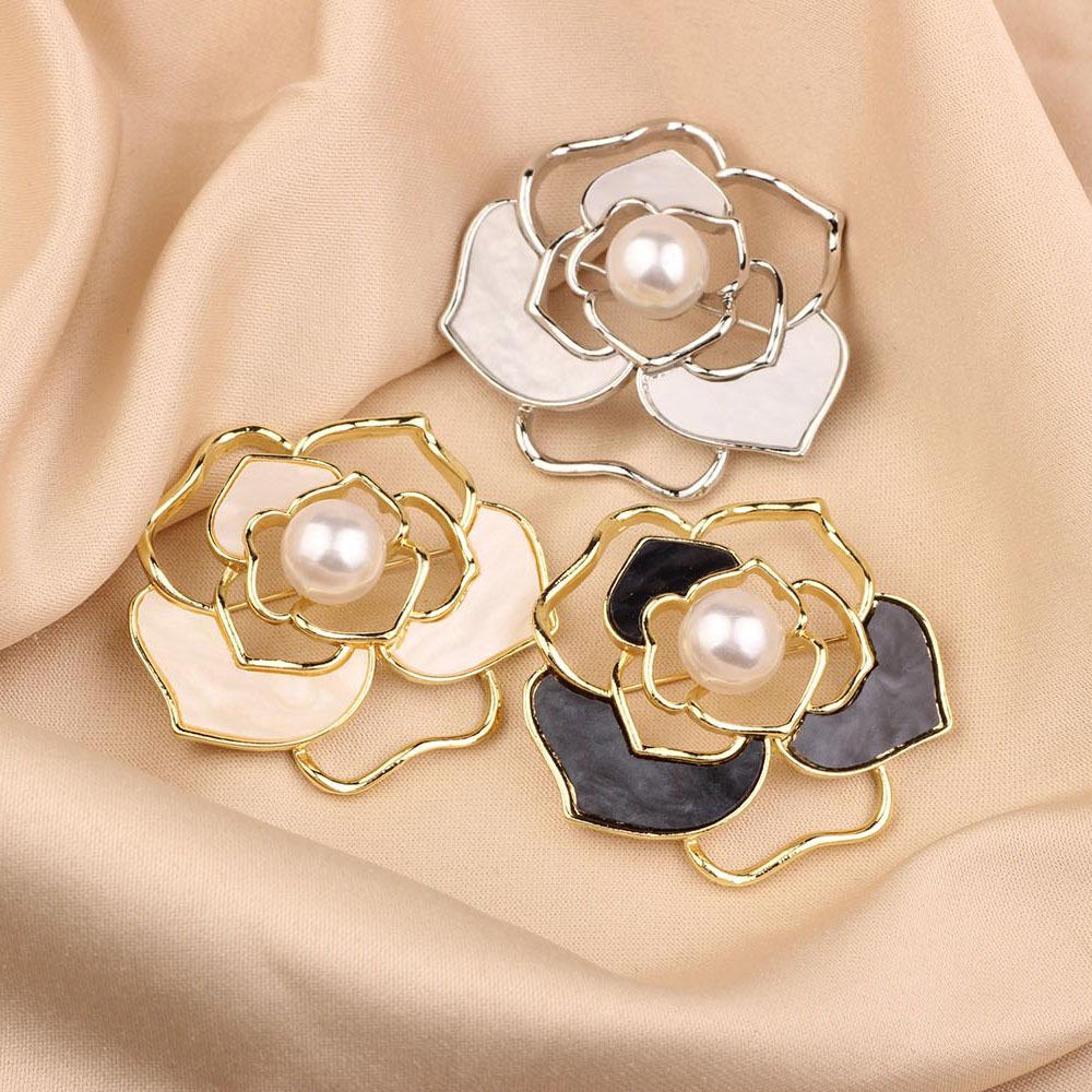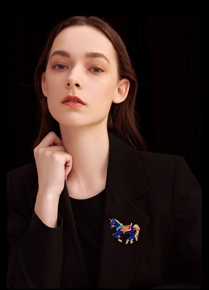 Broche de cadena Reina de caballo de esmalte goteando aceite sonrisa anti-exposición Camelia Ópalo lazo pin de cuello