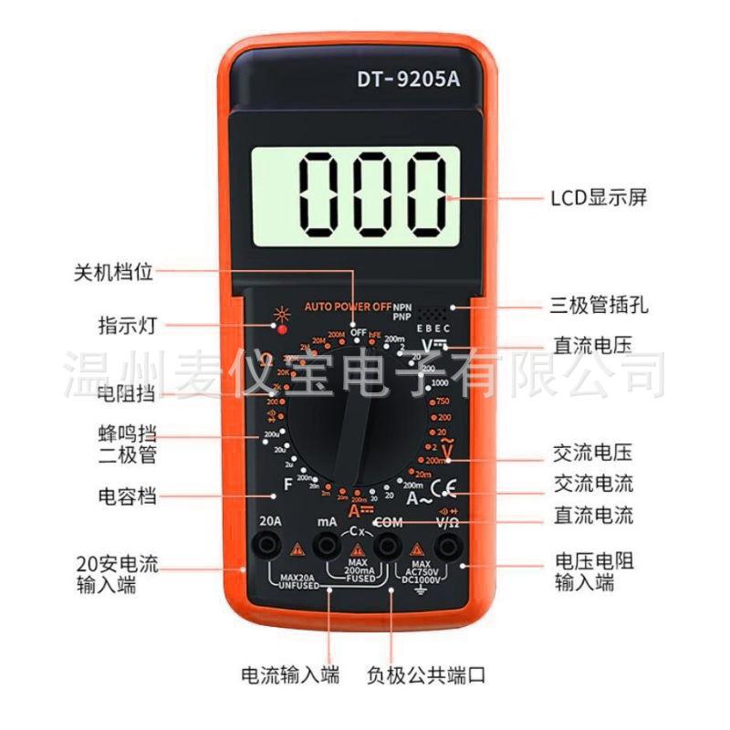 Multímetro digital DT9205A, anti-quemaduras, de alta precisión, universal, profesional, de corriente CA.