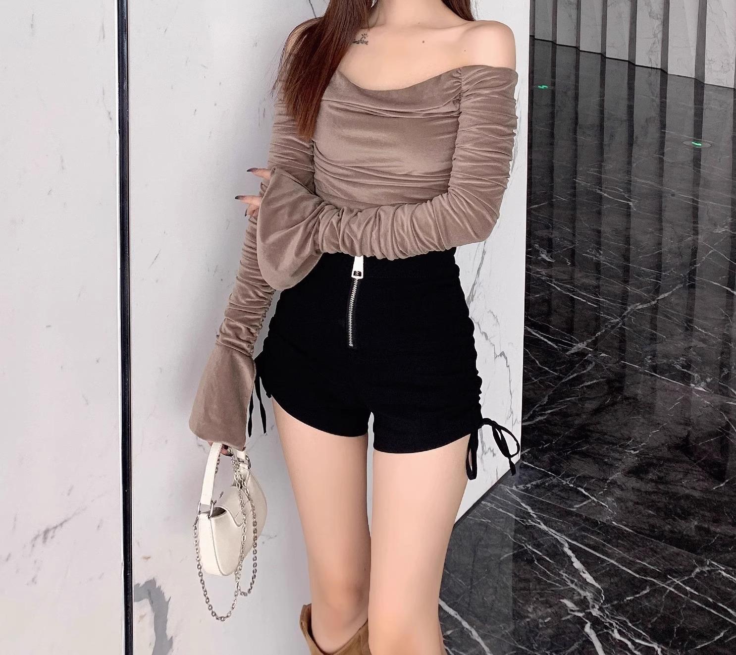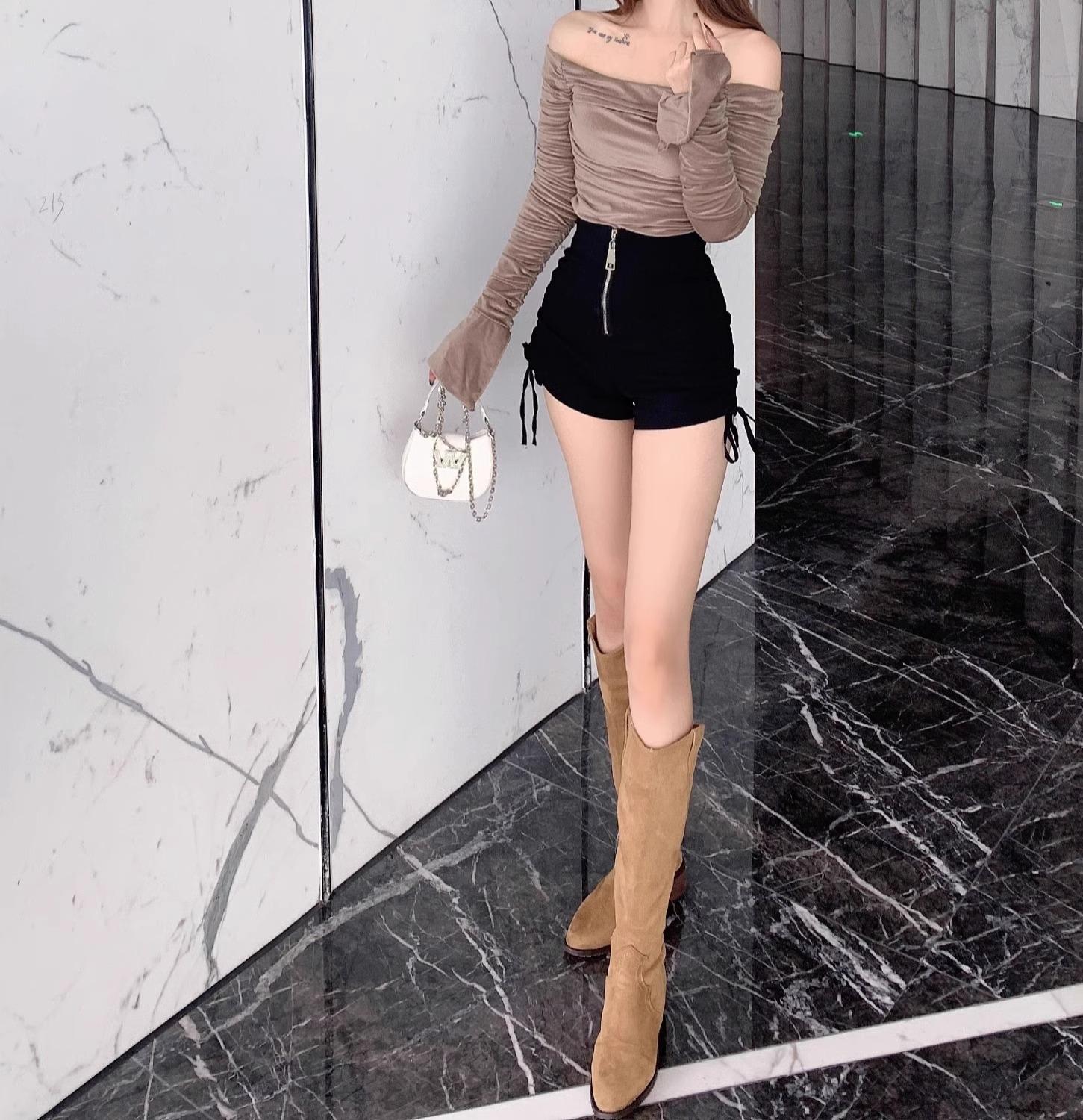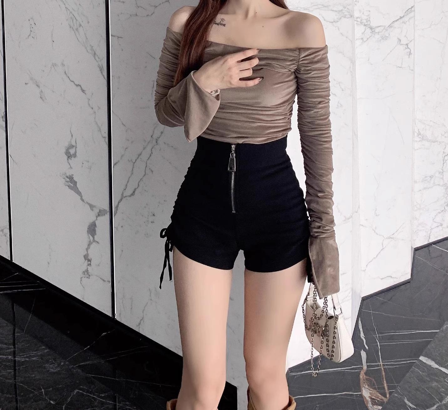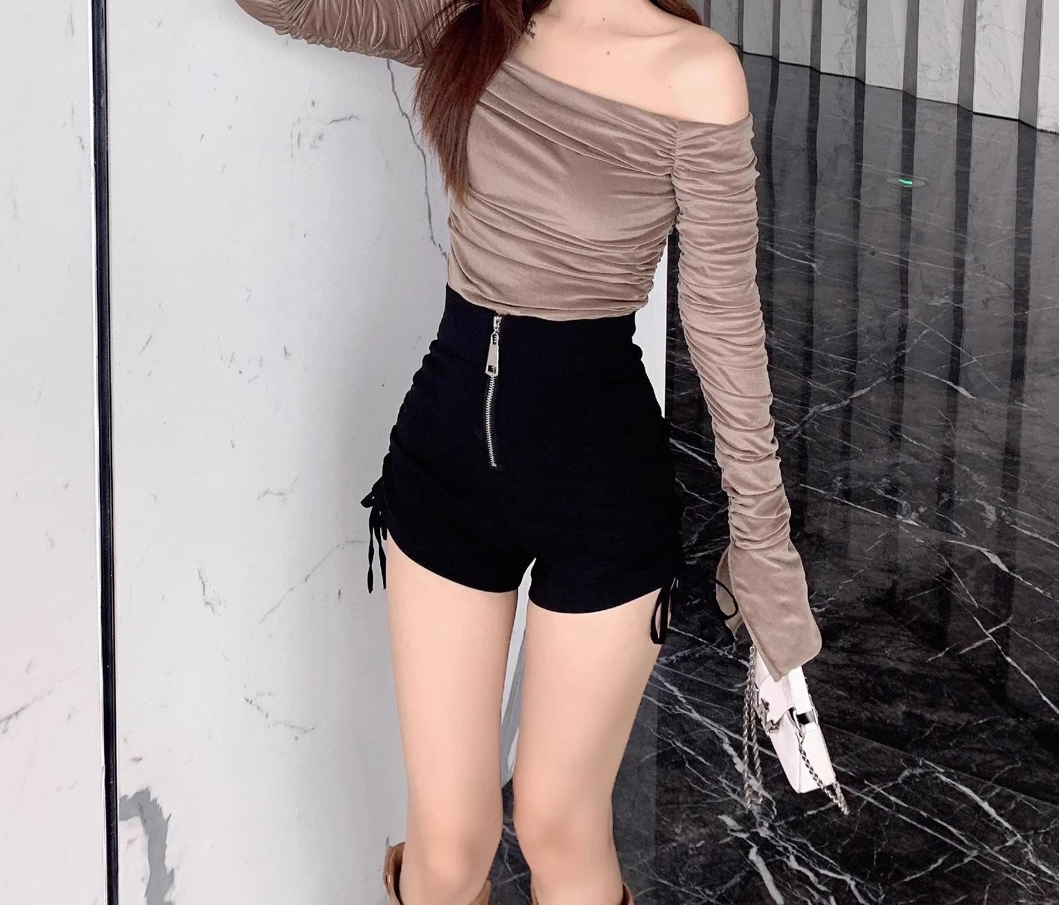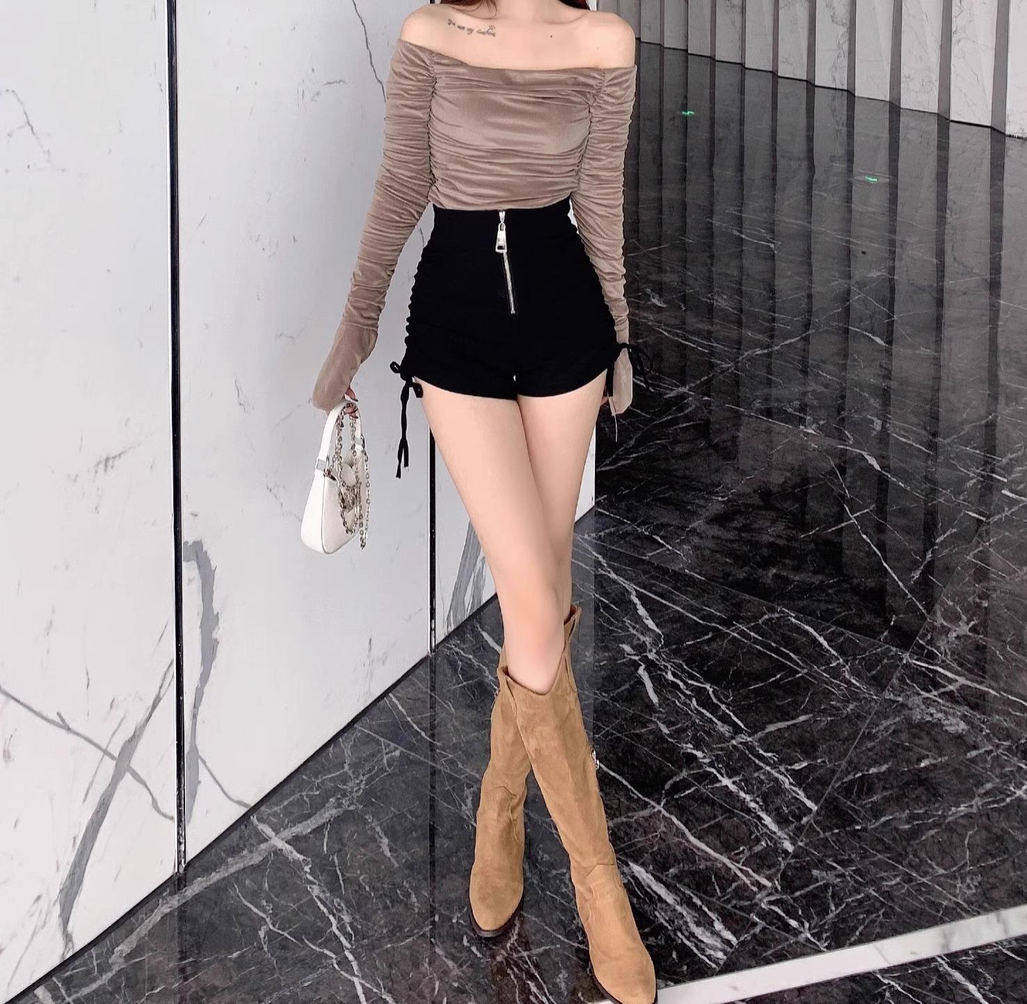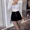 Shorts Negros Verano 2024 Nuevo Cintura Alta Exterior Cordón Ajustable Adelgazantes Moda Línea A Pantalones Cortos Cierre Tendencia