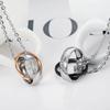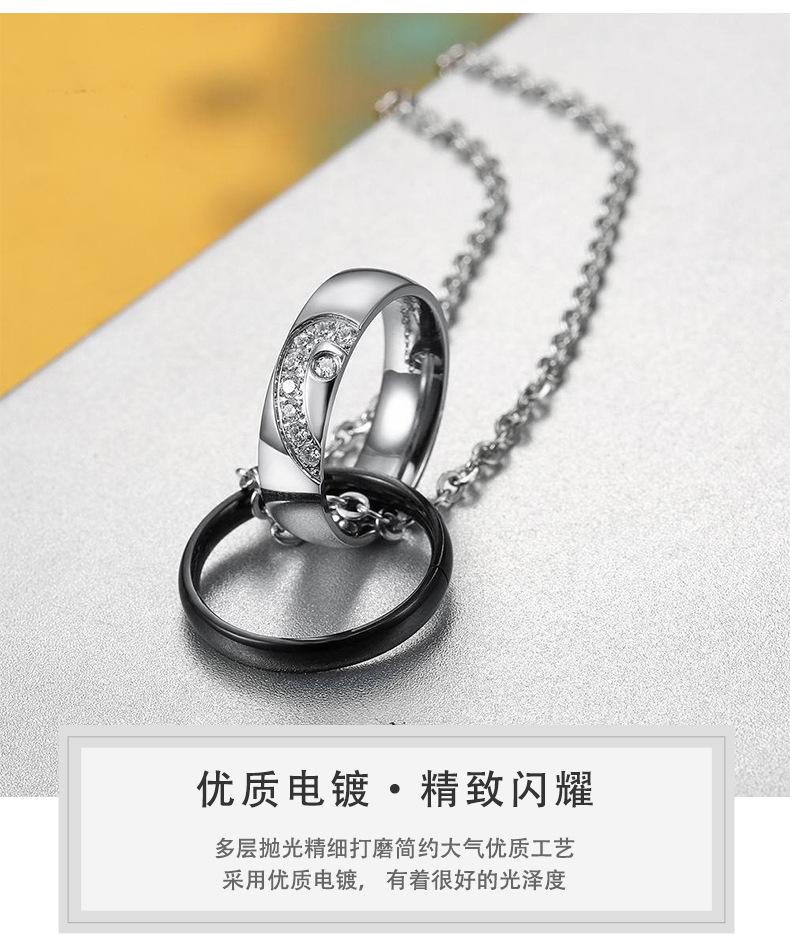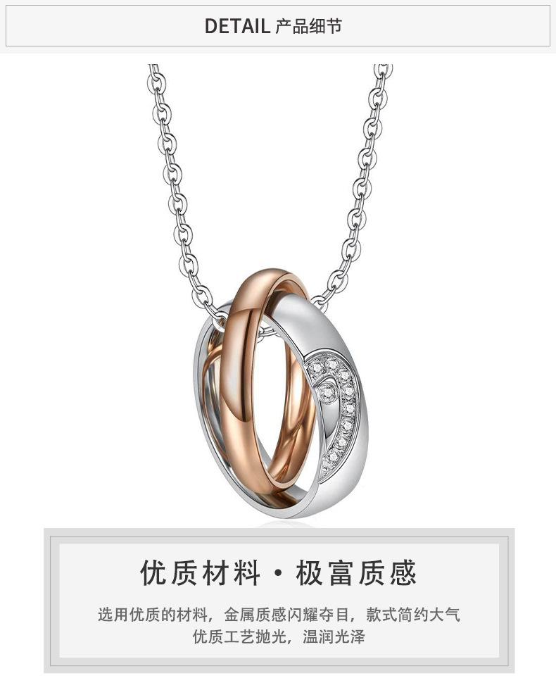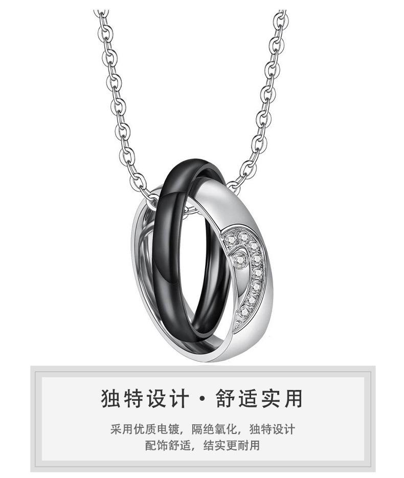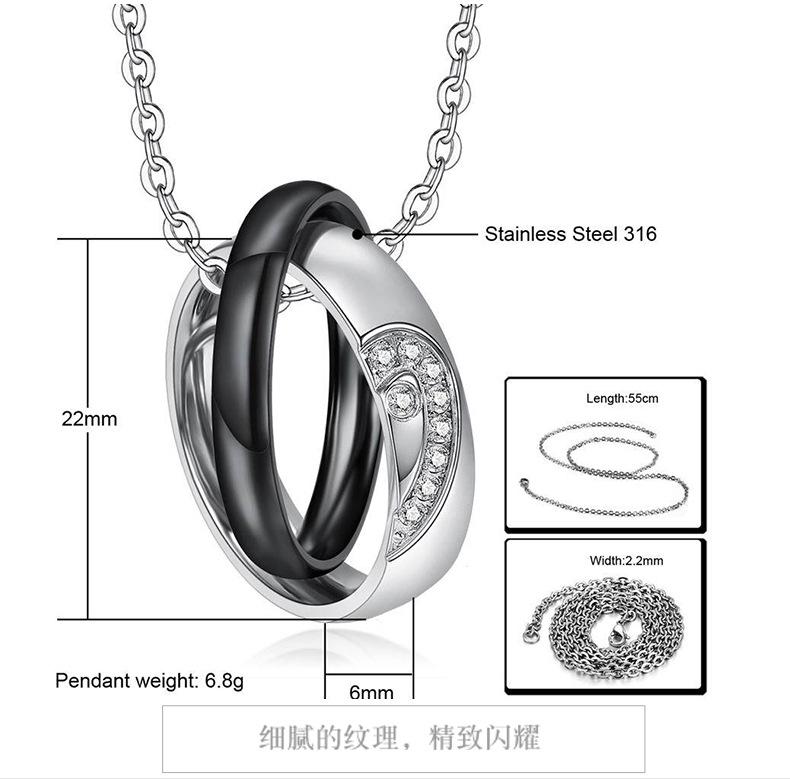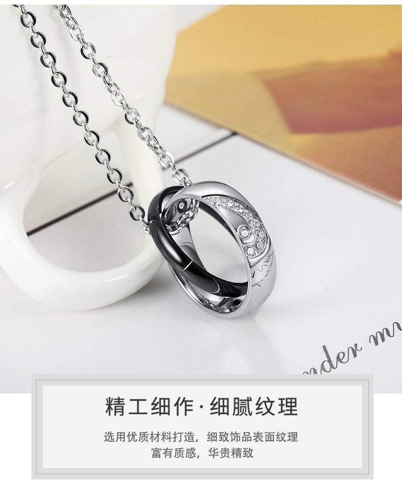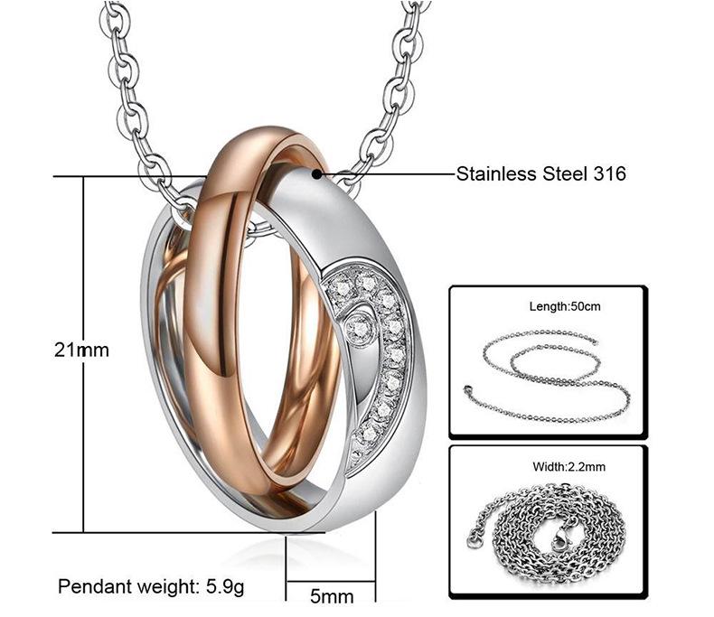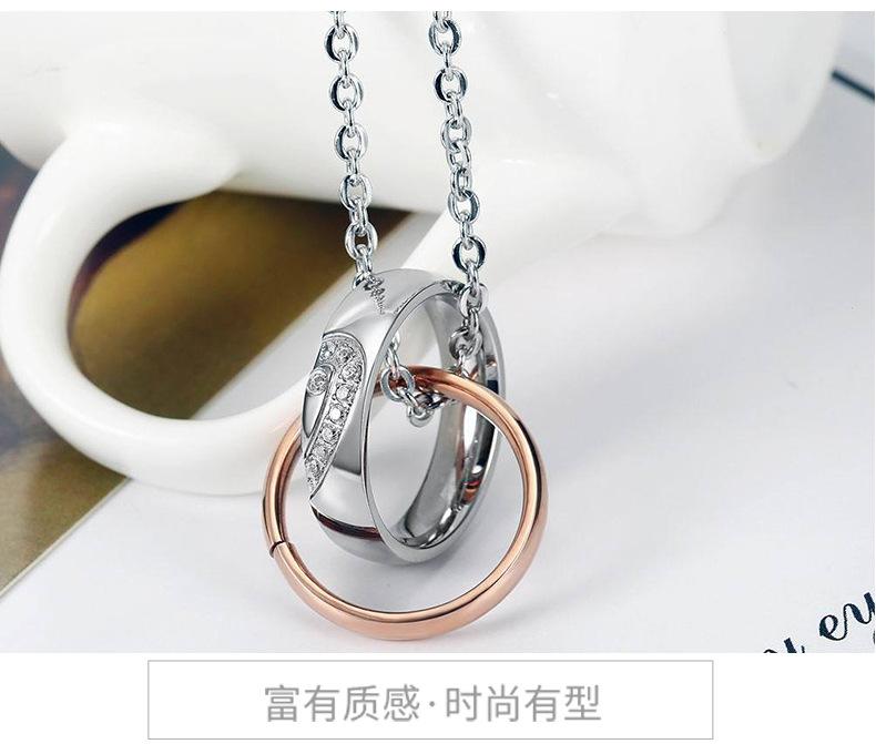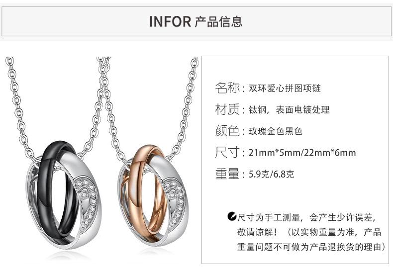 Collar de acero de titanio con colgante de rompecabezas de amor de doble anillo con circonita romántica coreana al por mayor de joyas para el cabello transfronterizas