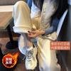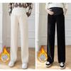 Pantalones de maternidad de nueva moda, holgados, de pierna ancha, con forro polar, para otoño e invierno, de talla grande, con soporte abdominal, pantalones gruesos y cálidos.