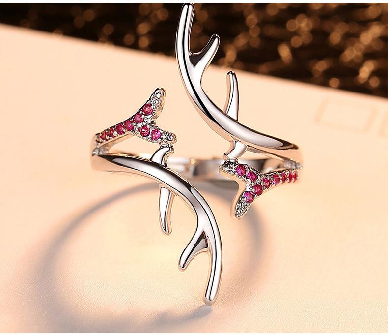 Nuevo Anillo de Astas Creativo Estilo Coreano para Mujer Anillo Abierto Mori de Alce Simple Estilo Coreano Articulación Dedo Índice