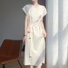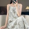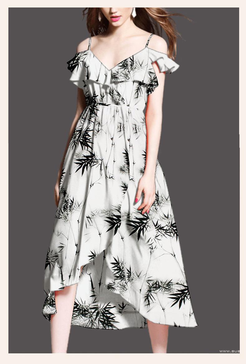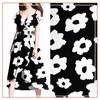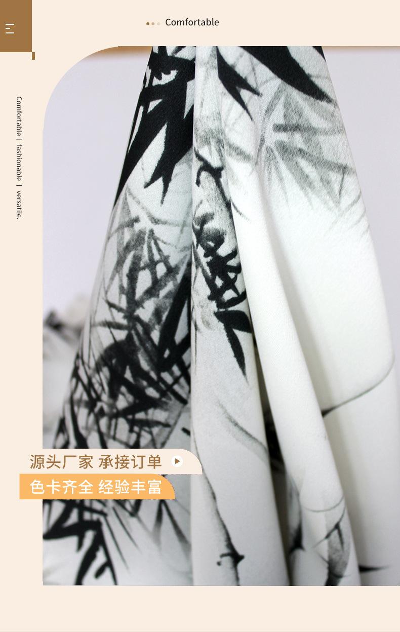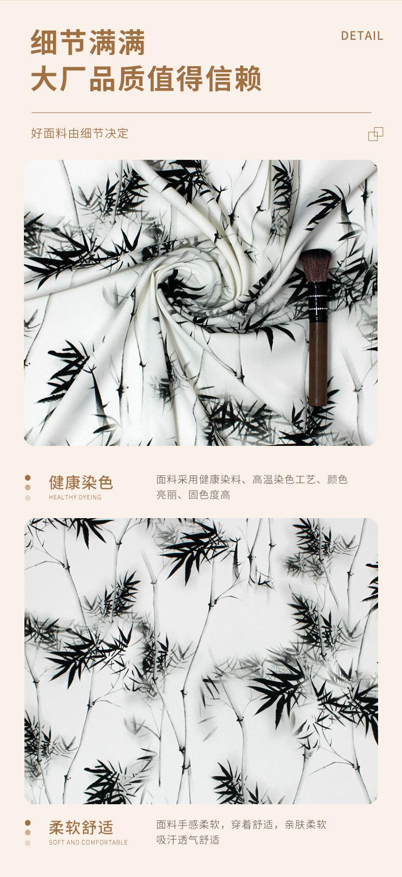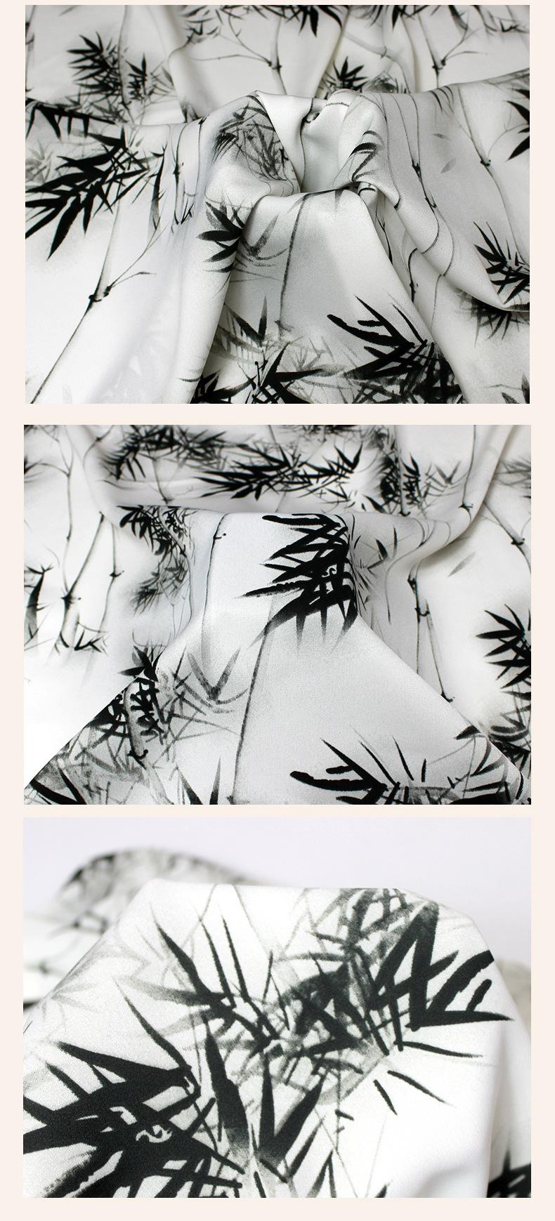 Vestido de Tirantes de Tela Lisa Satinada Negra y Blanca con Estampado de Hojas de Bambú Falda Pequeña Tela de Falda 2024 Patrón Popular en Internet