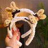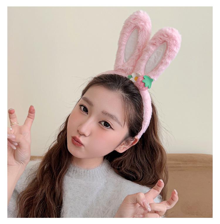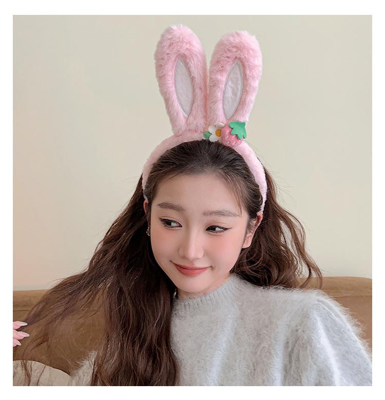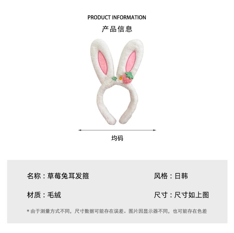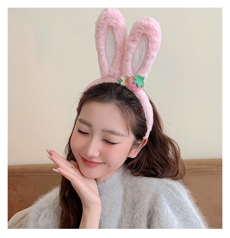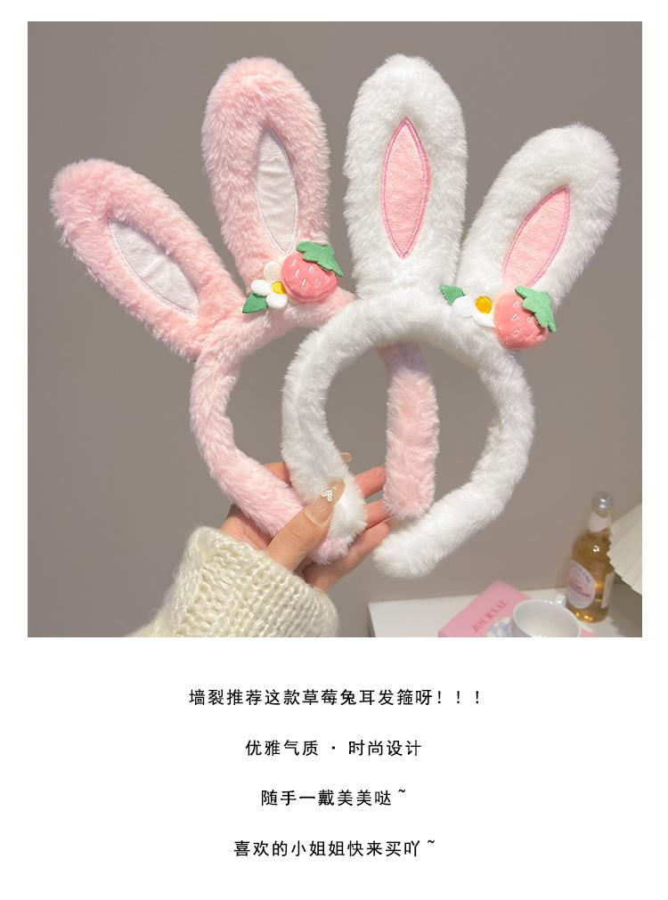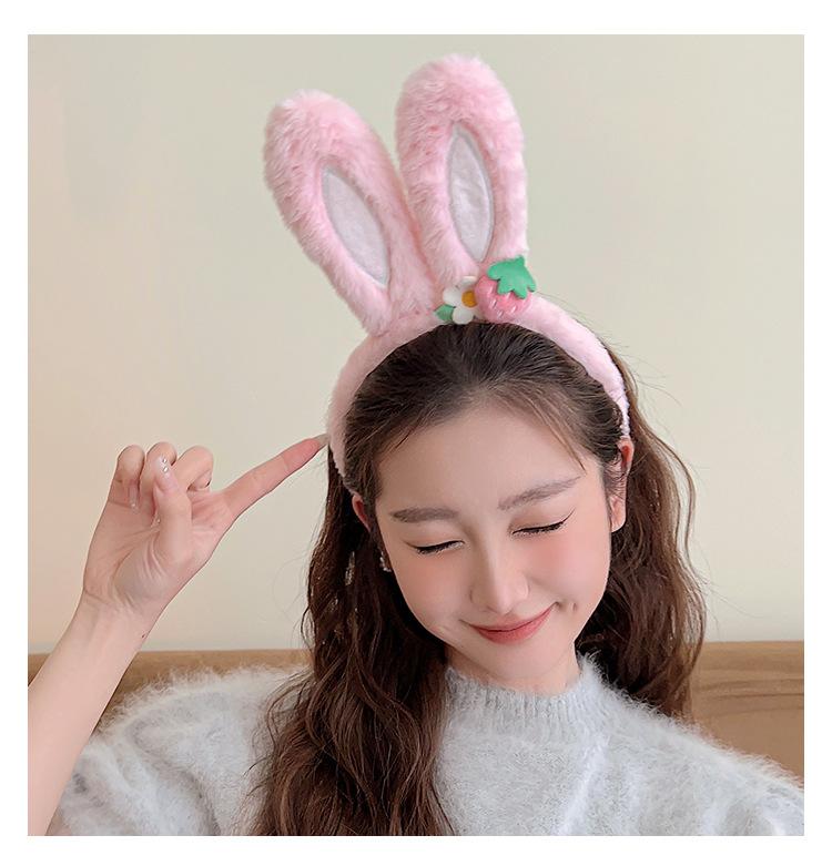Diadema de felpa con orejas de conejo para mujer, diadema con diseño de flor de fresa y dibujos animados, ideal para otoño e invierno