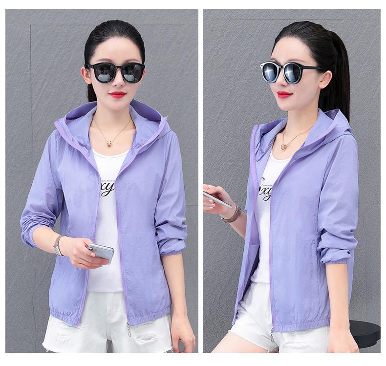 Nueva chaqueta de verano con protección solar para mujer, transpirable, antiultravioleta, holgada, con capucha y manga larga, de seda helada para exteriores.