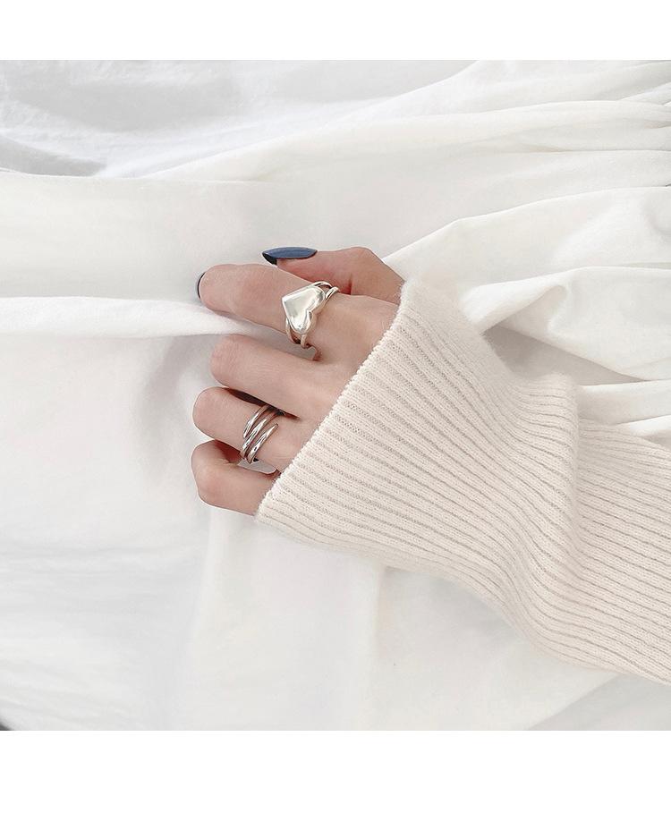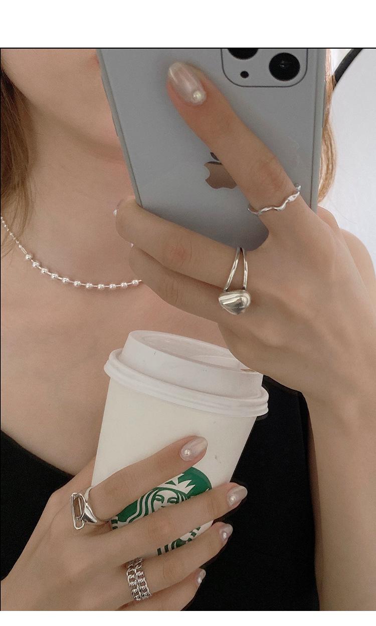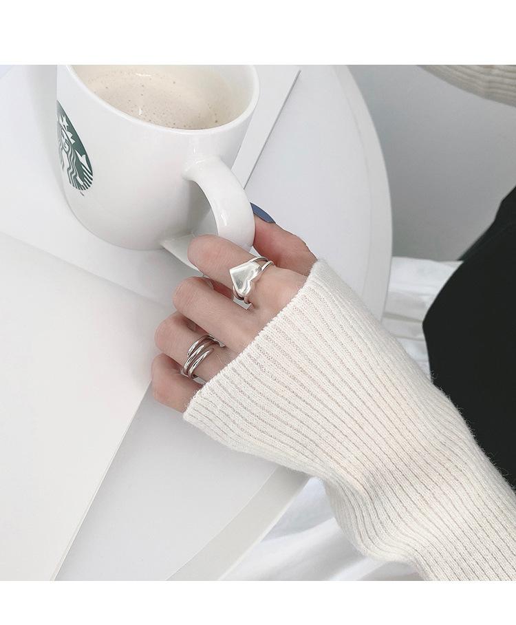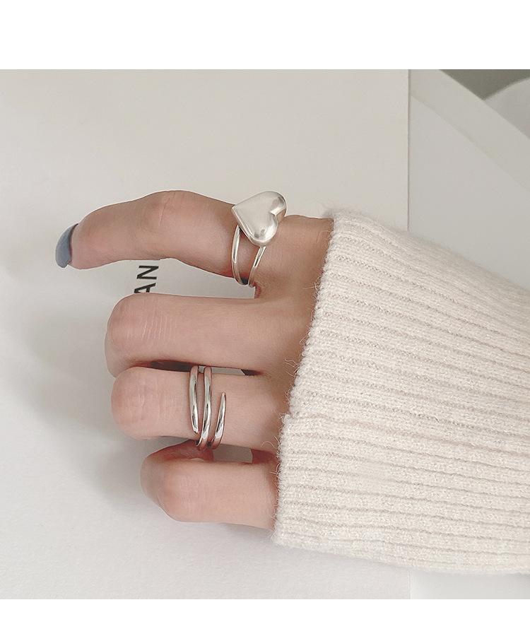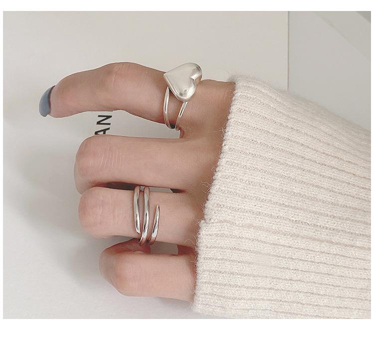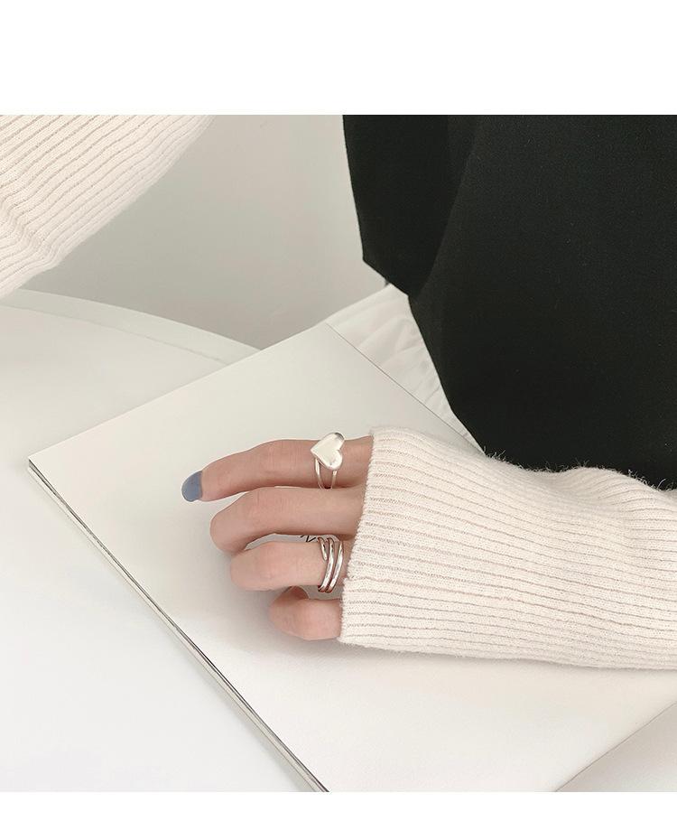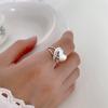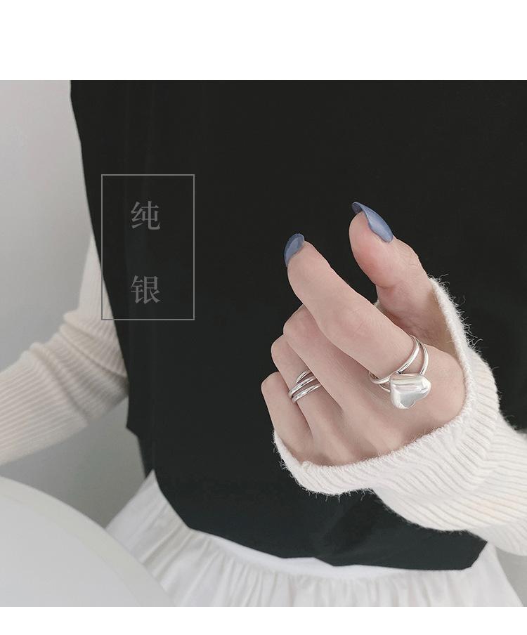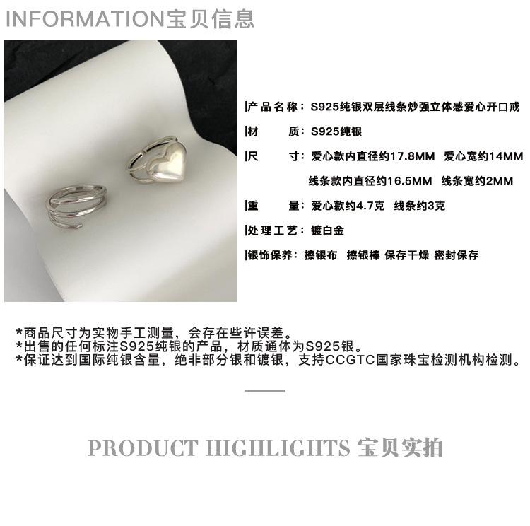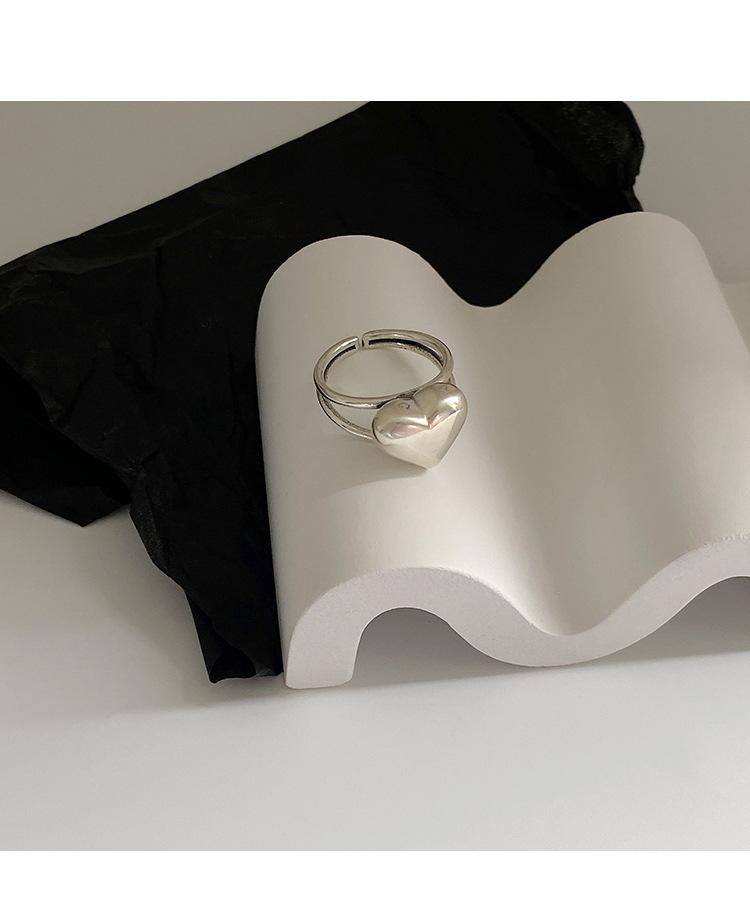 Anillo de Amor Tridimensional Distintivo de Plata S925 Coreana para Mujer Moda Retro Elegante Corazón de Durazno Anillo Abierto Anillo de Dedo de Comida Moderno