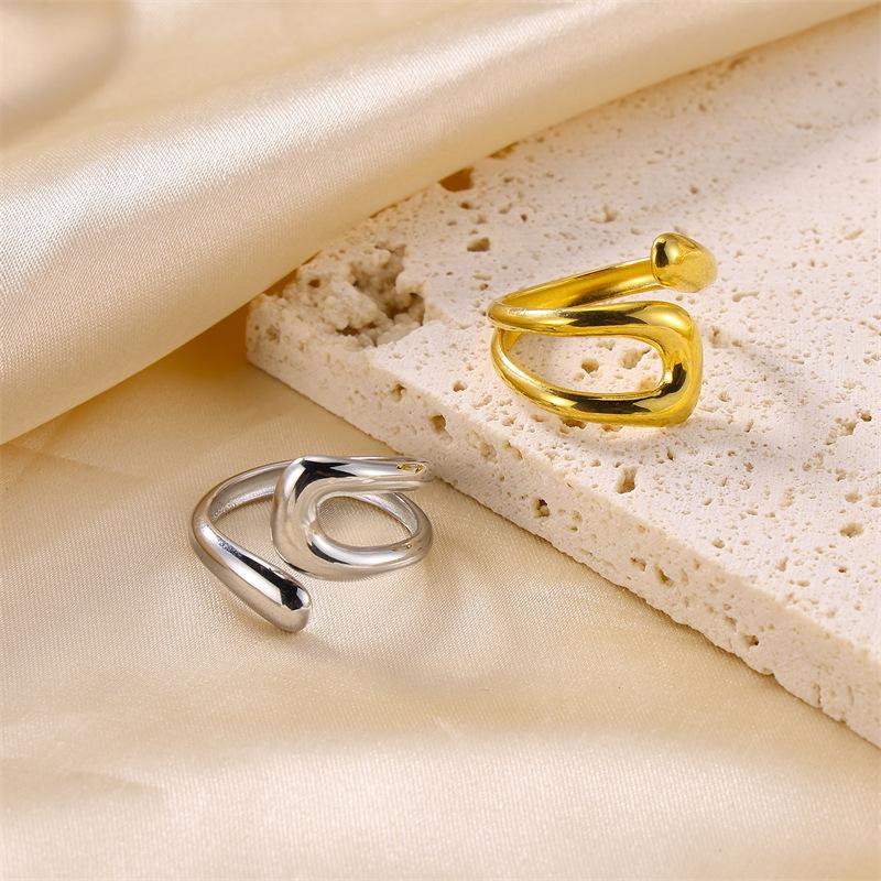 Anillo Abierto Geométrico Hueco Nuevo Europeo y Americano Anillo Ajustable Sencillo para Mujer que Combina con Todo Anillo para Dedo con Textura Creativa