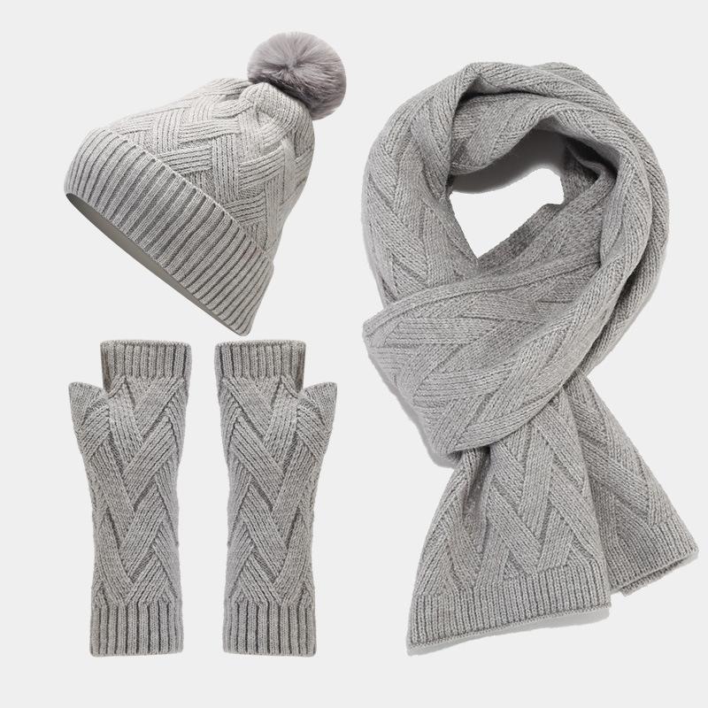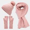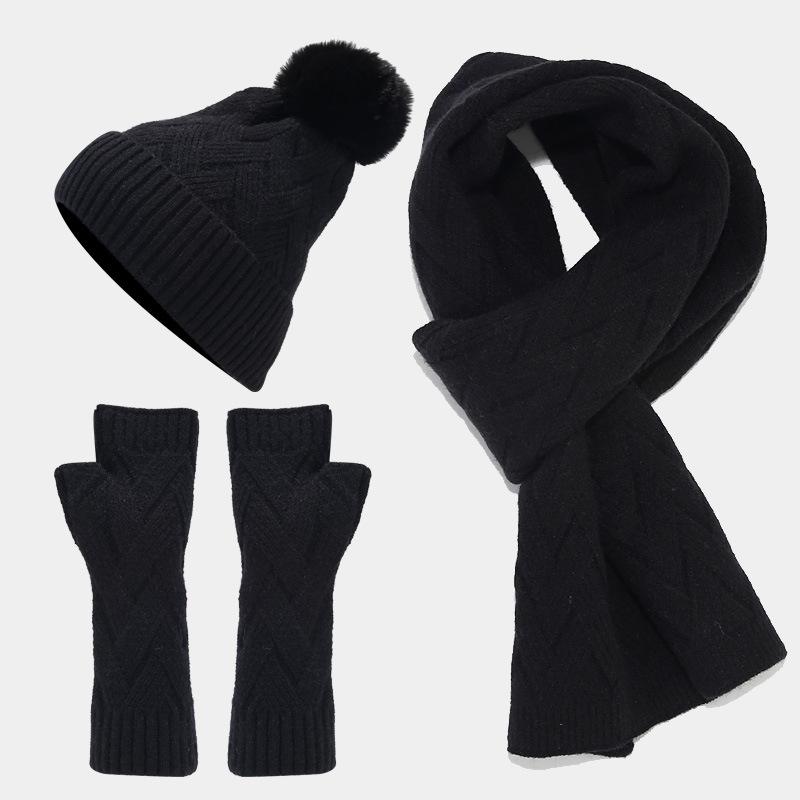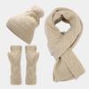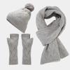 Conjunto de tres piezas de gorro de punto de color sólido, resistente al frío, cálido, con guantes y bufanda, para otoño e invierno, de Amazon.