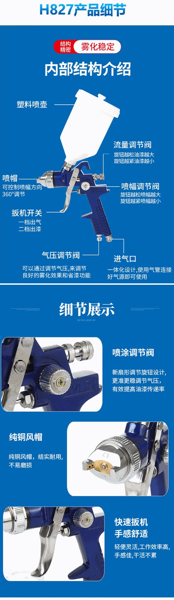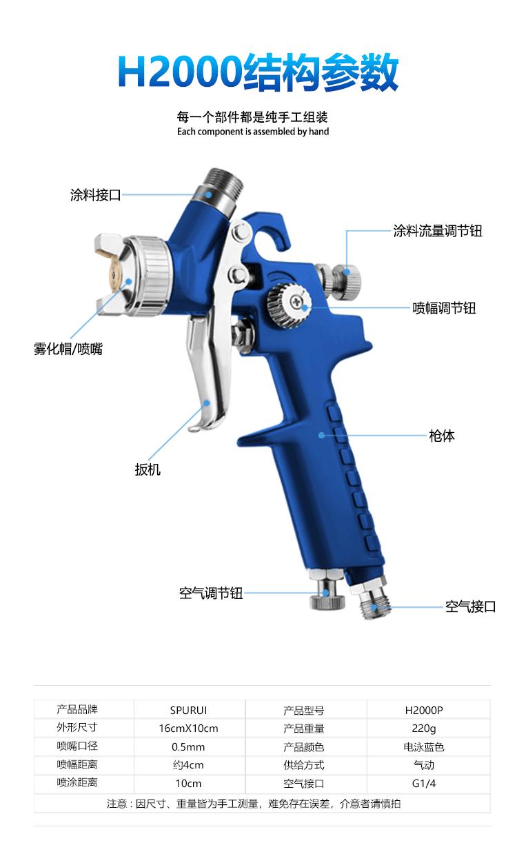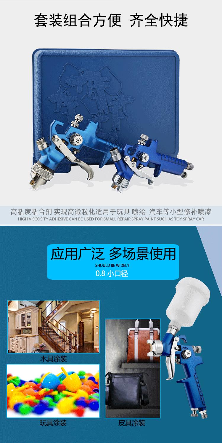 Pistola pulverizadora neumática de alta presión transfronteriza, color azul, multifunción, para reparación, H827 + H2000