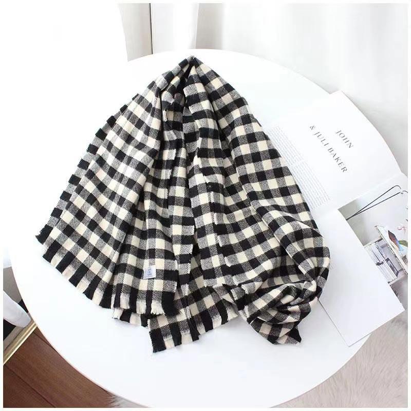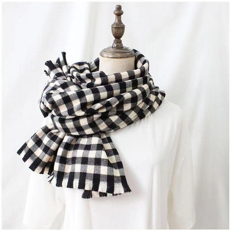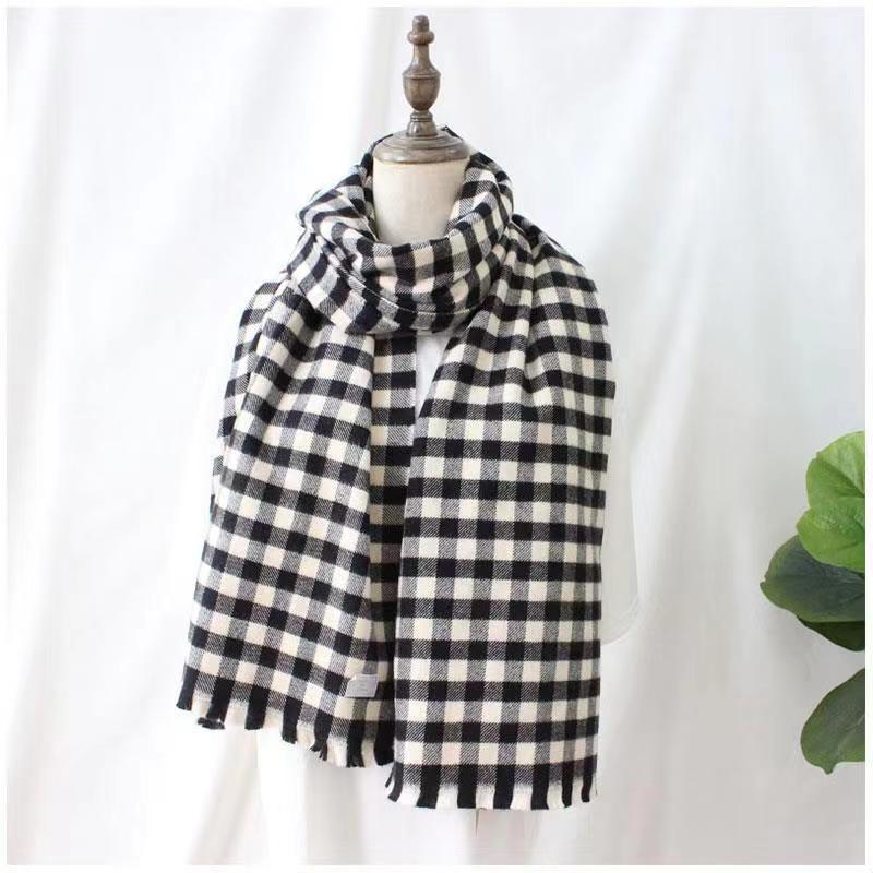 Bufanda a cuadros para mujer Invierno Otoño e Invierno Nuevo Chal de punto de cachemira Versátil Grueso Cálido para el cuello para hombre