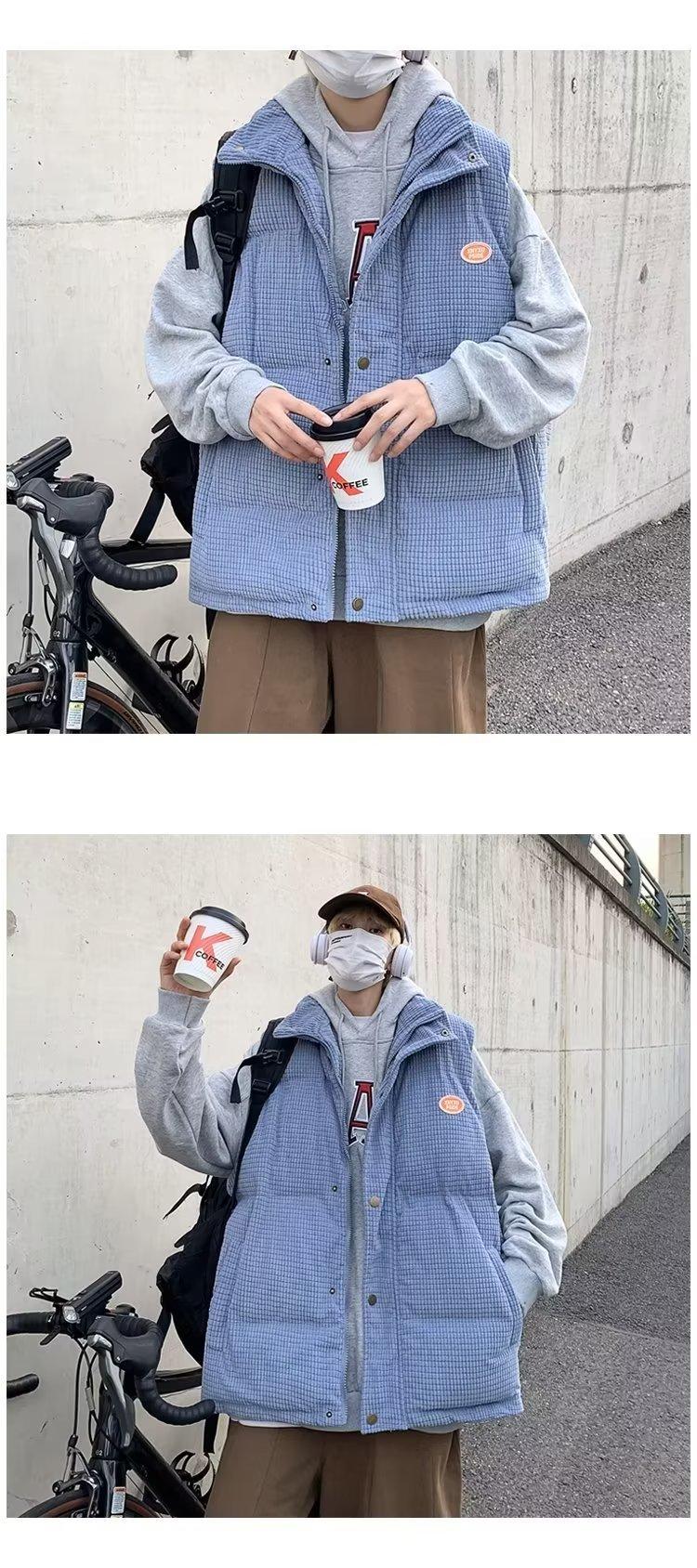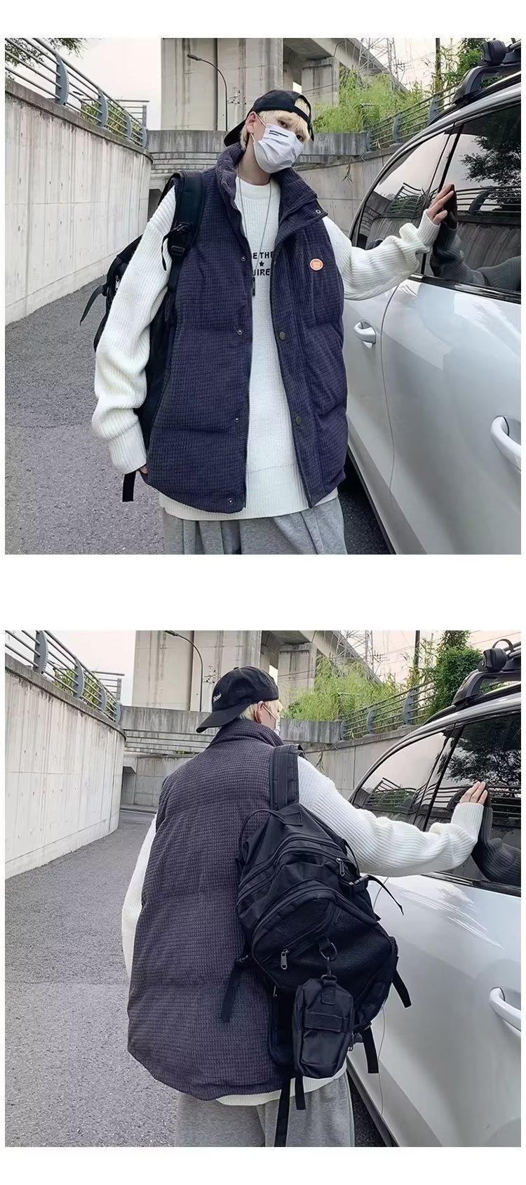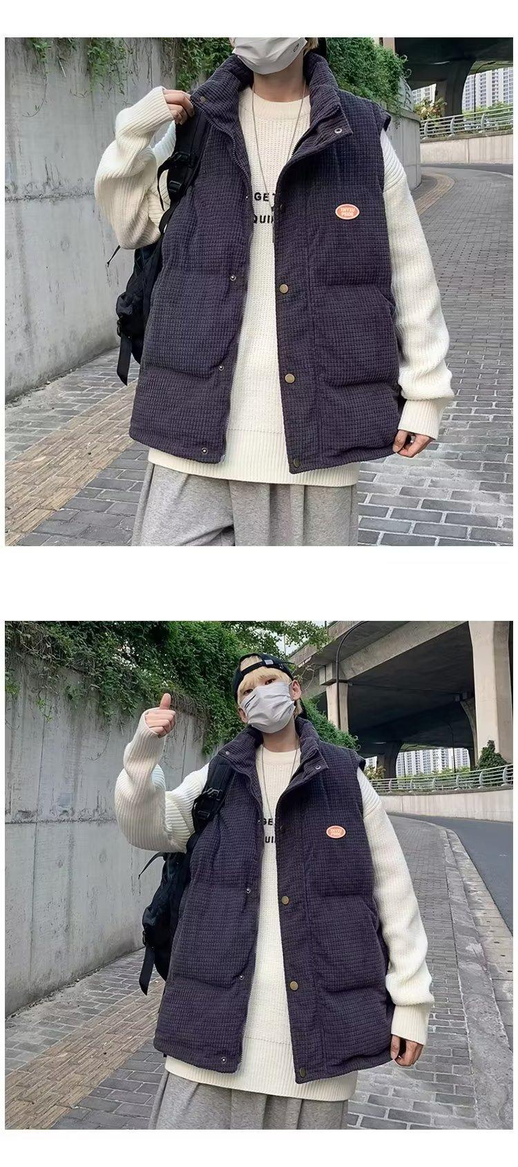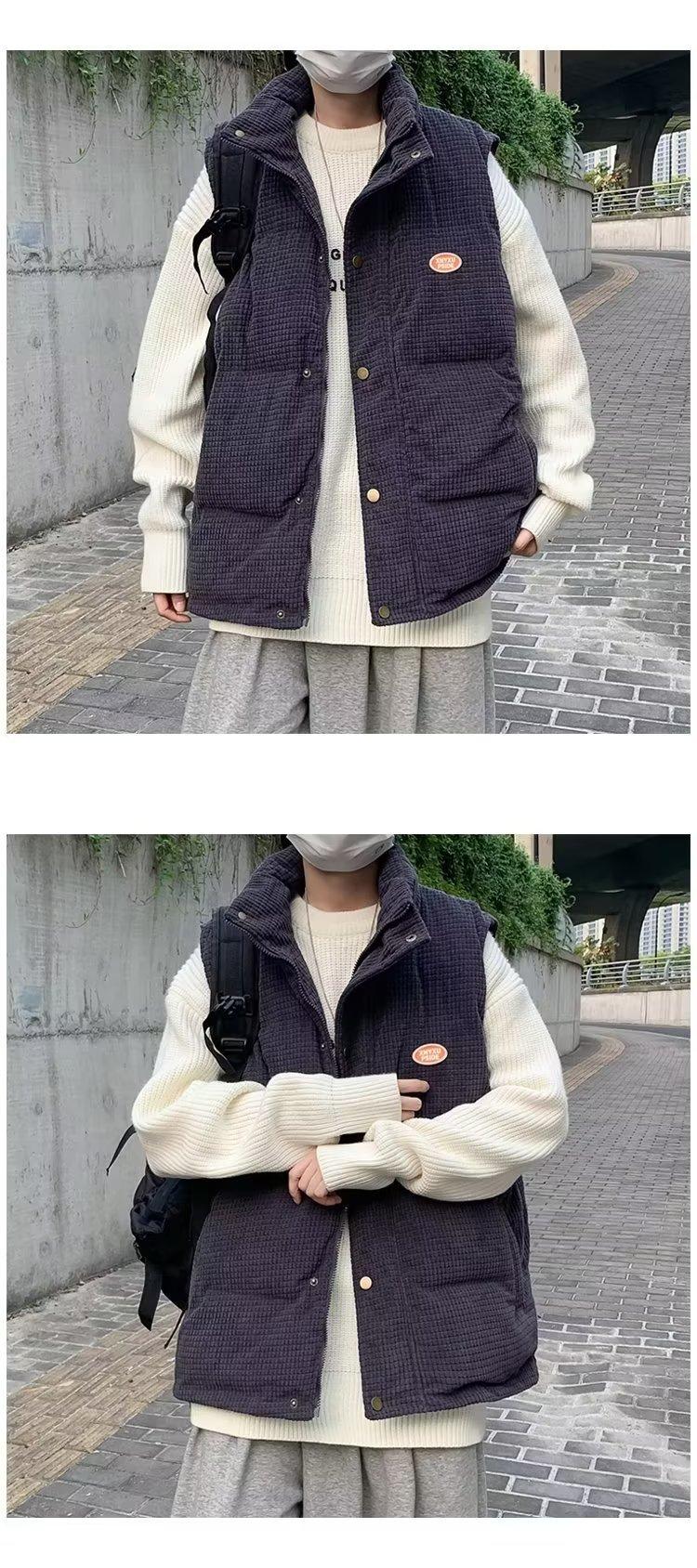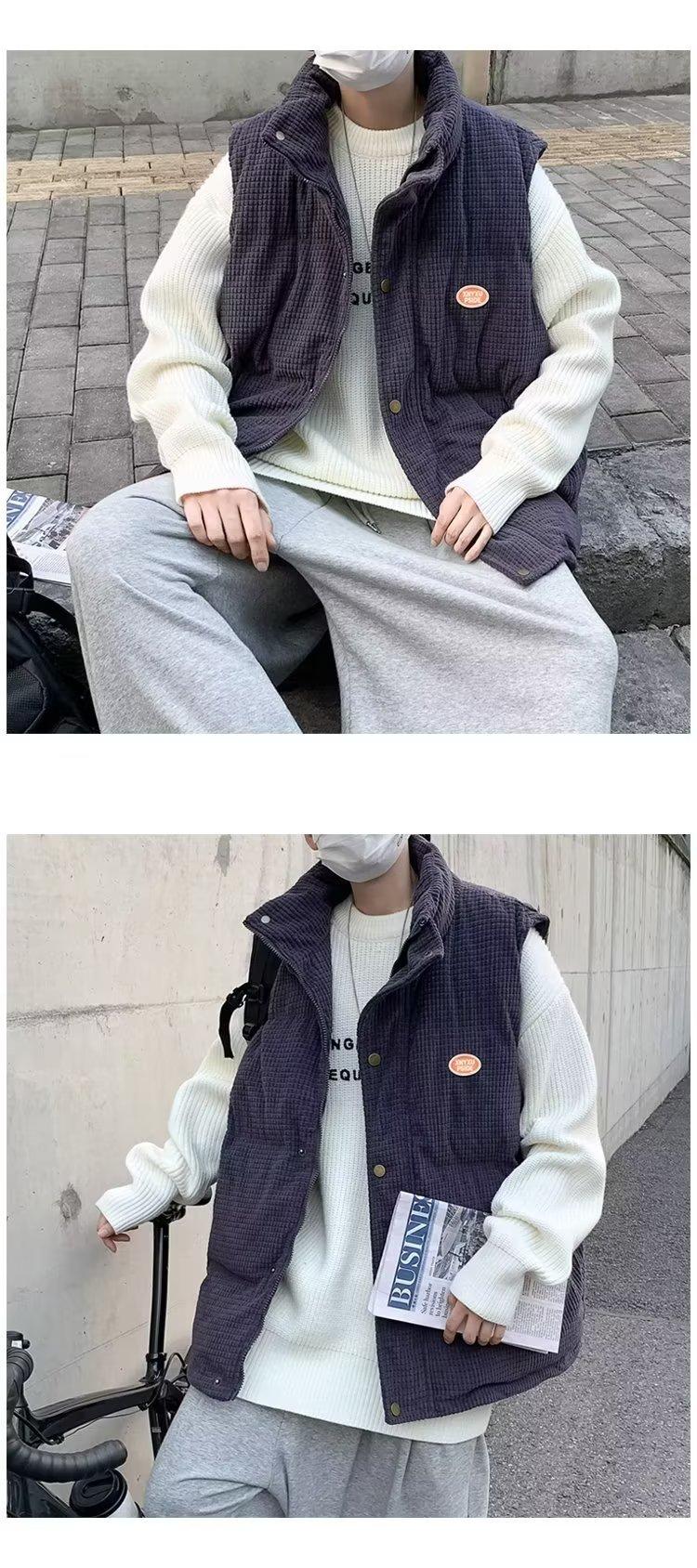 Chaleco de pana de algodón para hombre, otoño e invierno, moda de marca, holgado, ins Ruan Shuai, ropa de algodón engrosada, chaleco con cuello alto, abrigo tipo pan