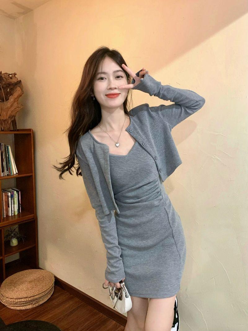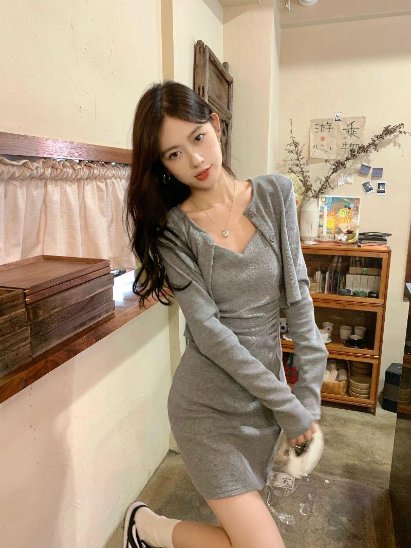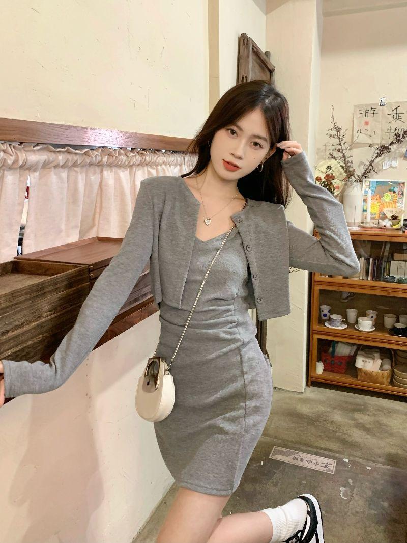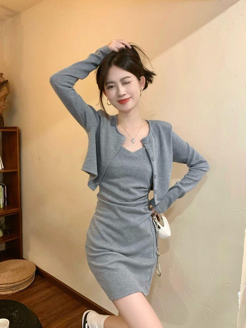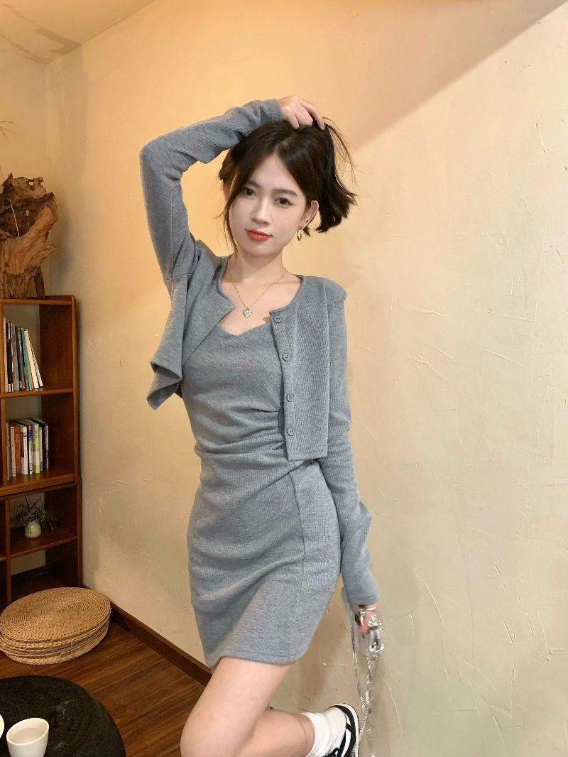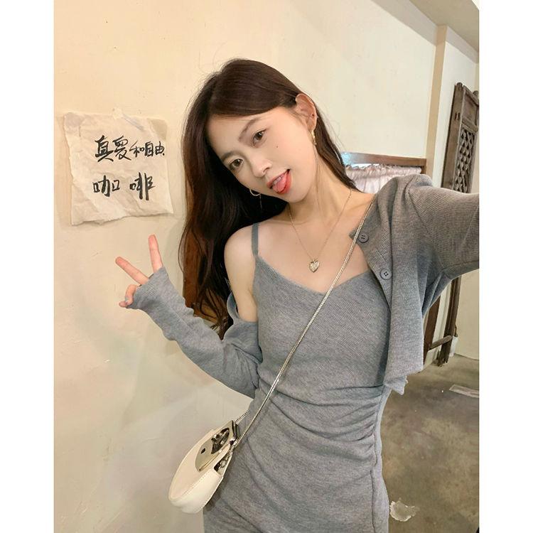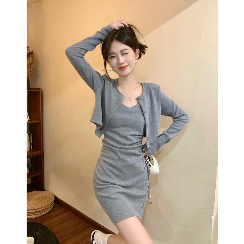Traje de dos piezas con diseño de chica sexy, otoño 2023, nueva moda, falda ajustada a la cadera, para mujer