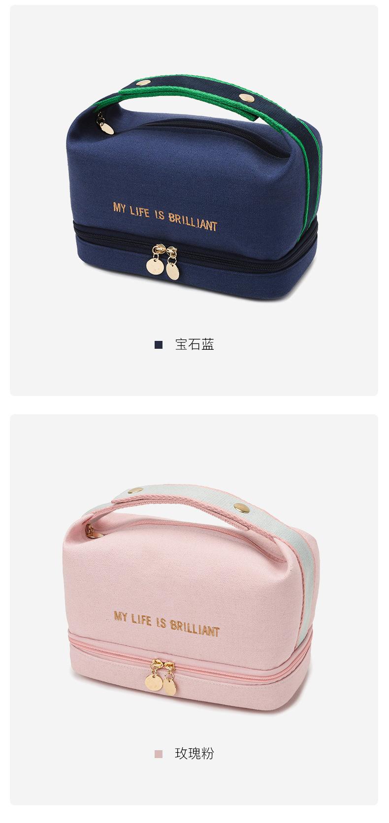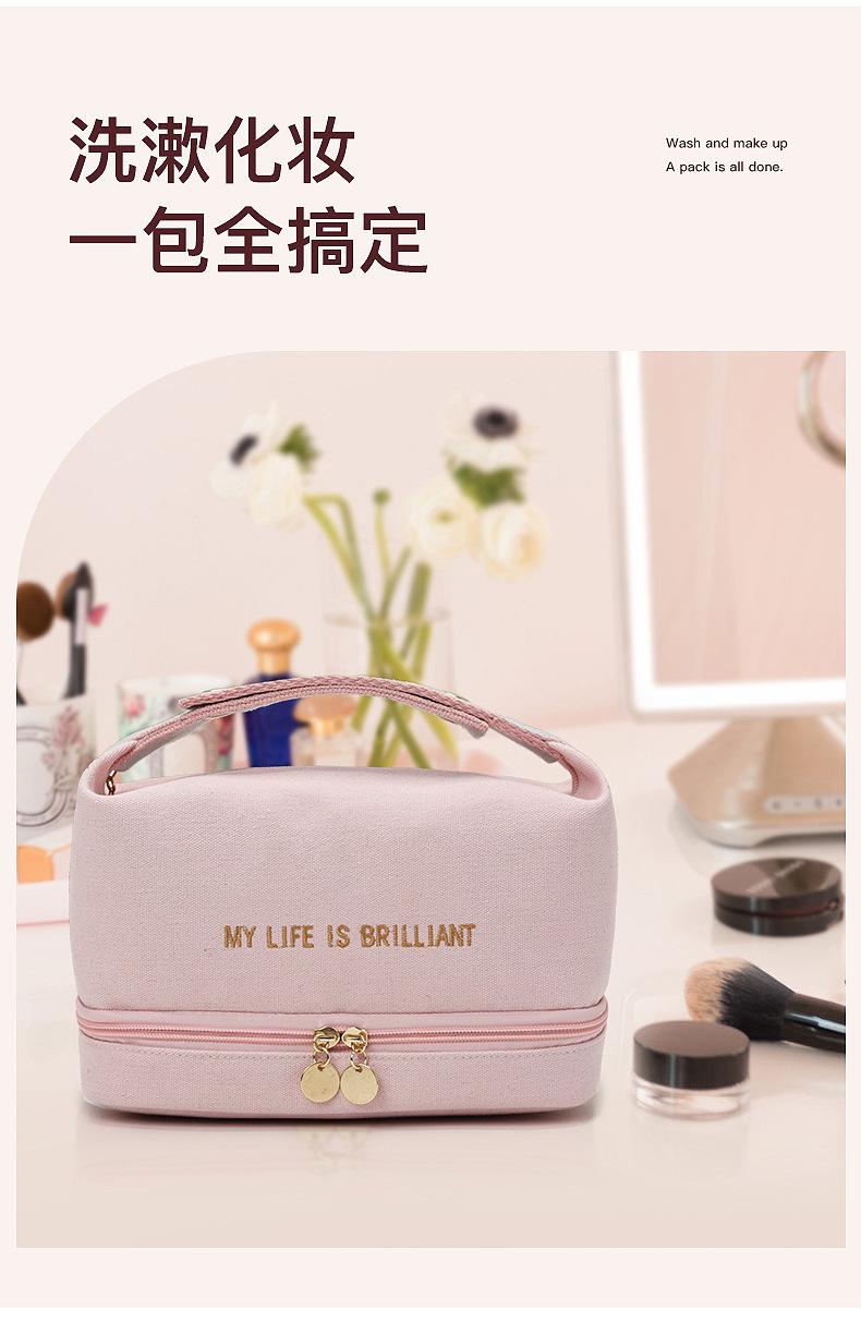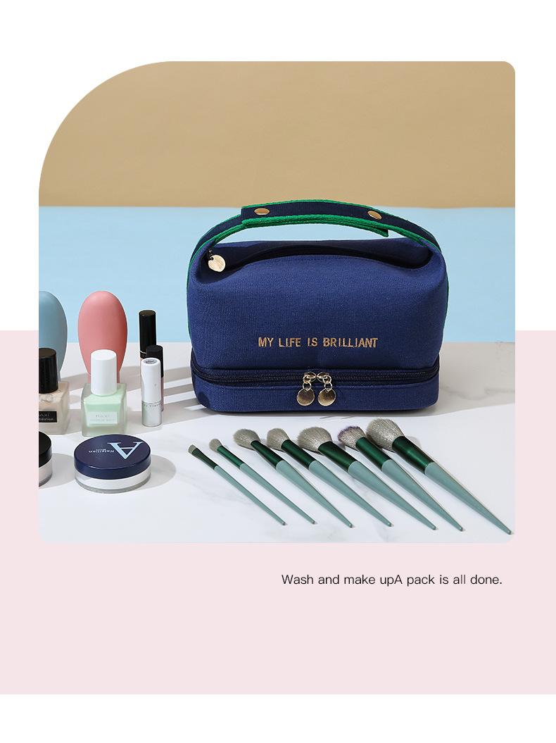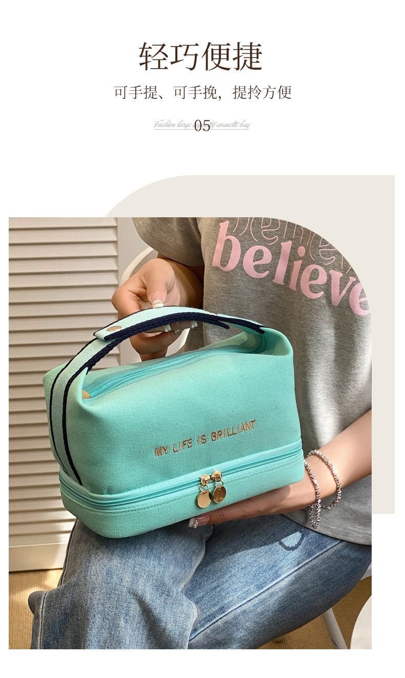 Bolso Satchel de Gran Capacidad Ins Bolsa de Aseo Grande de Doble Capa Impermeable de Lona Bolsa de Cosméticos de Viaje Simple y a la Moda