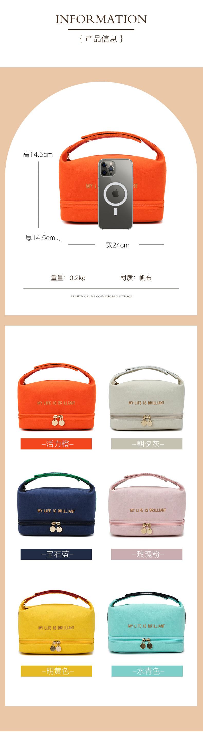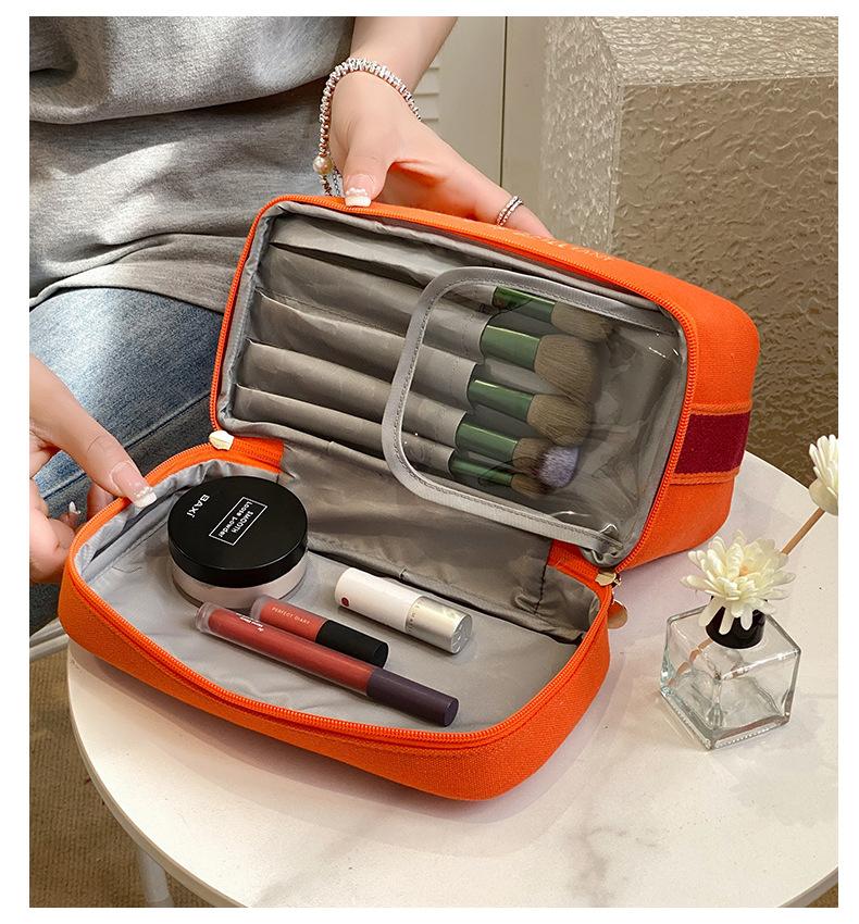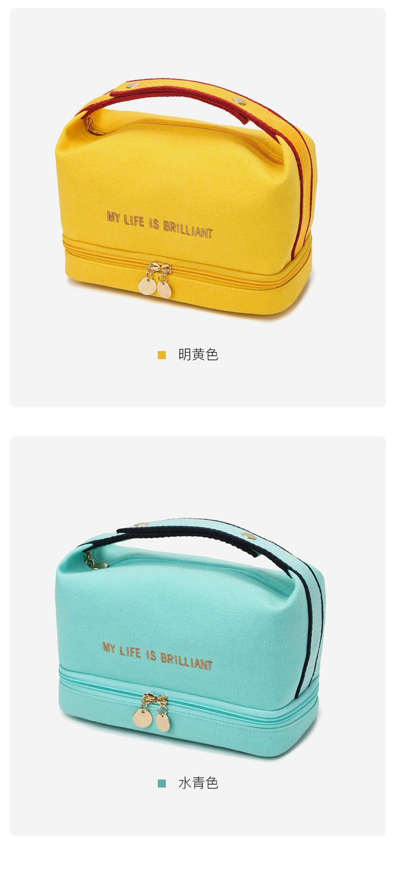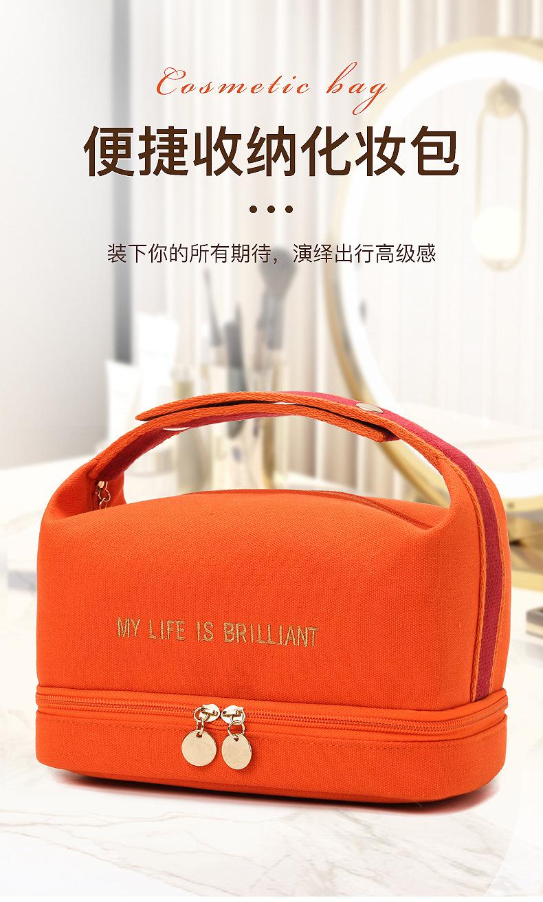 Bolso Satchel de Gran Capacidad Ins Bolsa de Aseo Grande de Doble Capa Impermeable de Lona Bolsa de Cosméticos de Viaje Simple y a la Moda