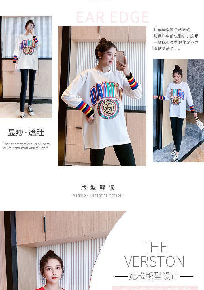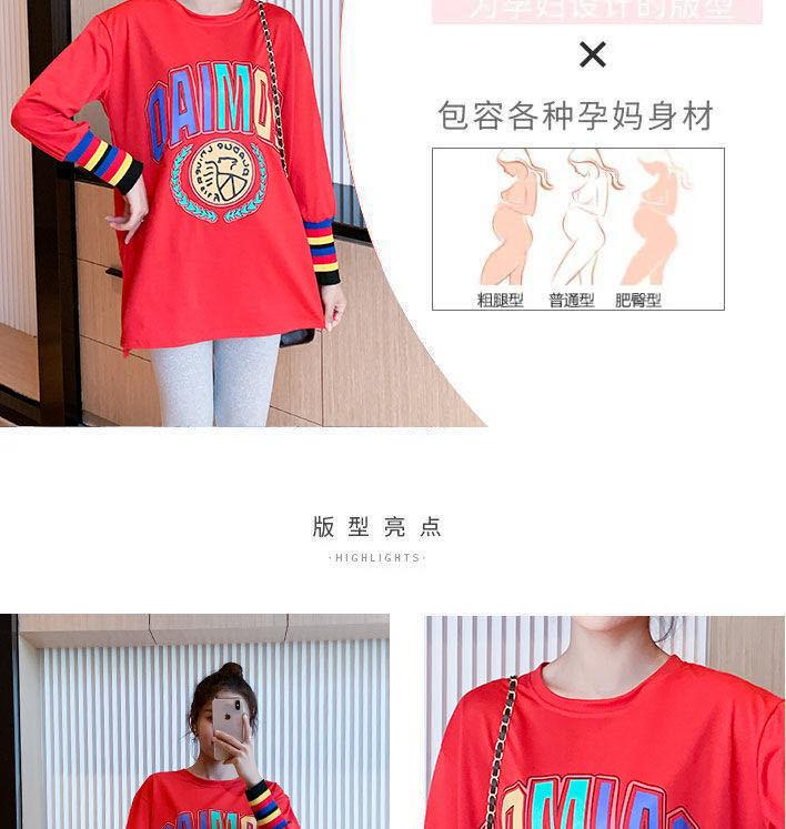 Ropa de Maternidad para Principio de Primavera y Otoño, Estilo Popular de Moda para Mamás a la Moda, Tops Delgados de Media Longitud que Cubren la Barriga, Tops Modernos y Versátiles para Salir