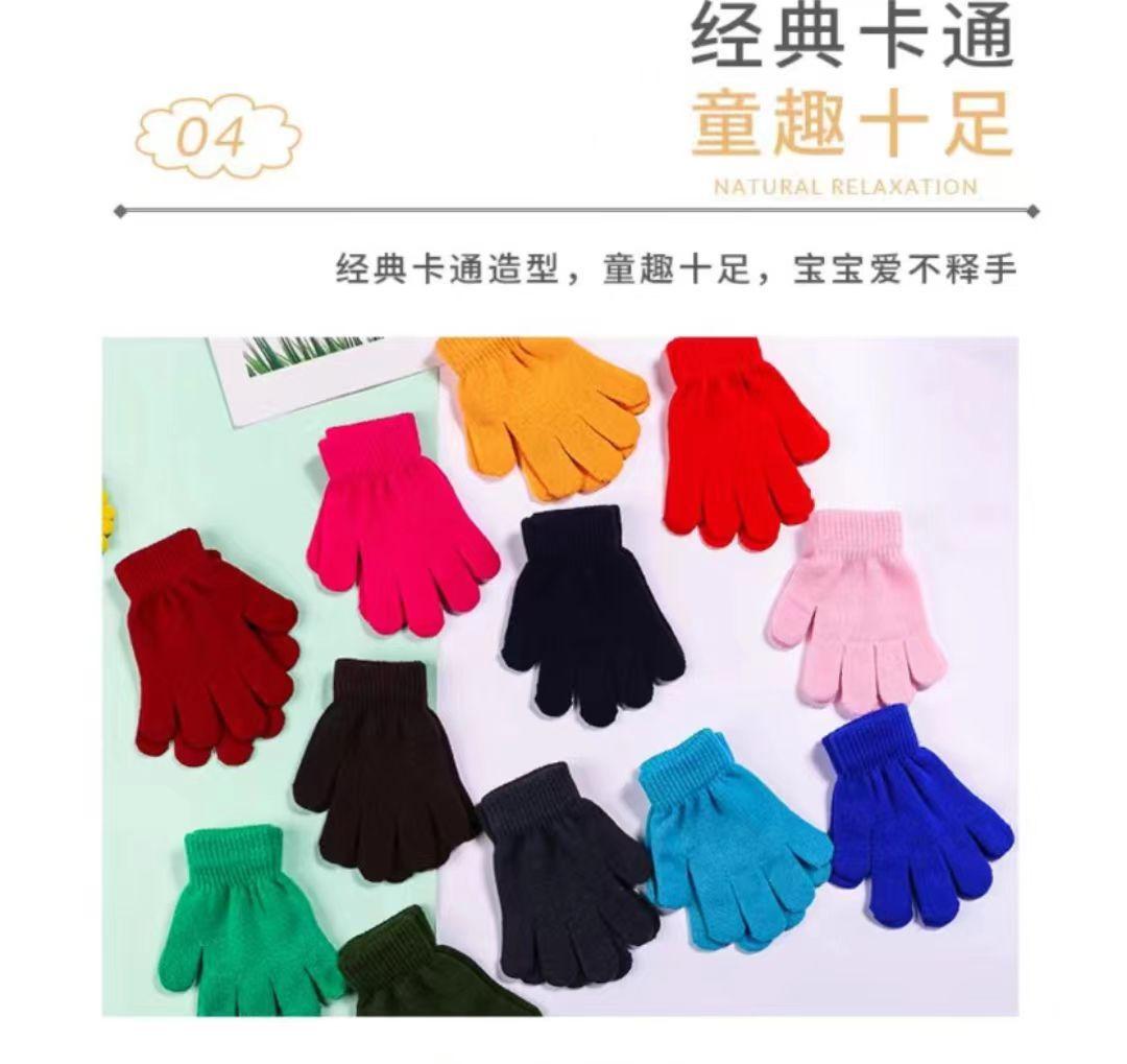 Guantes acrílicos sencillos cálidos de punto para niños de otoño e invierno, guantes mágicos de dedo completo, venta al por mayor de fábrica